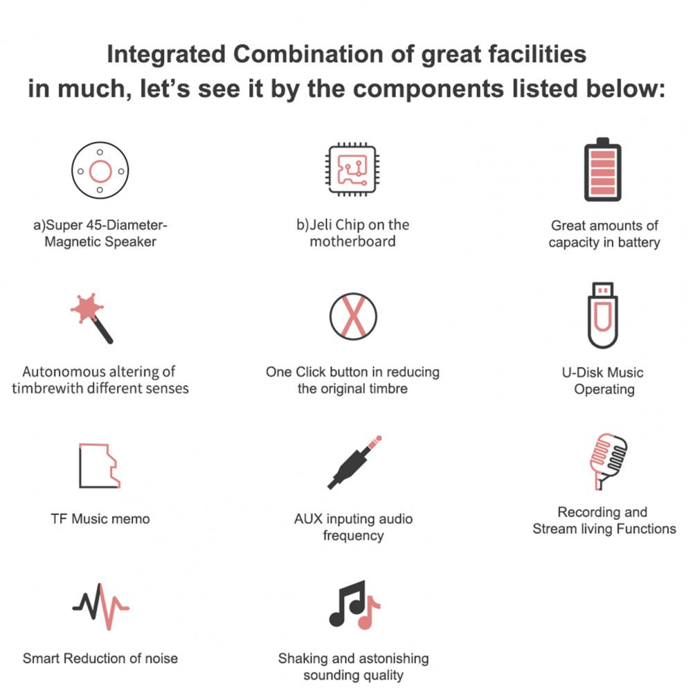 Характеристики: Пять звуковых режимов, поддержка u-диска/tf-карты, долговечность