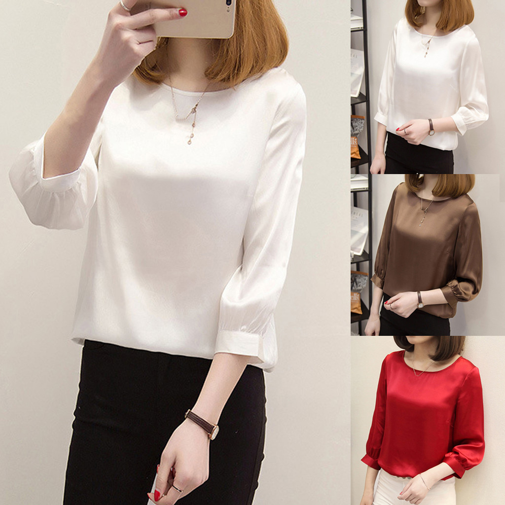 Женская короткая Офисная Рабочая одежда, рубашки с круглым вырезом и рукавом три четверти, повседневные топы