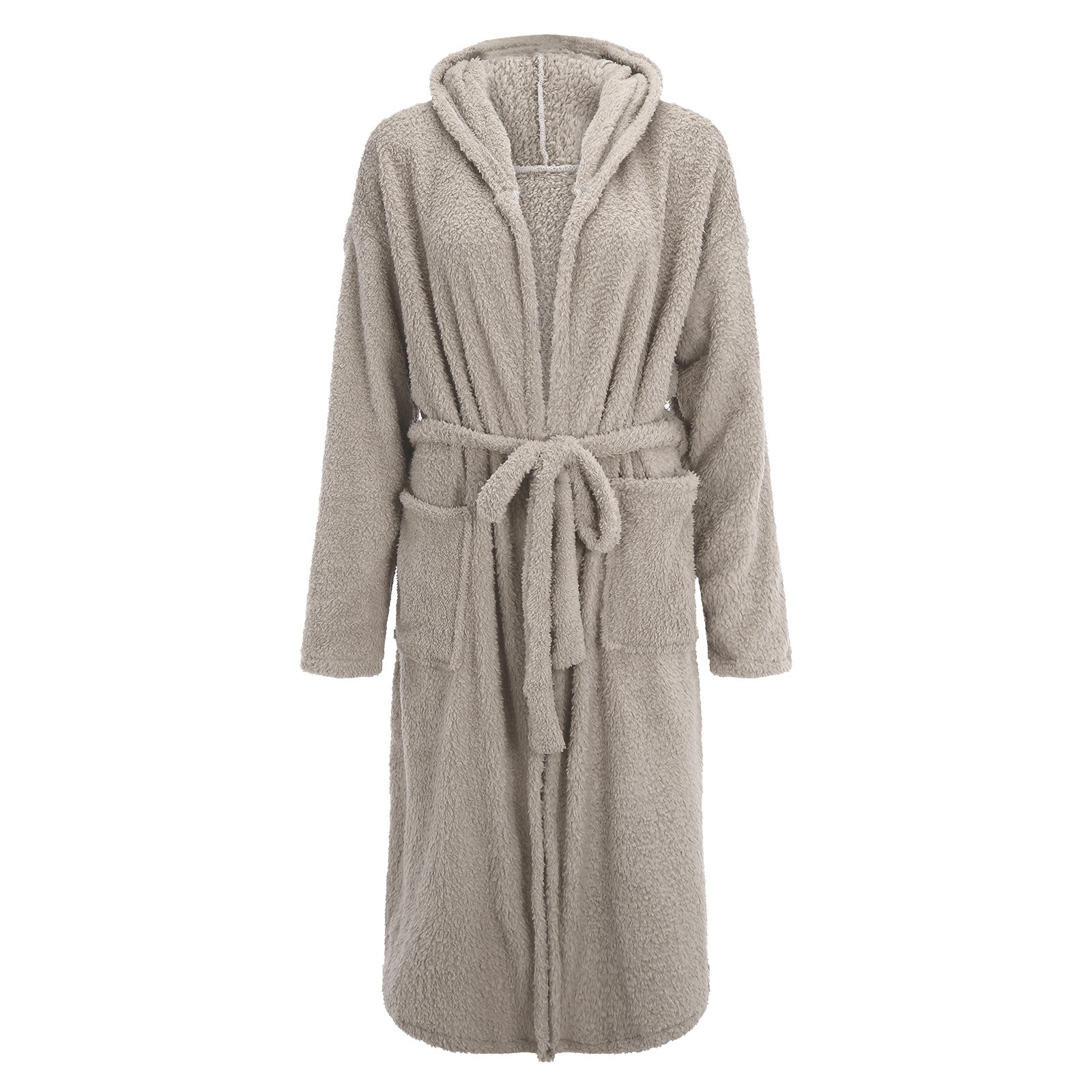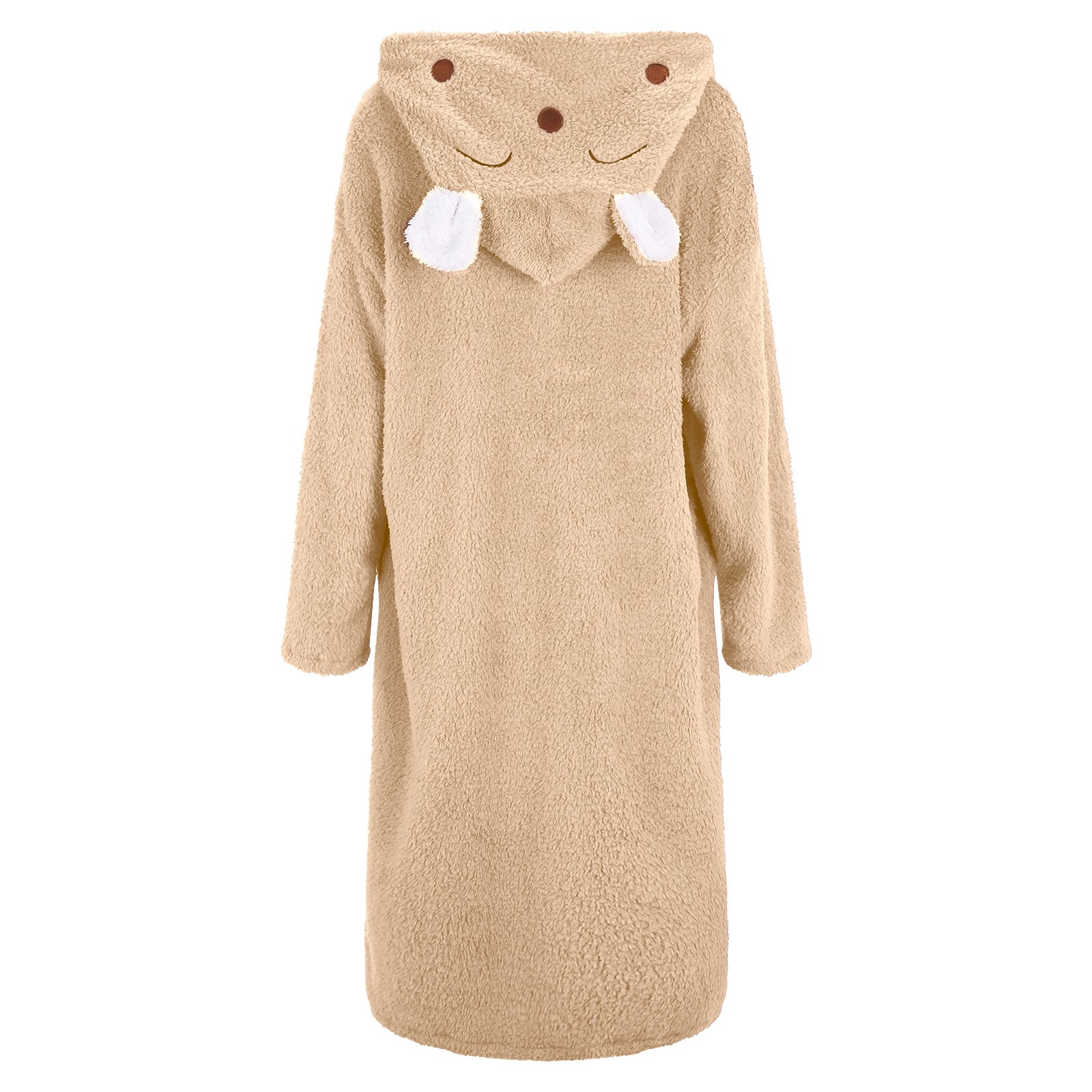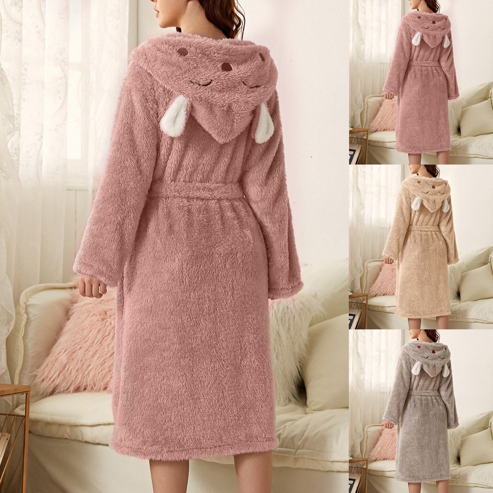 Women'S Double Pocket 3d Ear Hooded Flannel Bathrobe Soft And Warm Double-Faced Velvet Bathrobe Pajamas And Home Wear