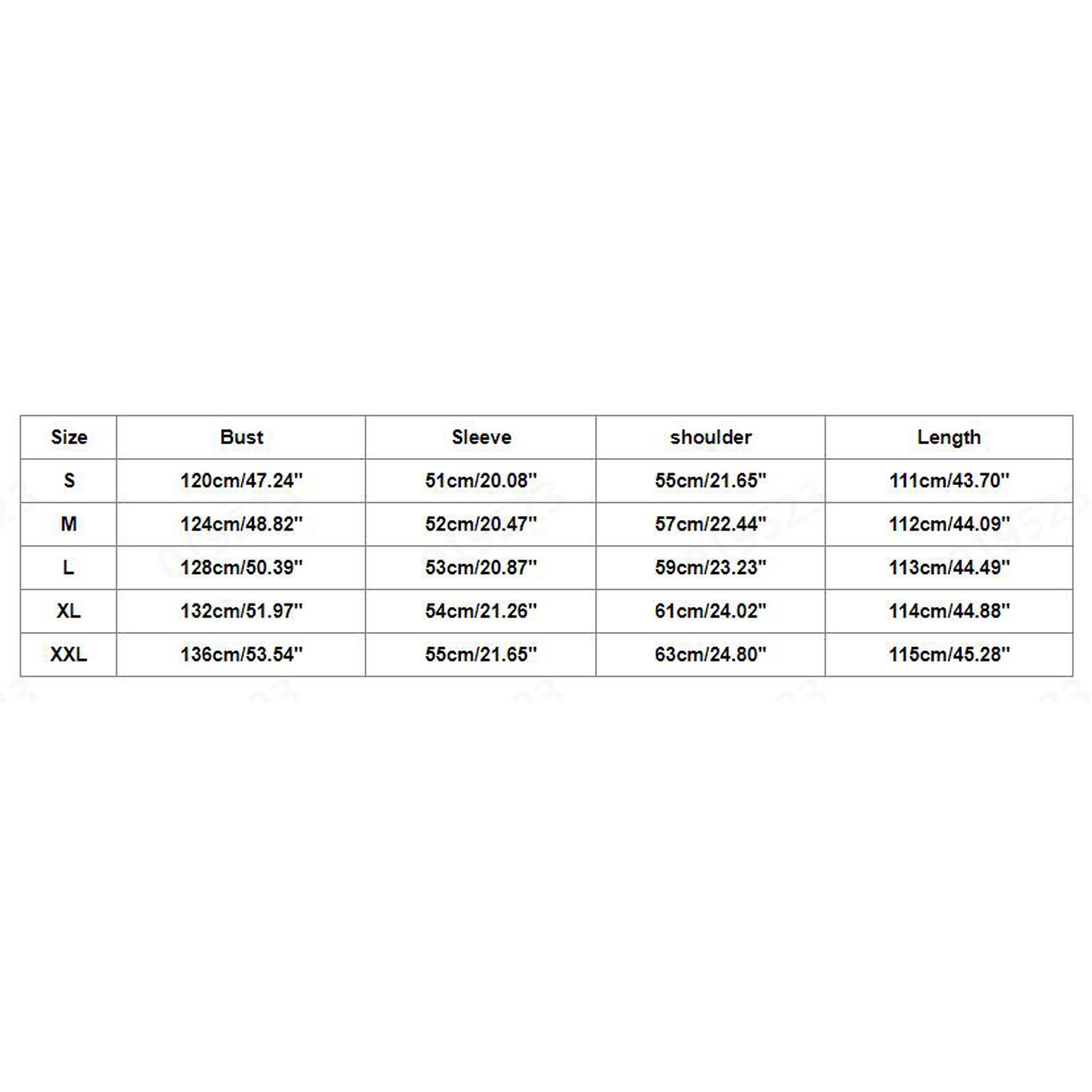Size:XL | Bust:132cm/51.97'' | Sleeve:54cm/21.26'' | shoulder:61cm/24.02'' | Length:114cm/44.88'' |