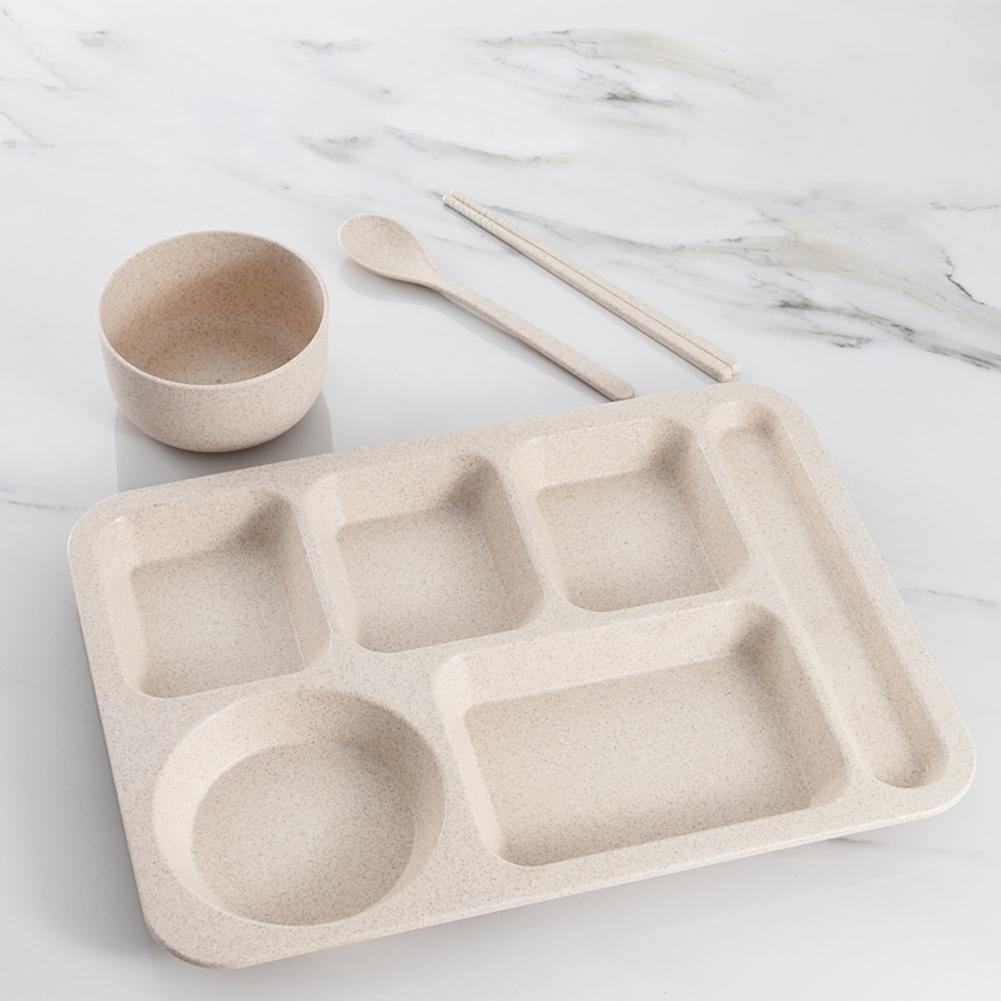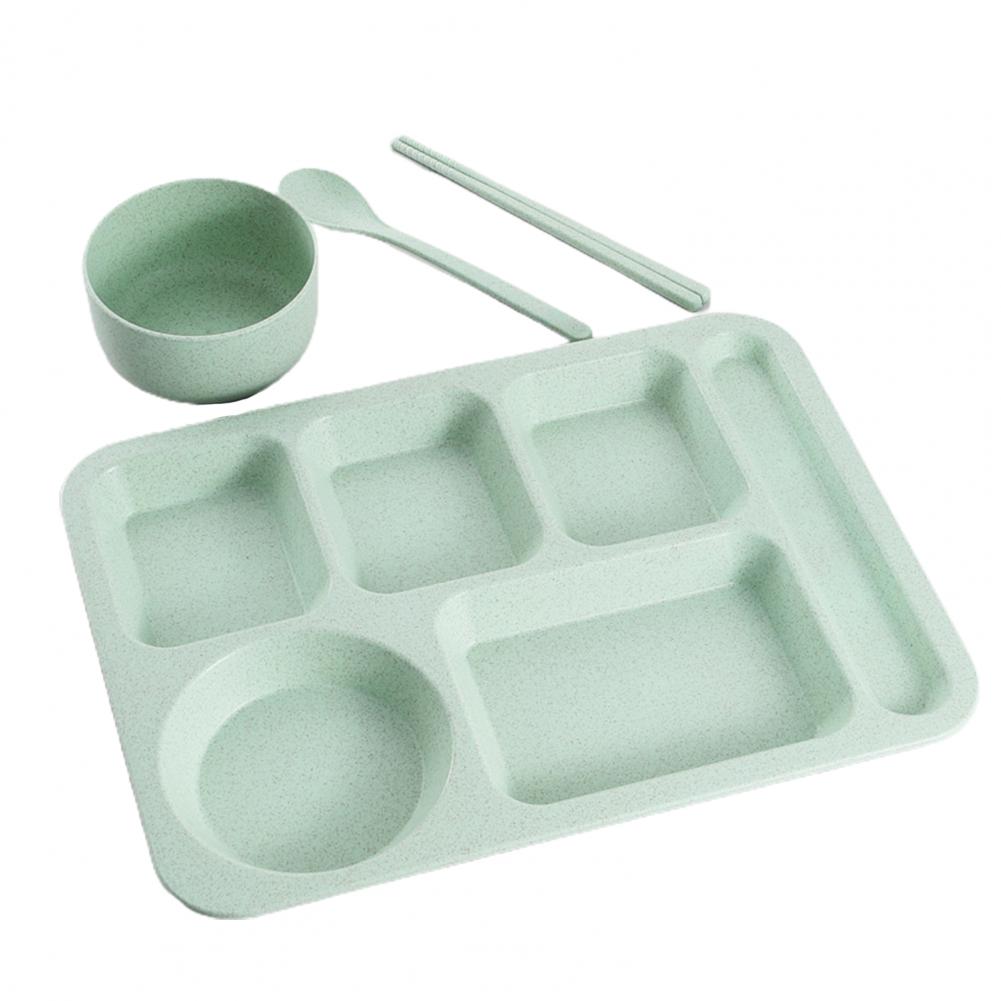 2021 Новое обеденное блюдо с изображением пшеничного колоса, соломенная тарелка для фаст-фуда, разделенная сетка, Студенческая столовая тарелка для взрослых, утолщенная с набором столовых приборов