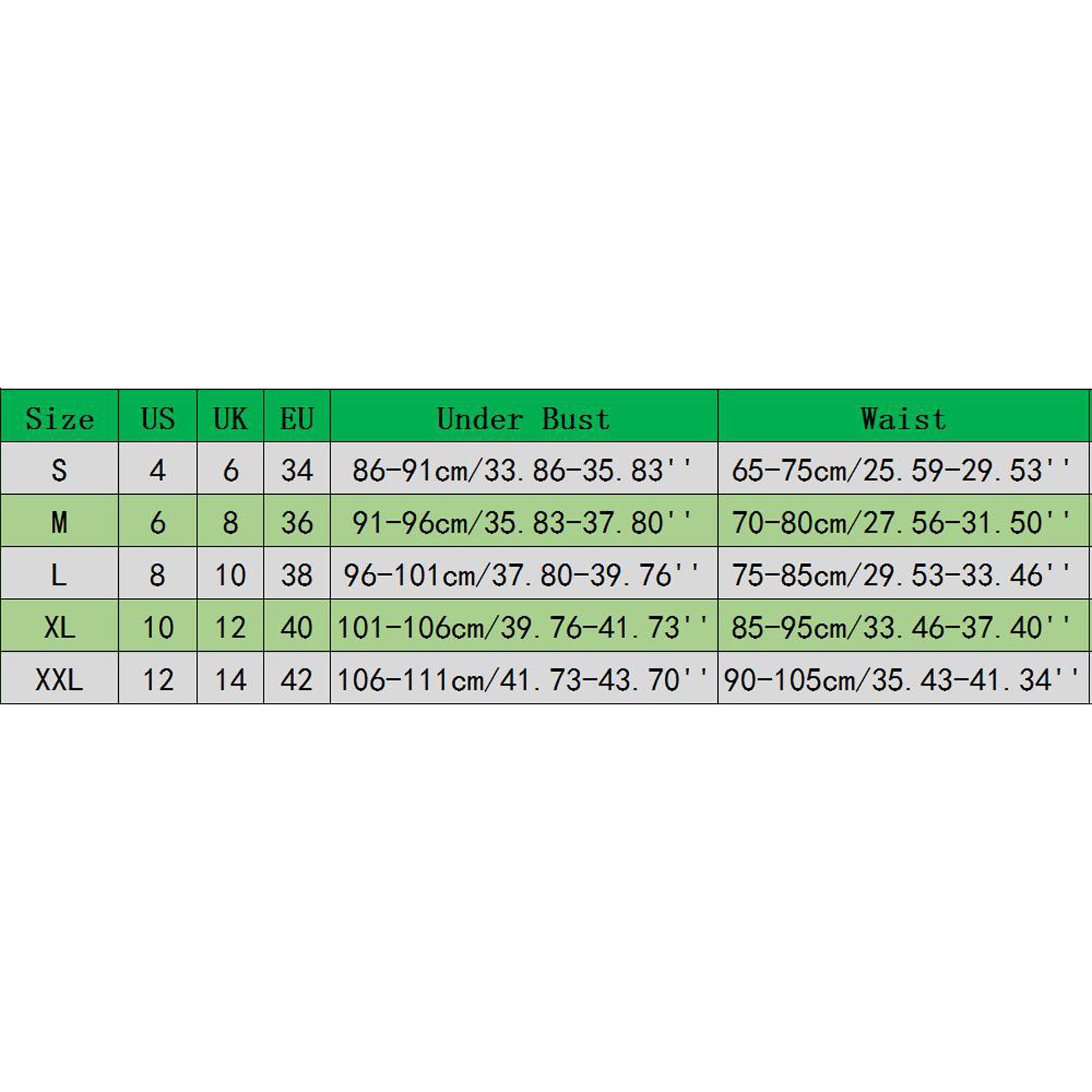 Size:XL | US Size:10 | UK Size:14 | EU Size:40 | Bust:101-106cm/39.76-41.73'' | Waist:85-95cm/33.46-37.40'' |