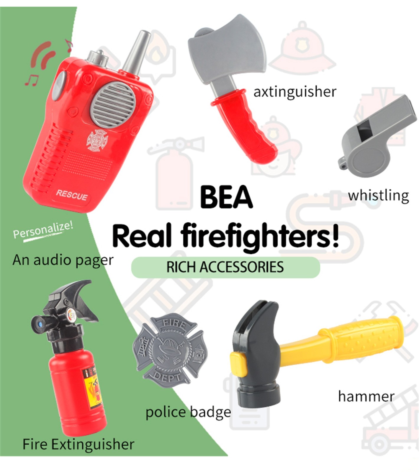 - 【Gift for Kids】: A perfect toy set to allow kids to learn something about fireman and know about what firemen usually use and do. A fun toy set to immerse your children in role playing games and keep them entertained for hours.