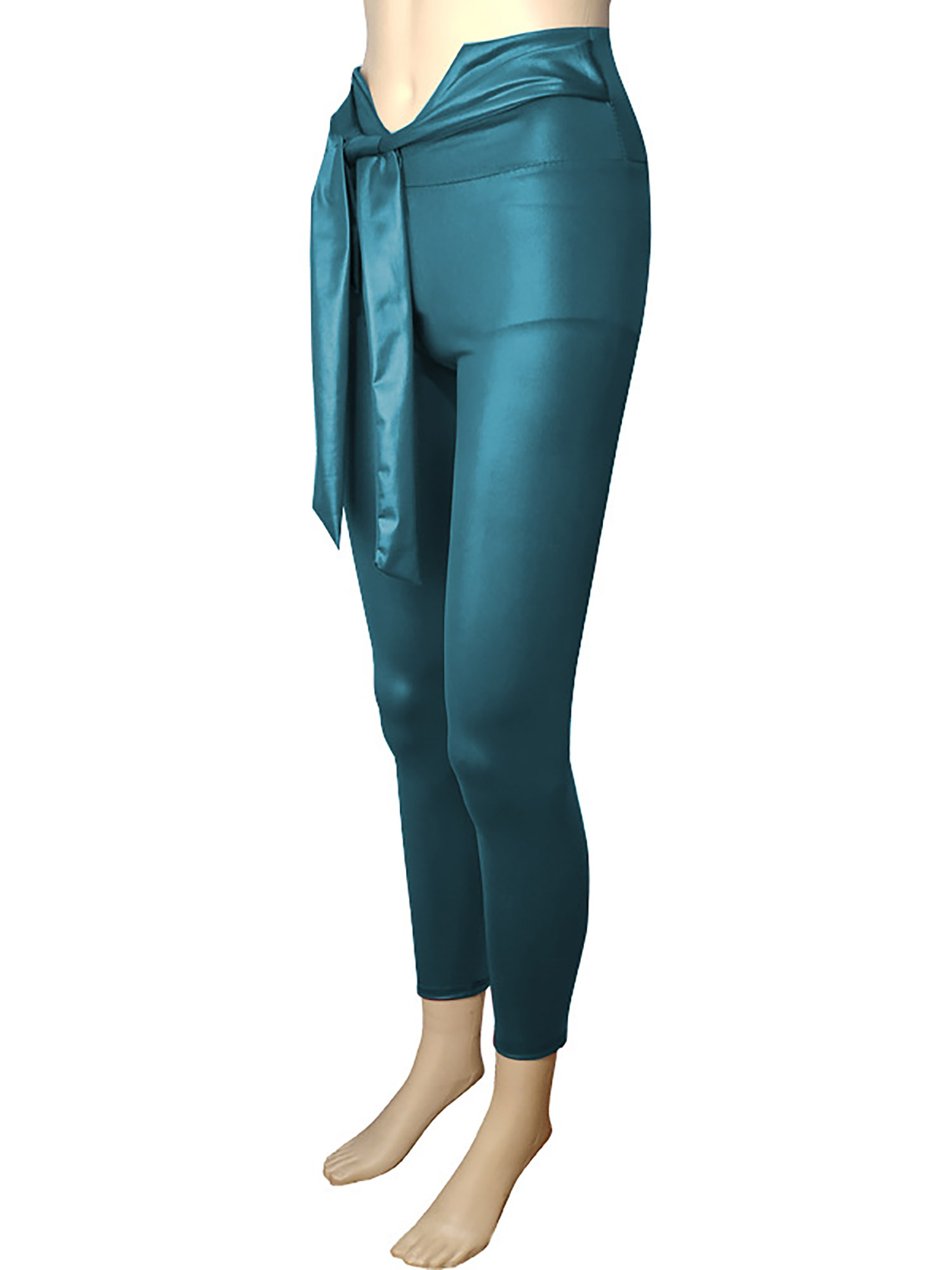 Особенности: высокая талия, широкий эластичный пояс, пояс, плотно облегающие леггинсы.
