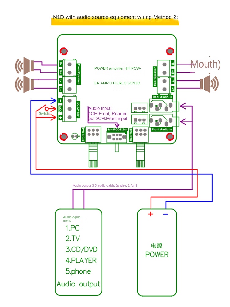 Вход режим: 3,5 мм аудио кабель Вход или 3P2.54mm