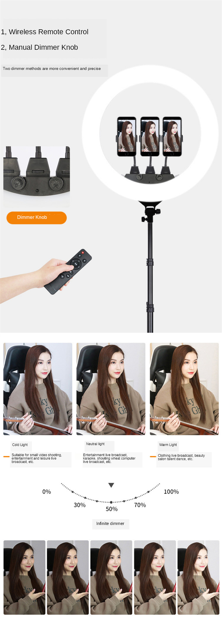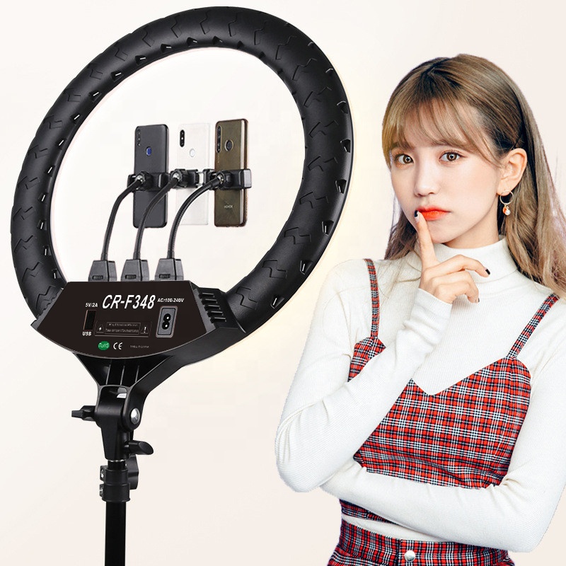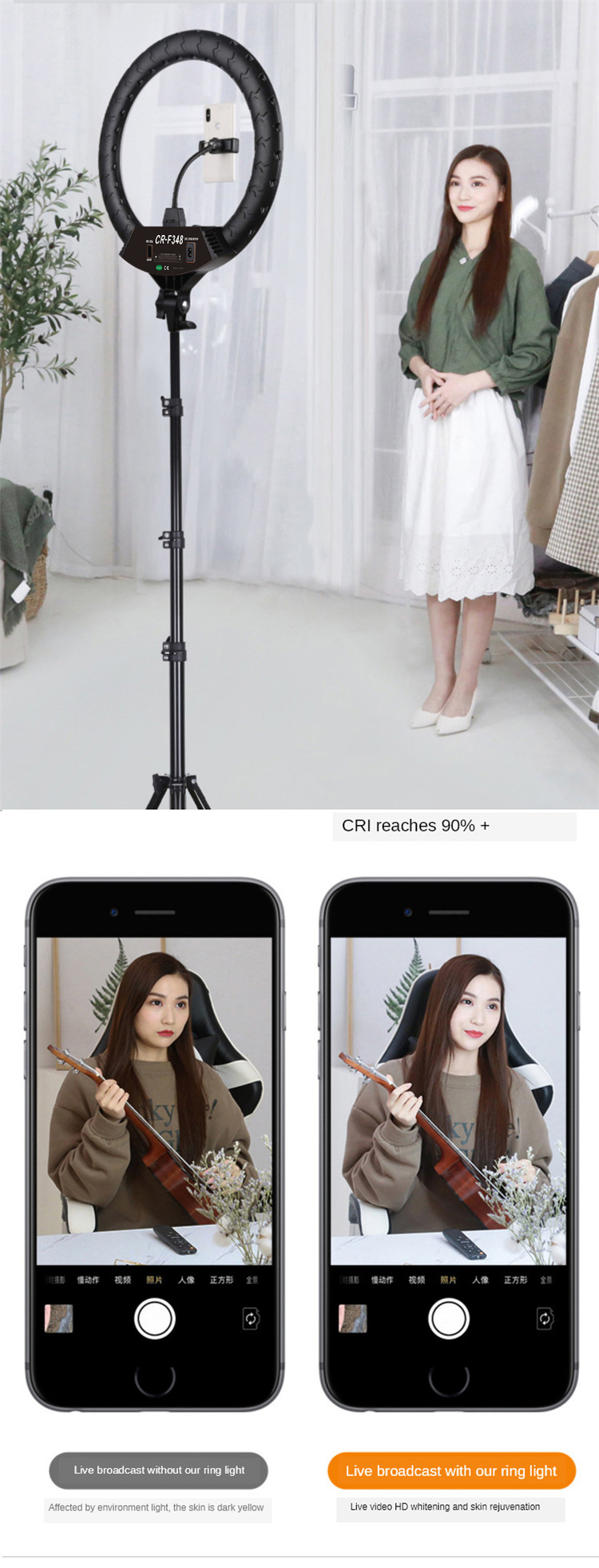 Посылка | CR-F348 кольцевой светильник * 1, светильник 200 см * 1, кронштейн для телефона * 3, сумка для переноски * 1, кабель питания * 1, беспроводной пульт дистанционного управления * 1 |