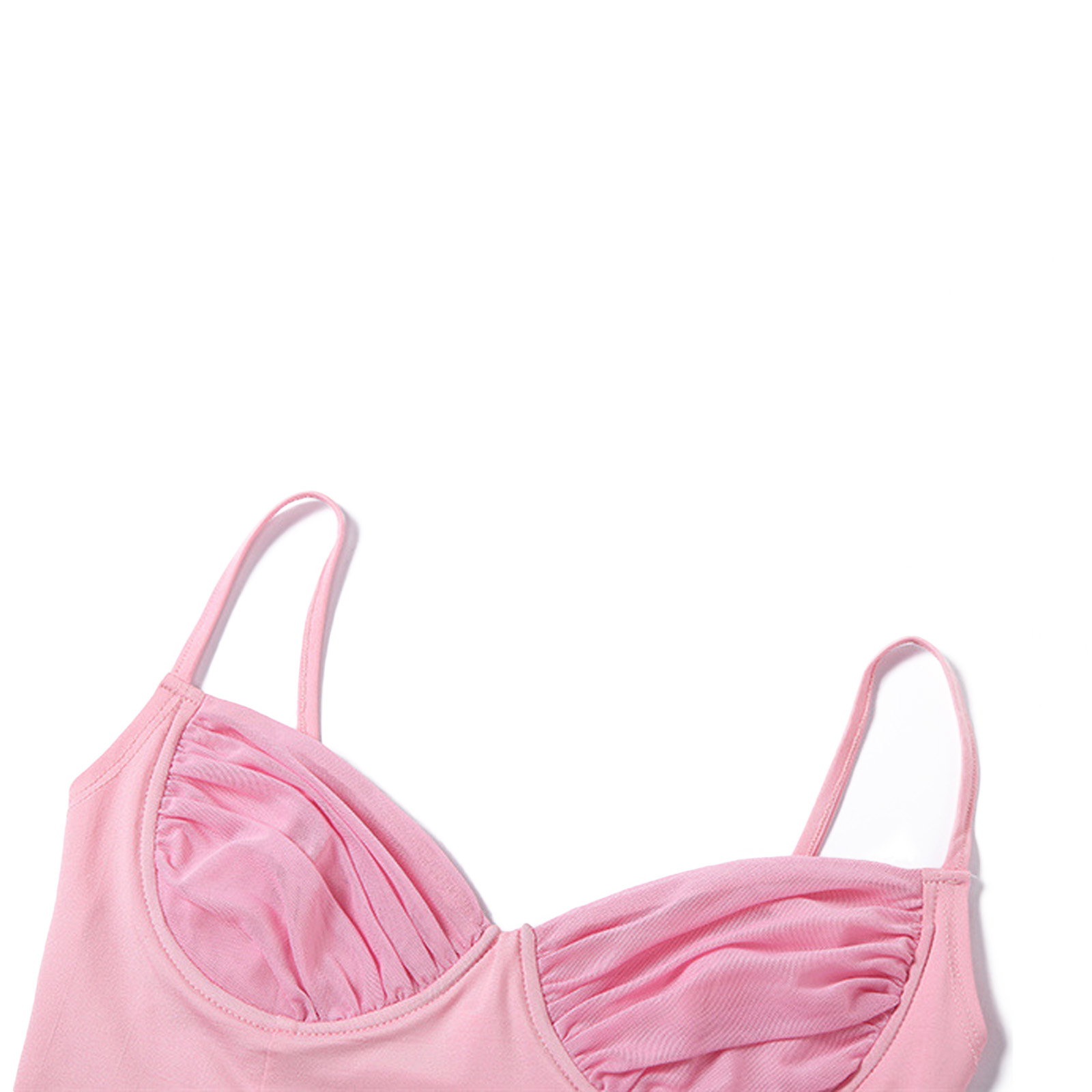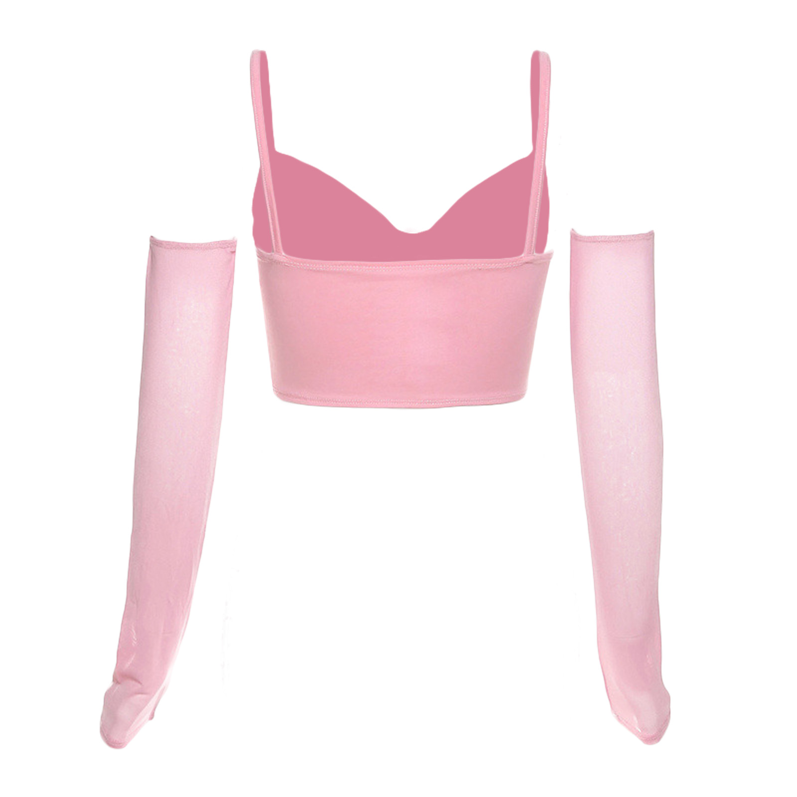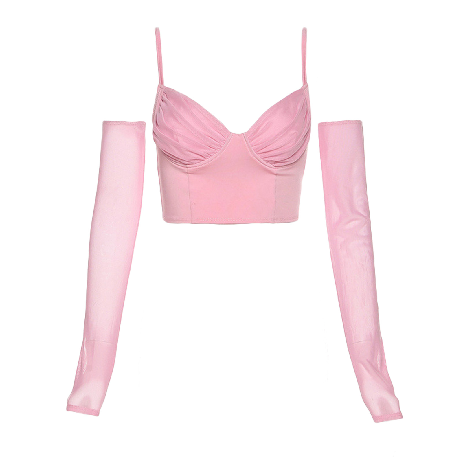 Женский укороченный топ без рукавов однотонный розовый с V-образным вырезом и