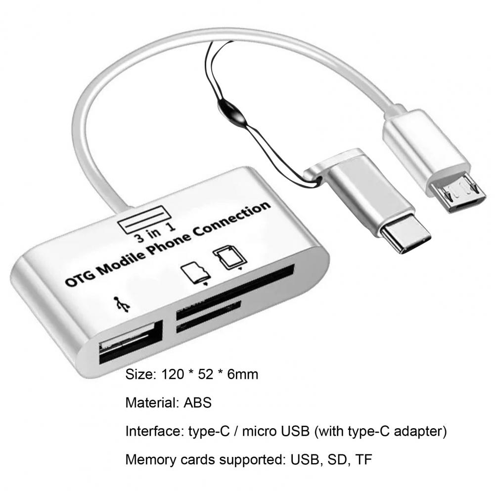 Практичный кард-ридер без драйвера с адаптером Type-C кард-ридер TF/Micro-SD кард-ридер