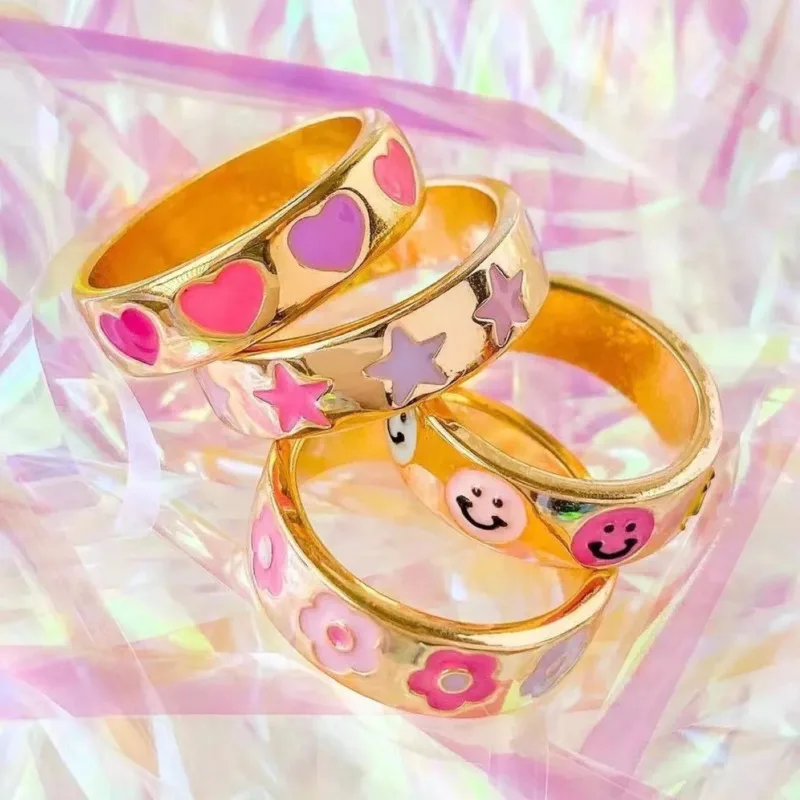 Эмалированные блестящие круглые кольца в виде Луны и молнии для