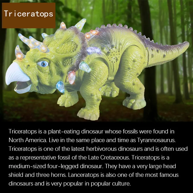Трицератопс: ходьба, огни, подвижный хвост, реалистичные звуковые эффекты (без яиц динозавра)