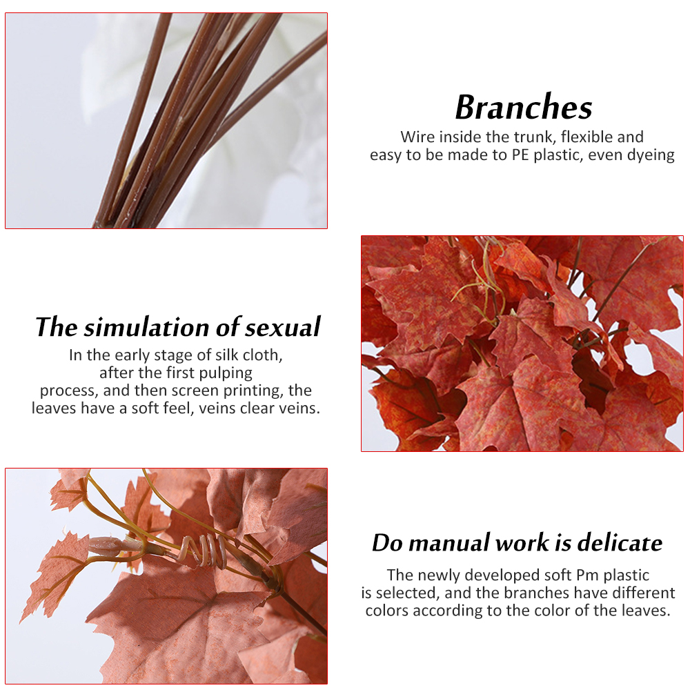 • Многоразовый Декор. Декор кленовых листьев сделан из превосходного шелка, стебель изготовлен из экологически чистого пластика и железной проволоки, что делает ветку кленового листа реалистичной и гибкой.