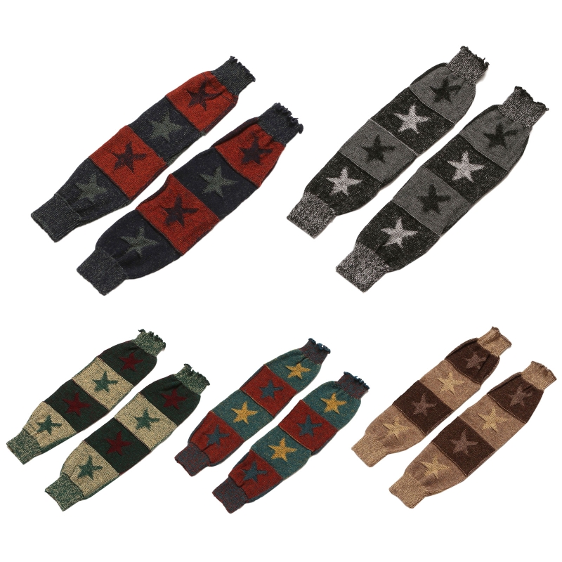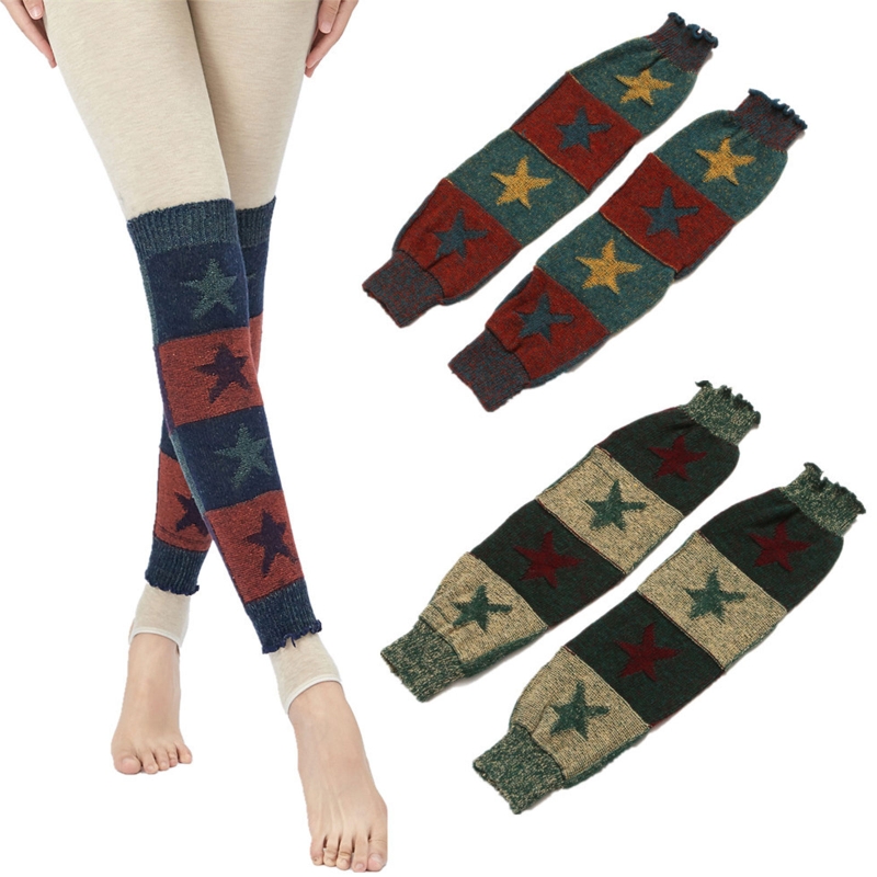 Women Winter Knit Leg Warmers Colorblock Striped Star Crochet Boot Cuffs Socks F3MD