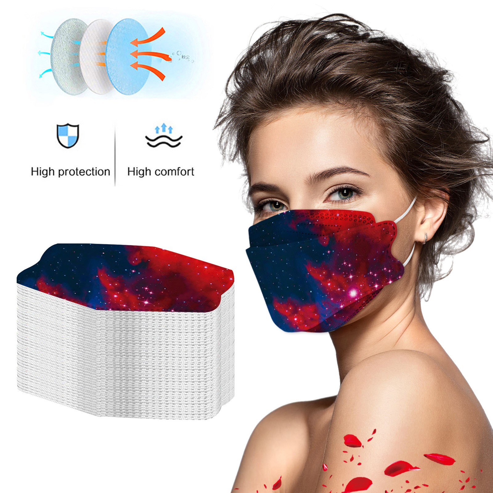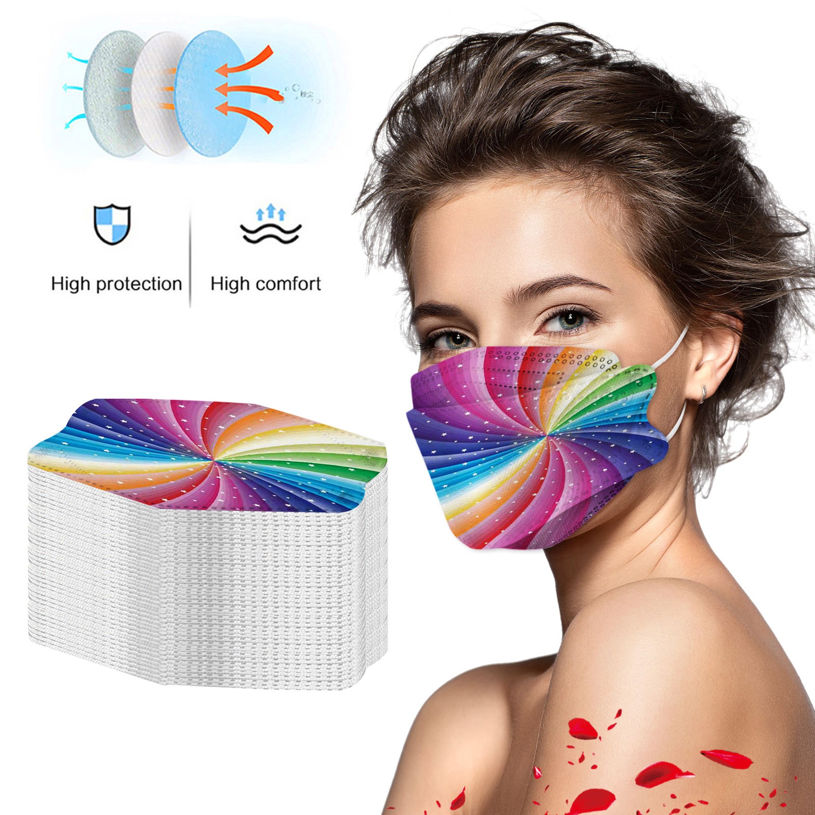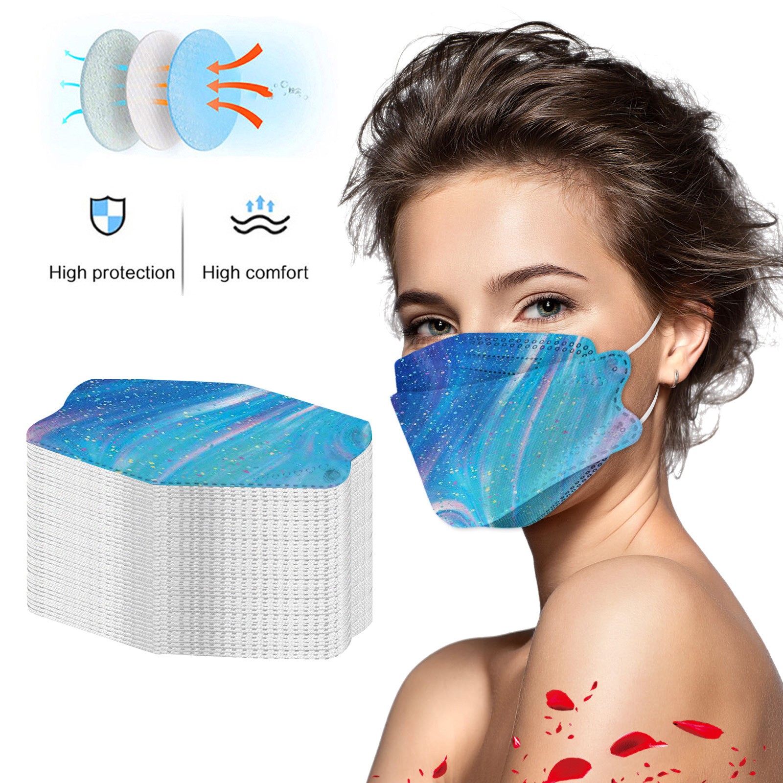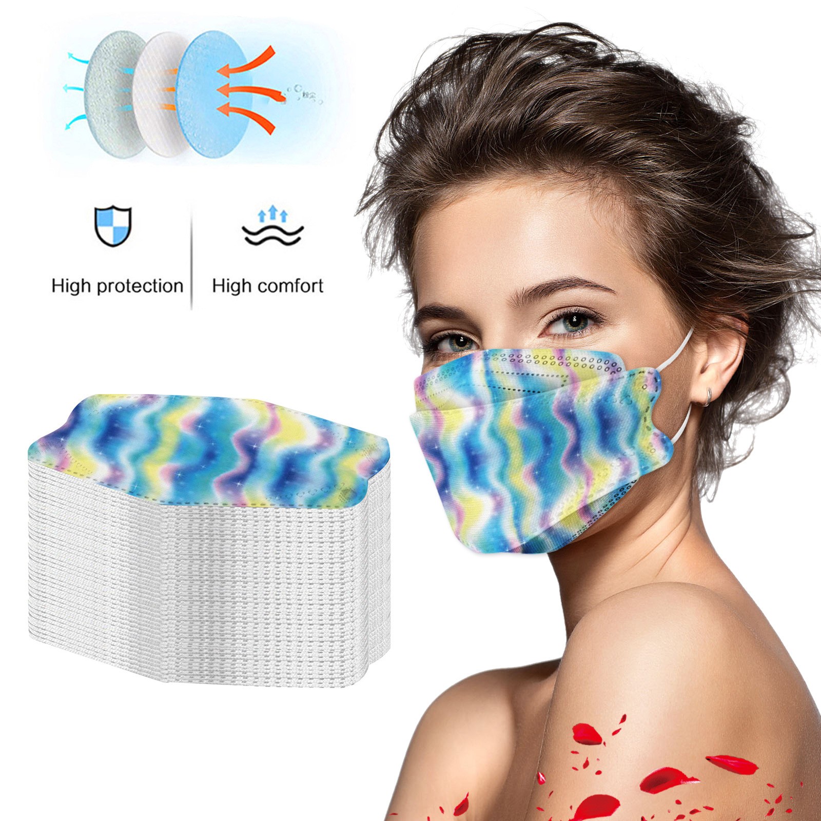 ·5. Высокоэффективная Фильтрация: нетканый материал фильтрует большие частицы, плавающий адсорбируется электростатическим хлопком среднего уровня, смогом, вентиляцией и материалами внутри. Эластичные ремешки для ушей, легко растягиваются и надеваются. Противотуманные, противотуманные, пыльца и т. Д.
