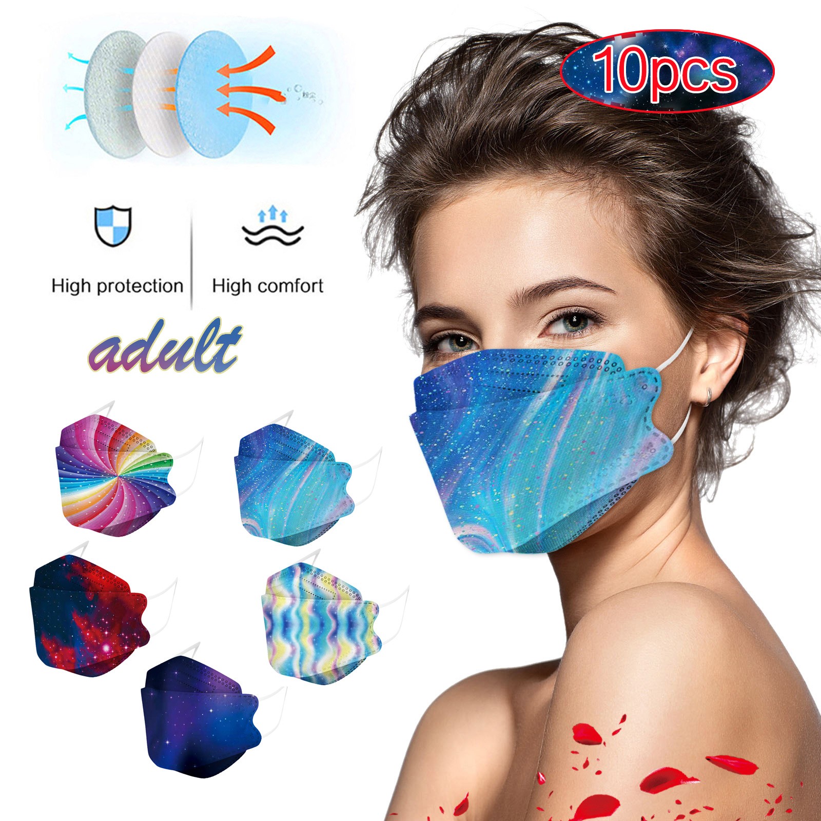 10 шт., маска для защиты рта рыбы для взрослых, четырехслойные маски для лица