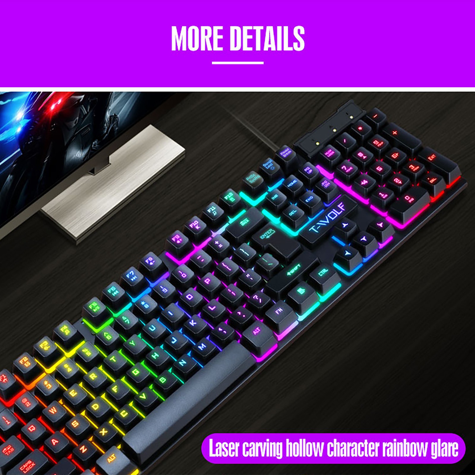 TF200 Радуга Подсветка Usb эргономичная игровая клавиатура и мышь набор для ноутбука