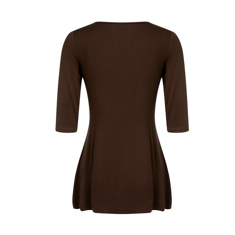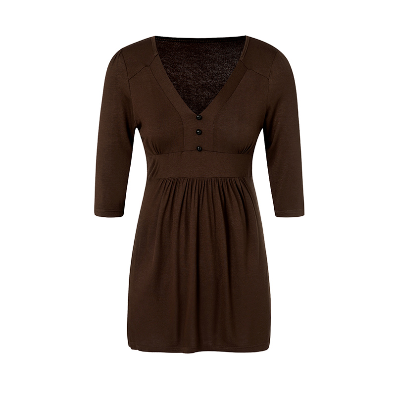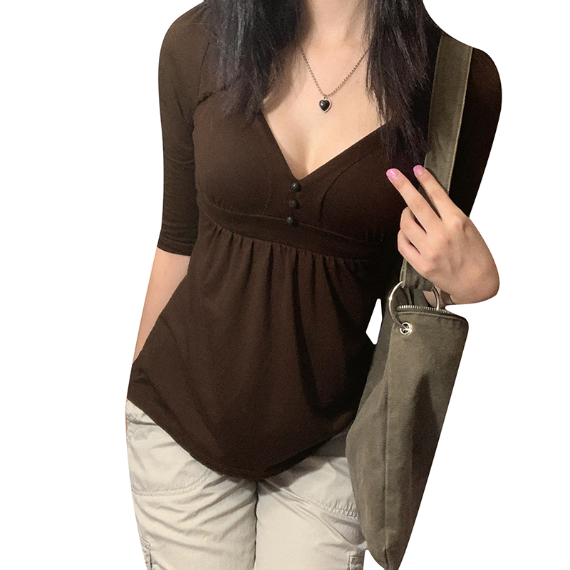 Женская Однотонная рубашка, рукав до локтя, v-образный вырез, на пуговицах, на груди, Свободный Подол, женская футболка