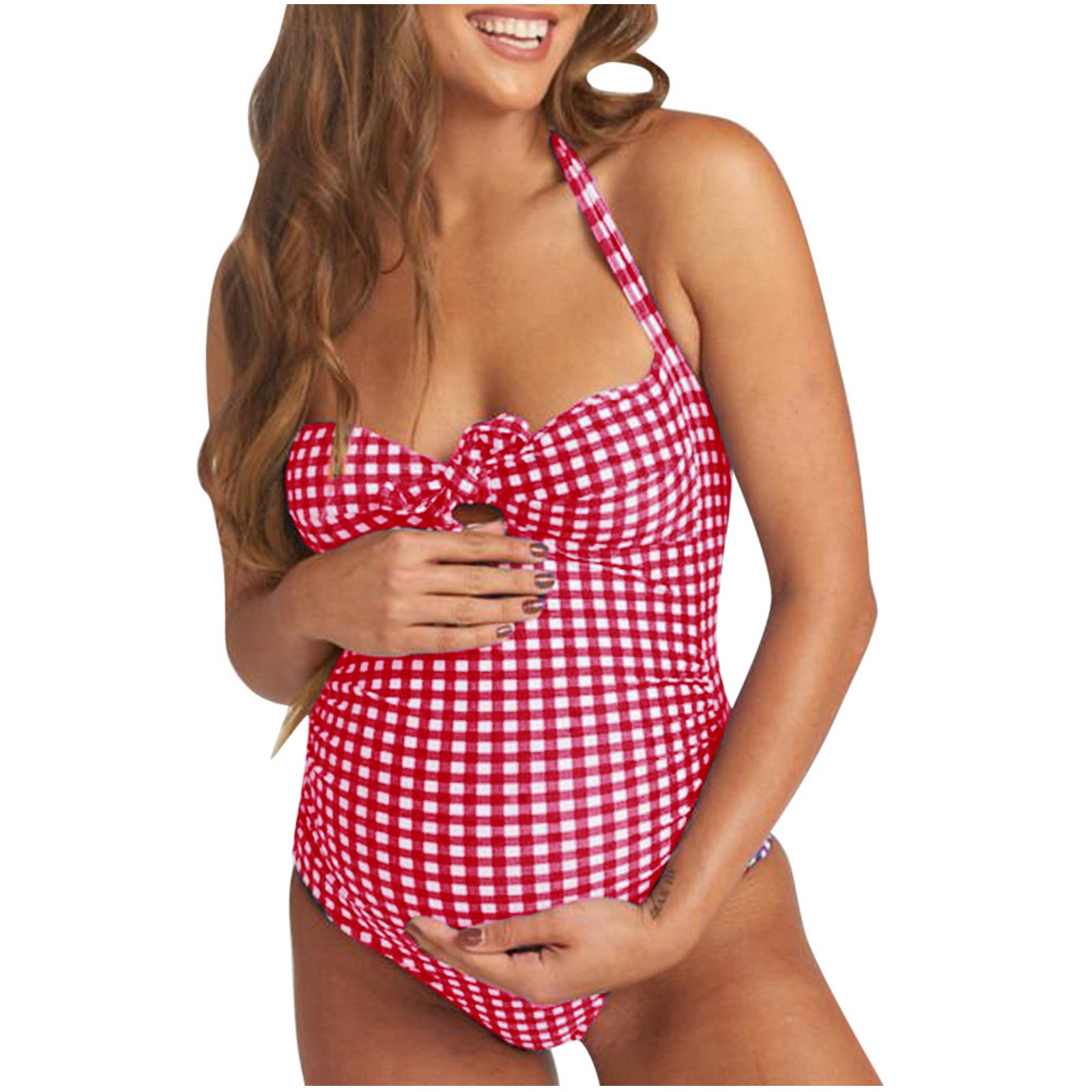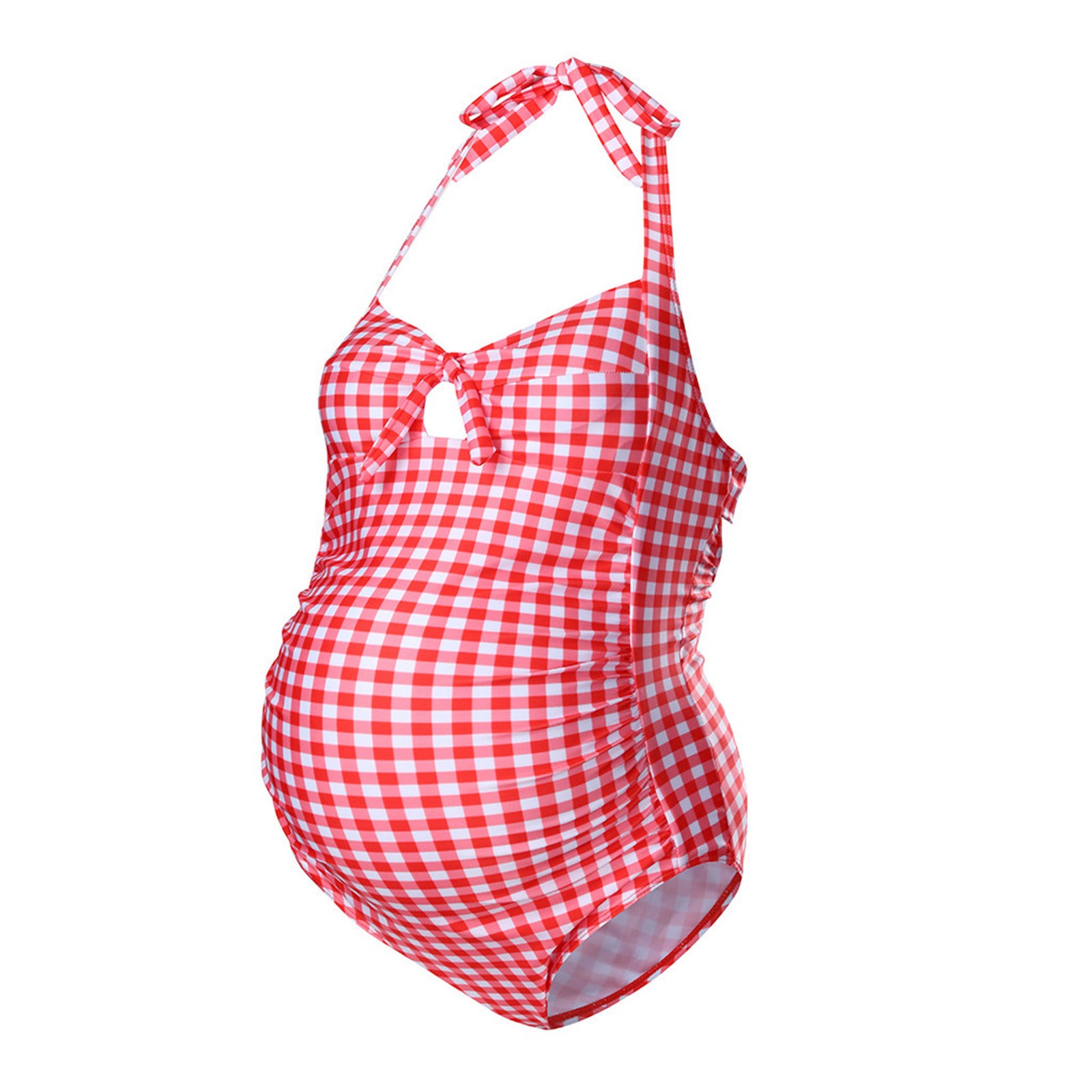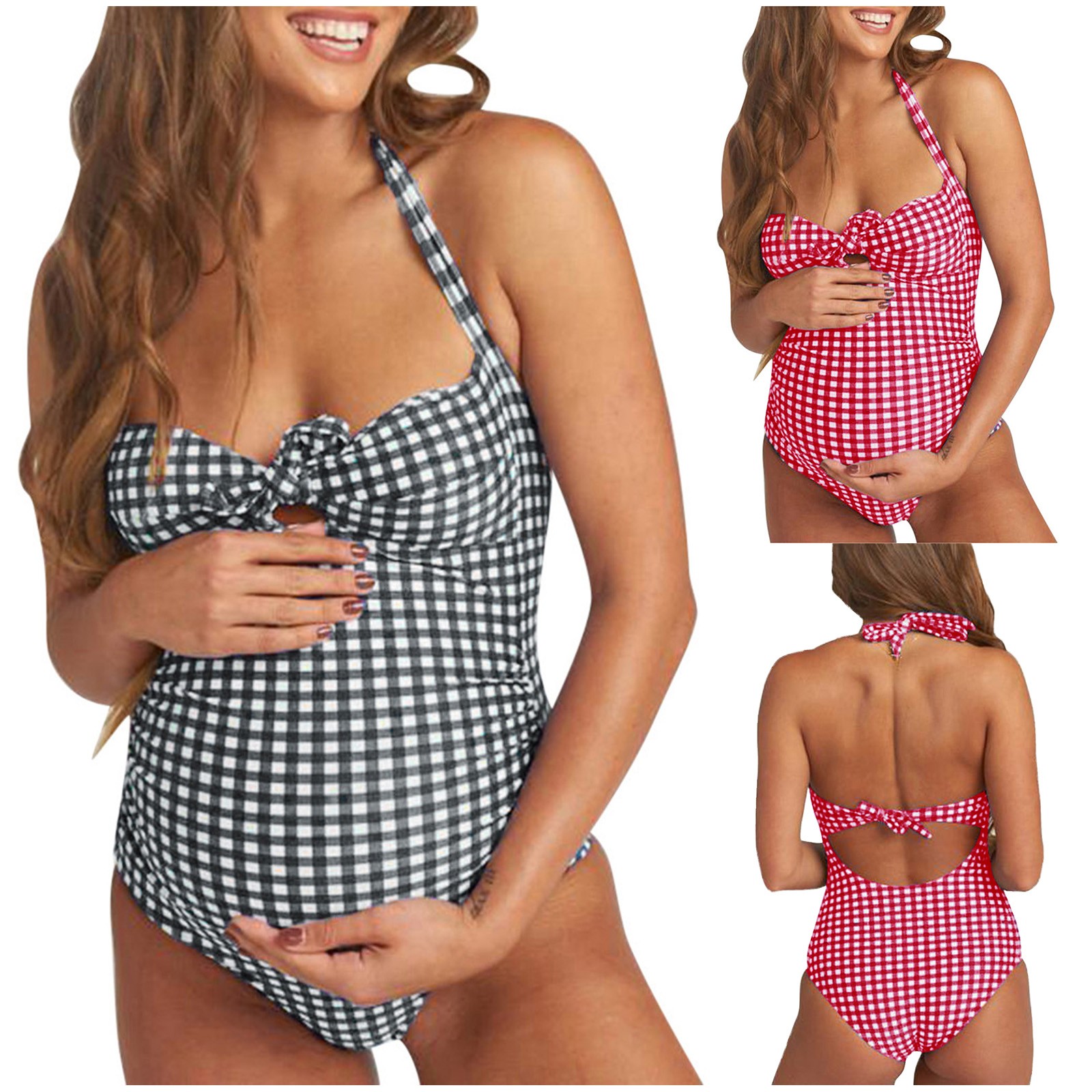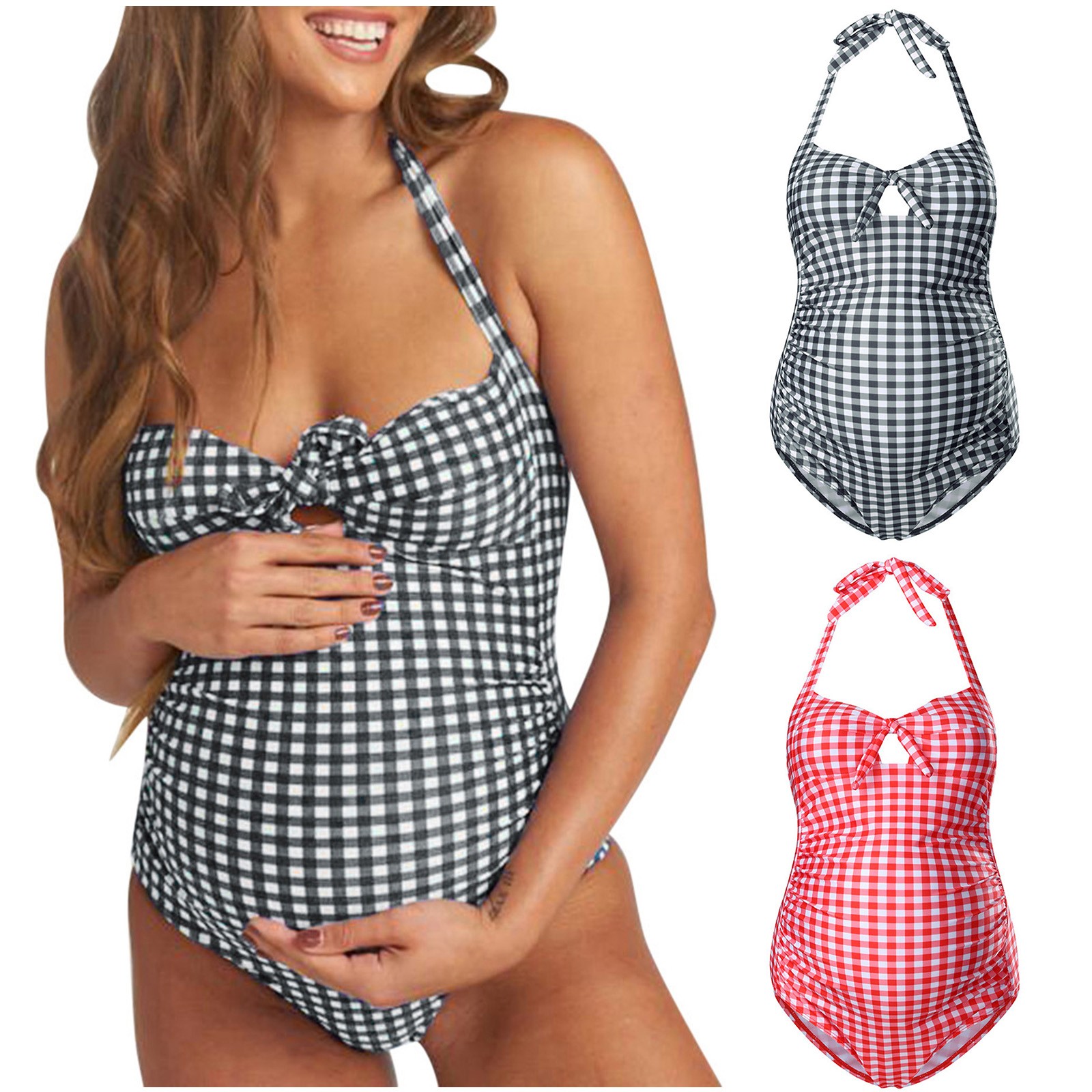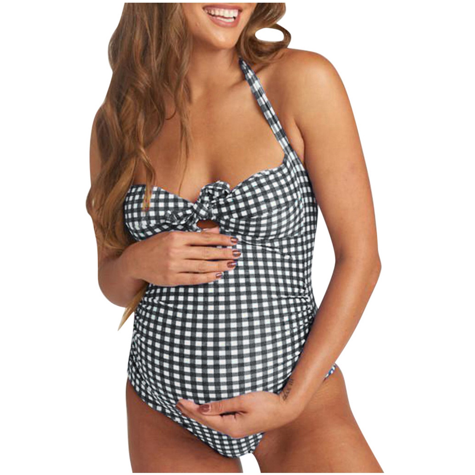 Женский Летний Пляжный Купальник-бикини с принтом в клетку для беременных