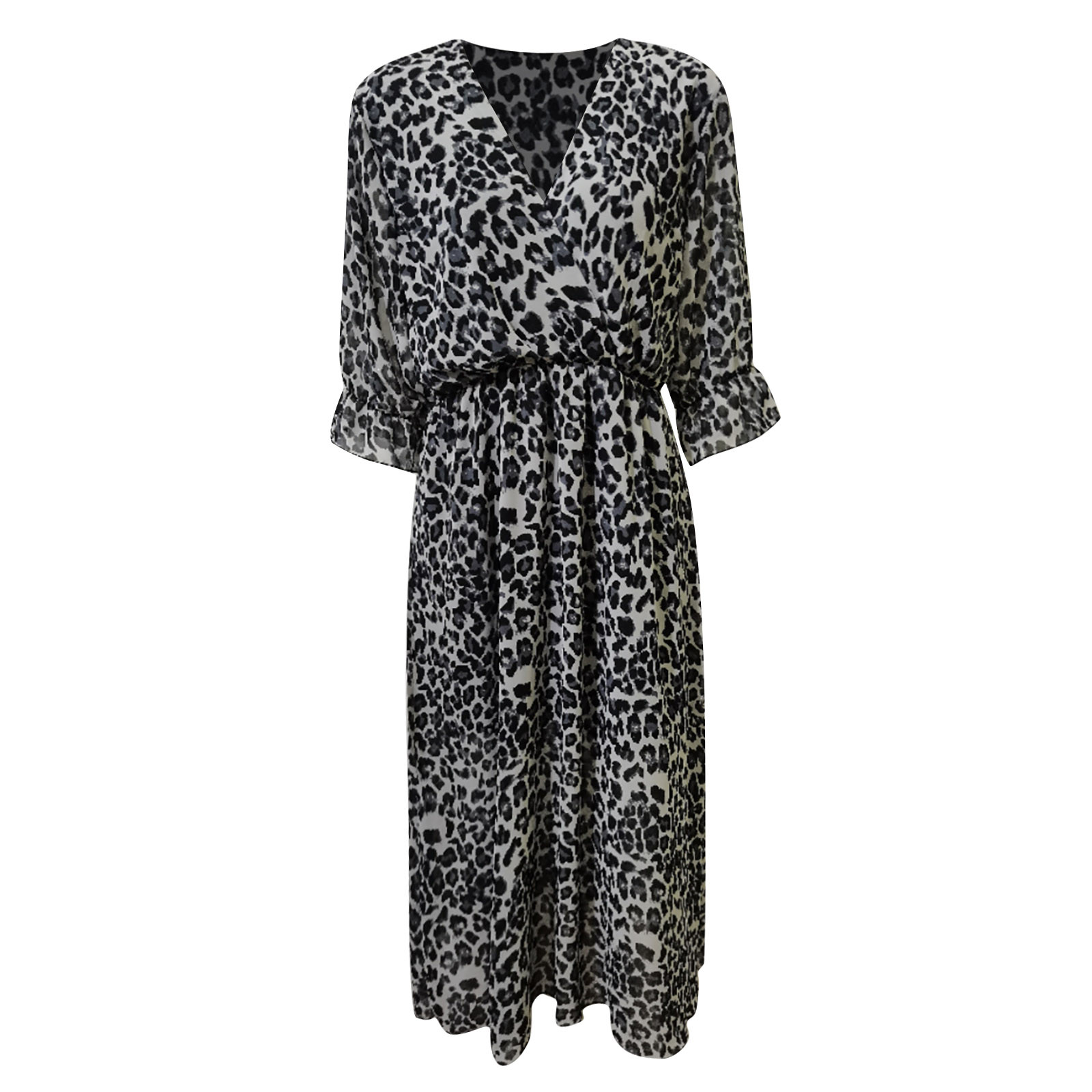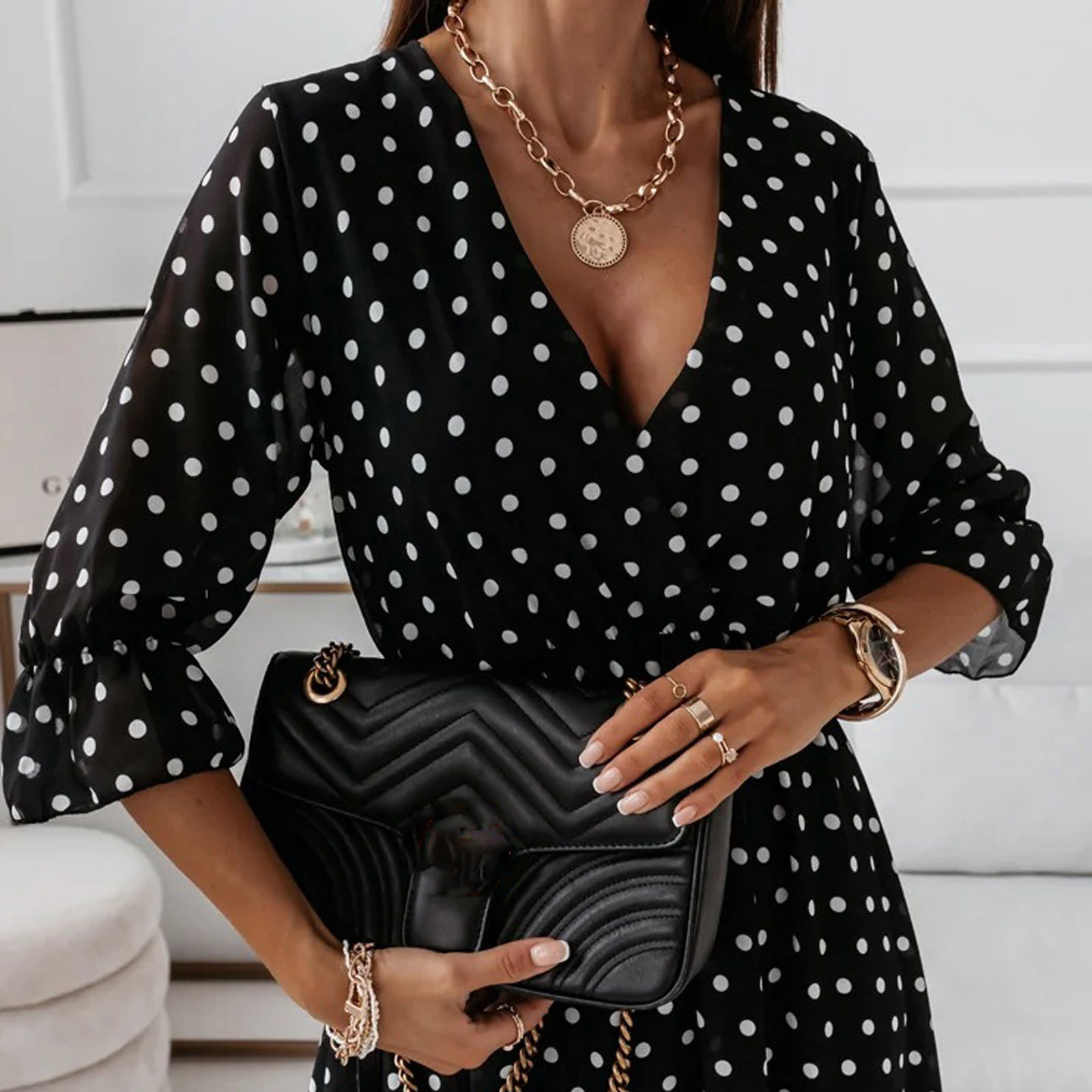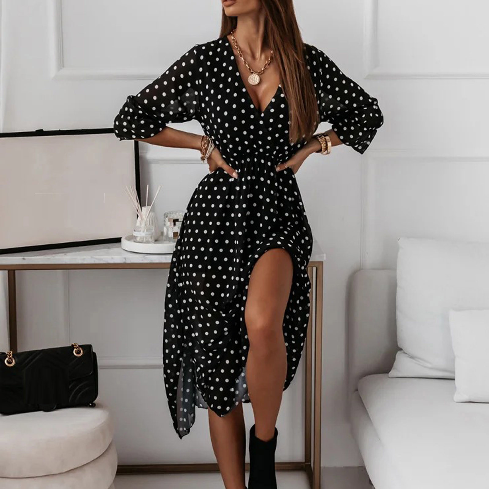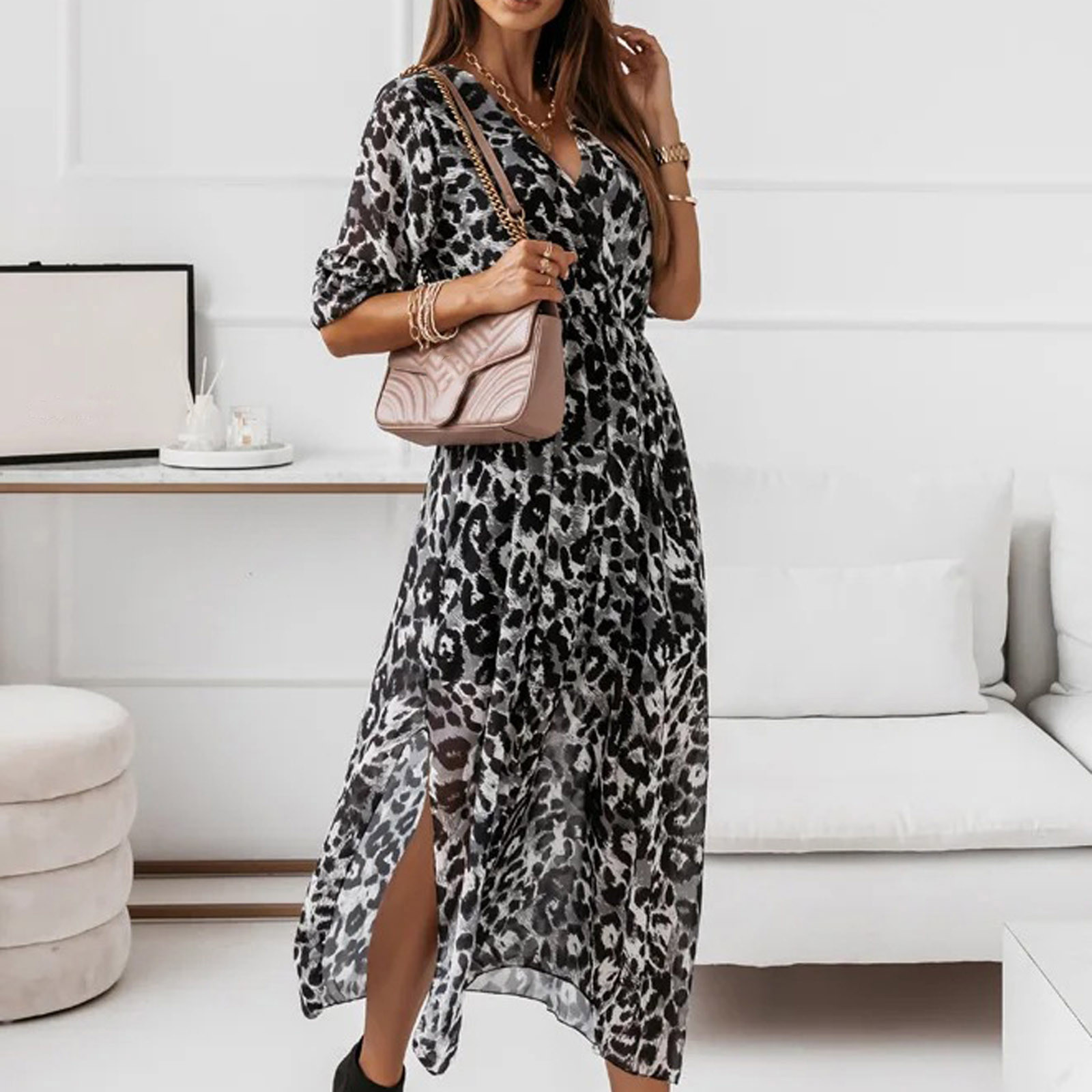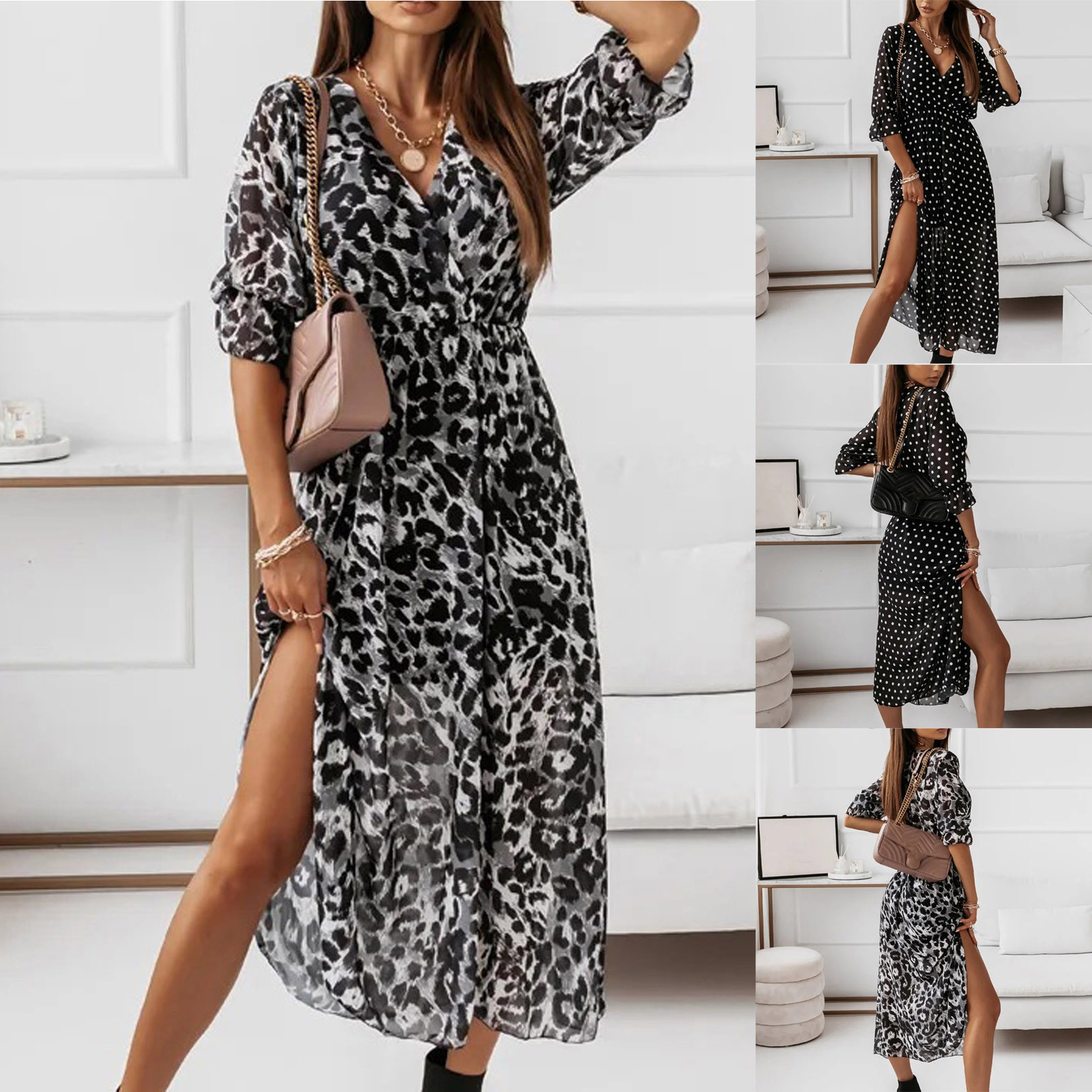 Женский пуловер с v-образным вырезом и принтом средней талии, повседневные свободные и тонкие темпераментные платья
