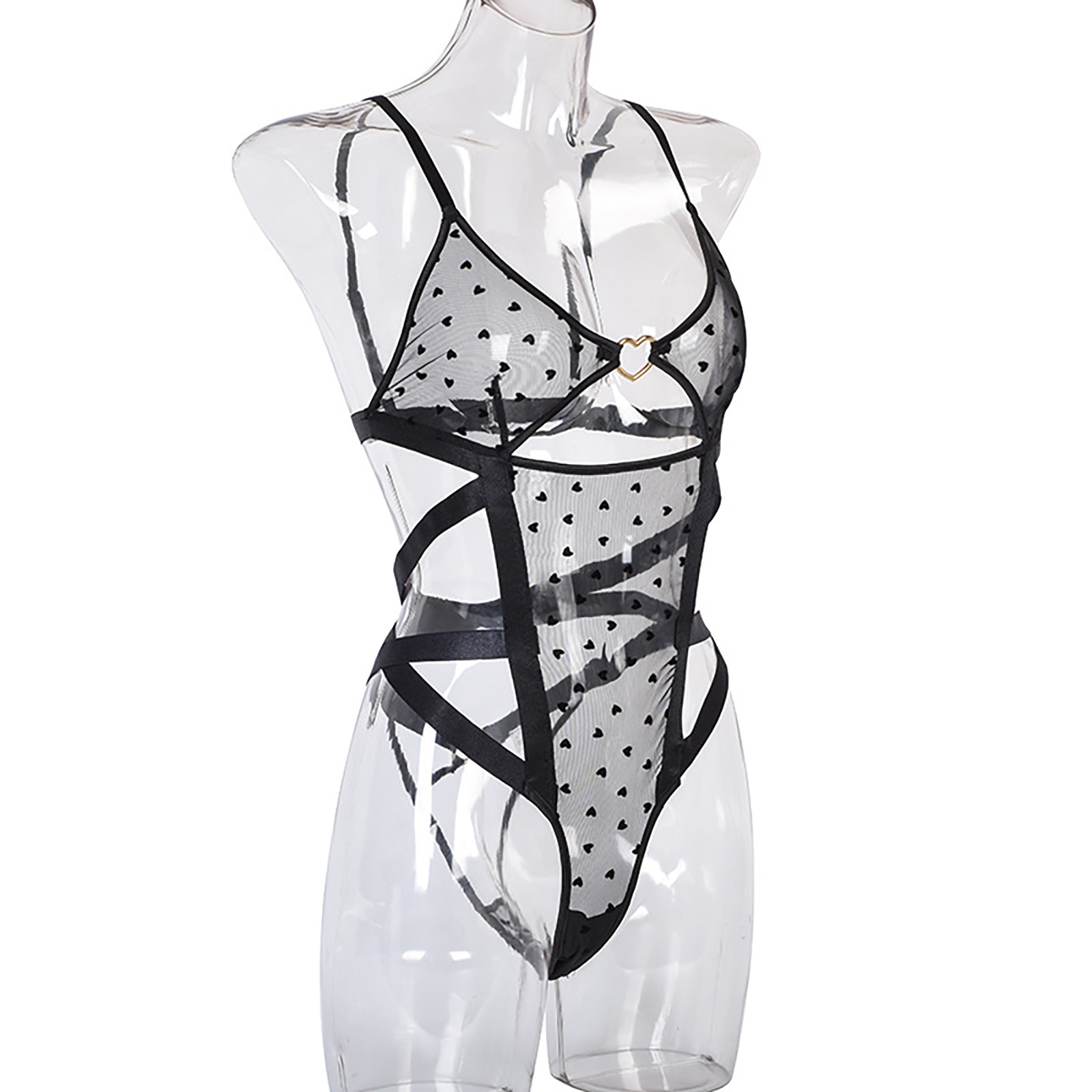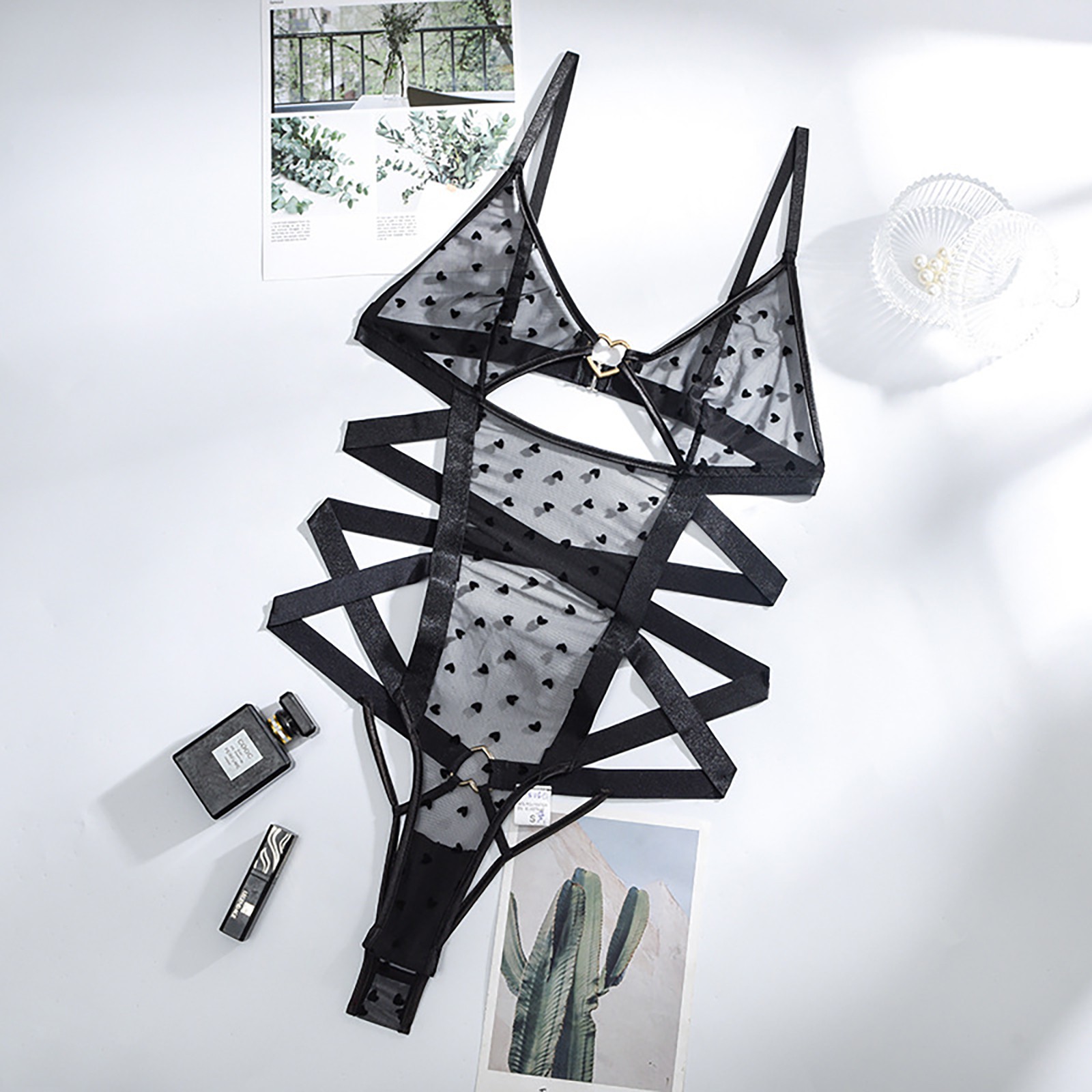 Женское сексуальное черное цельное прозрачное Прозрачное нижнее белье с подтяжками