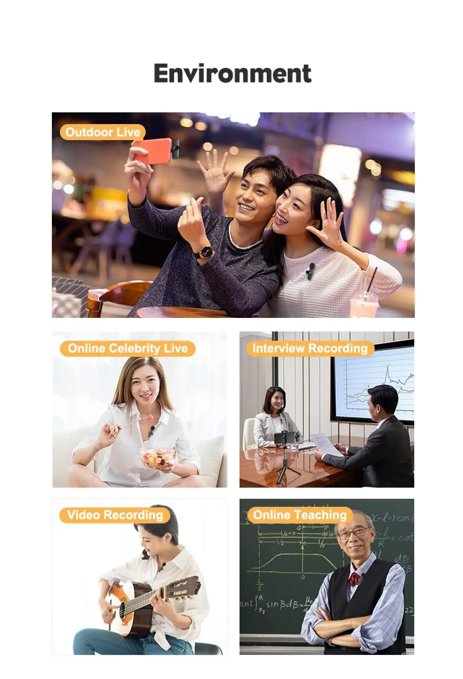 8. Четкое качество звука, встроенный чип шумоподавления, беспроводной микрофон имеет сильную способность анти-помех и может эффективно идентифицировать голос динамика, который все еще может четко записывать голос и уменьшать шум, это отличный видеорегистратор для живых творцов