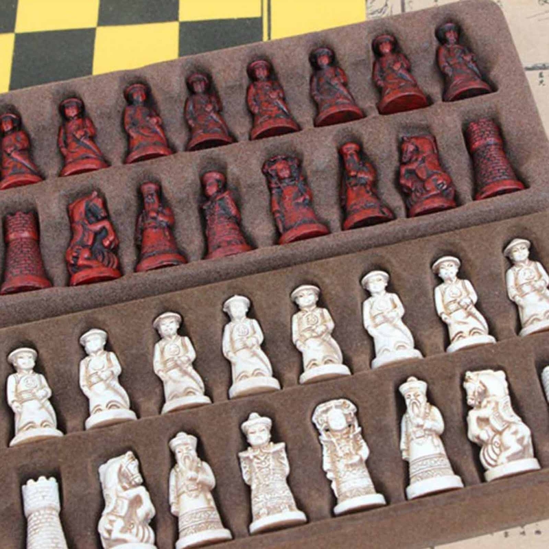 Антикварные шахматы маленькие кожаные развлекательные игрушки Шахматная доска Qingbing реалистичные шахматные фигуры персонажи подарки для родителей