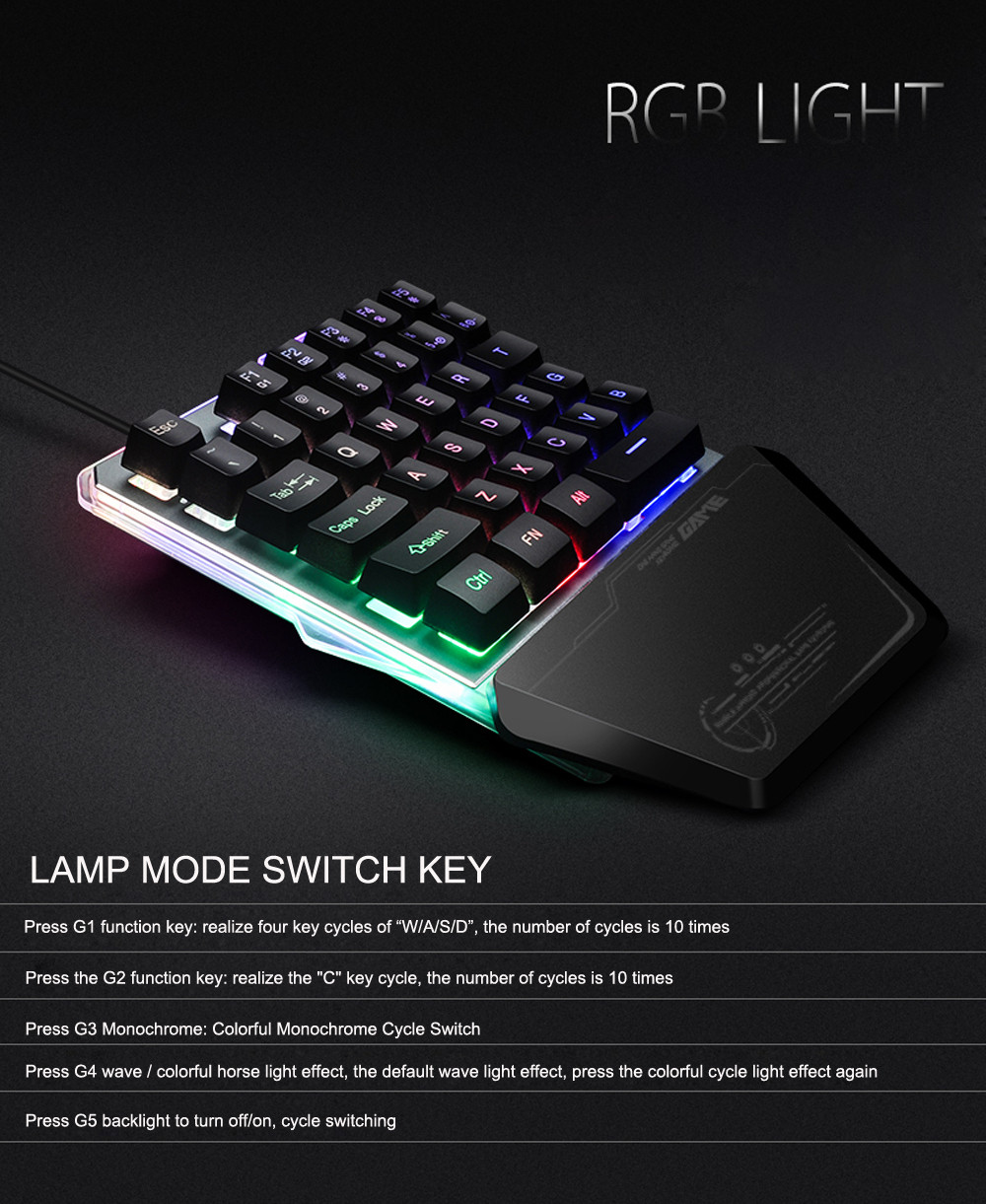 Проводная Игра G40 Клавиатура с светодиодный подсветкой 35 клавиш с одной рукой мембранная клавиатура