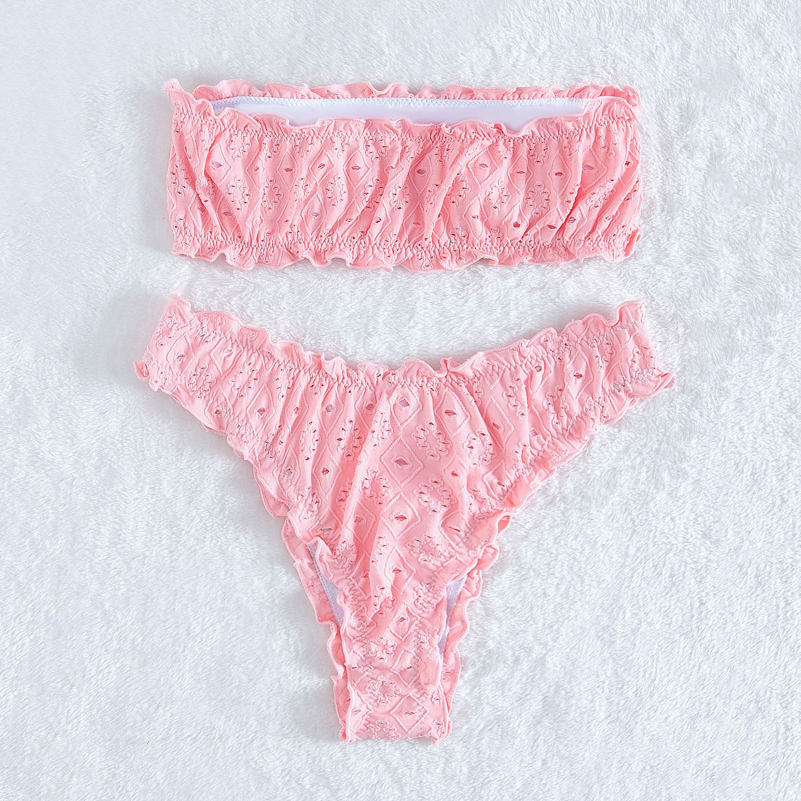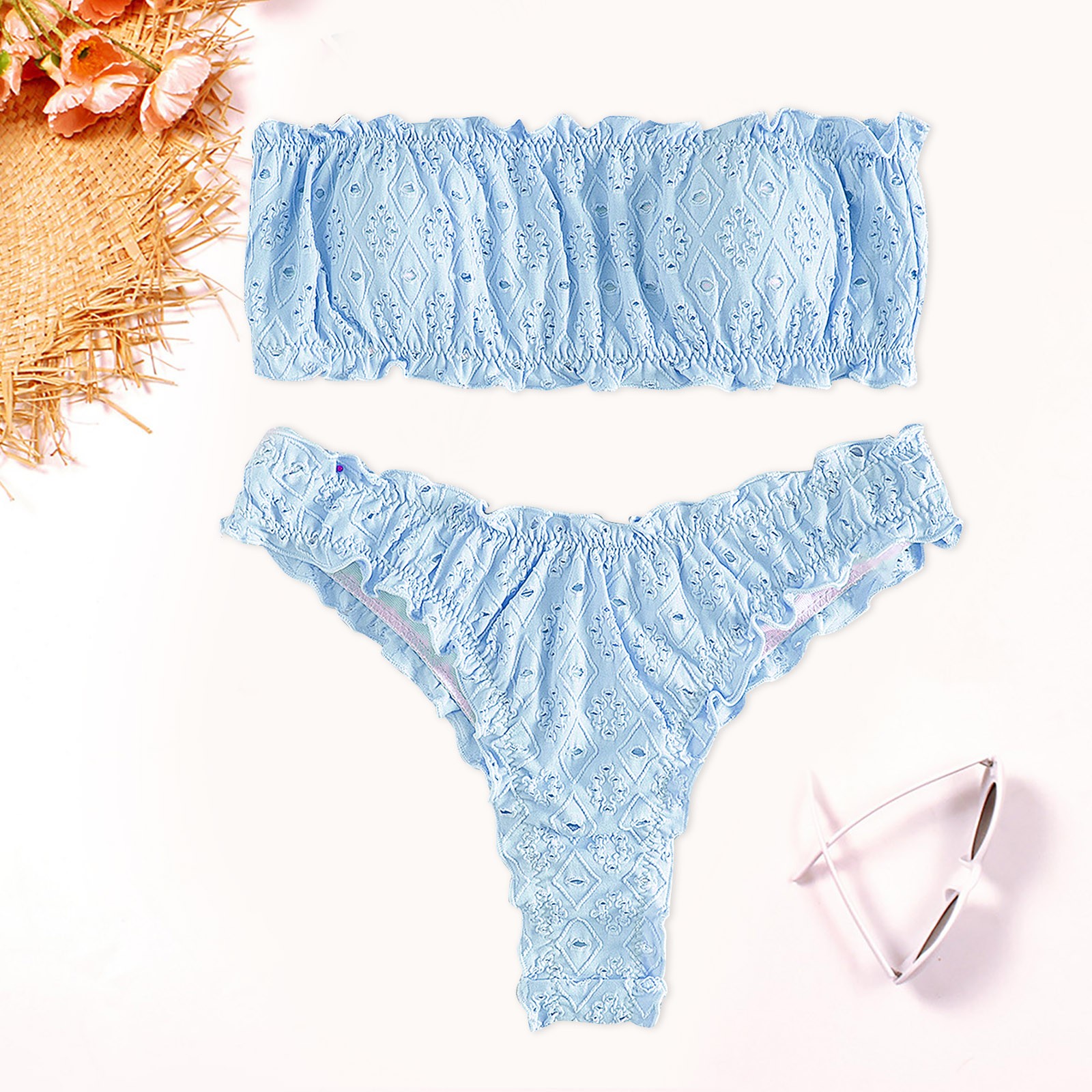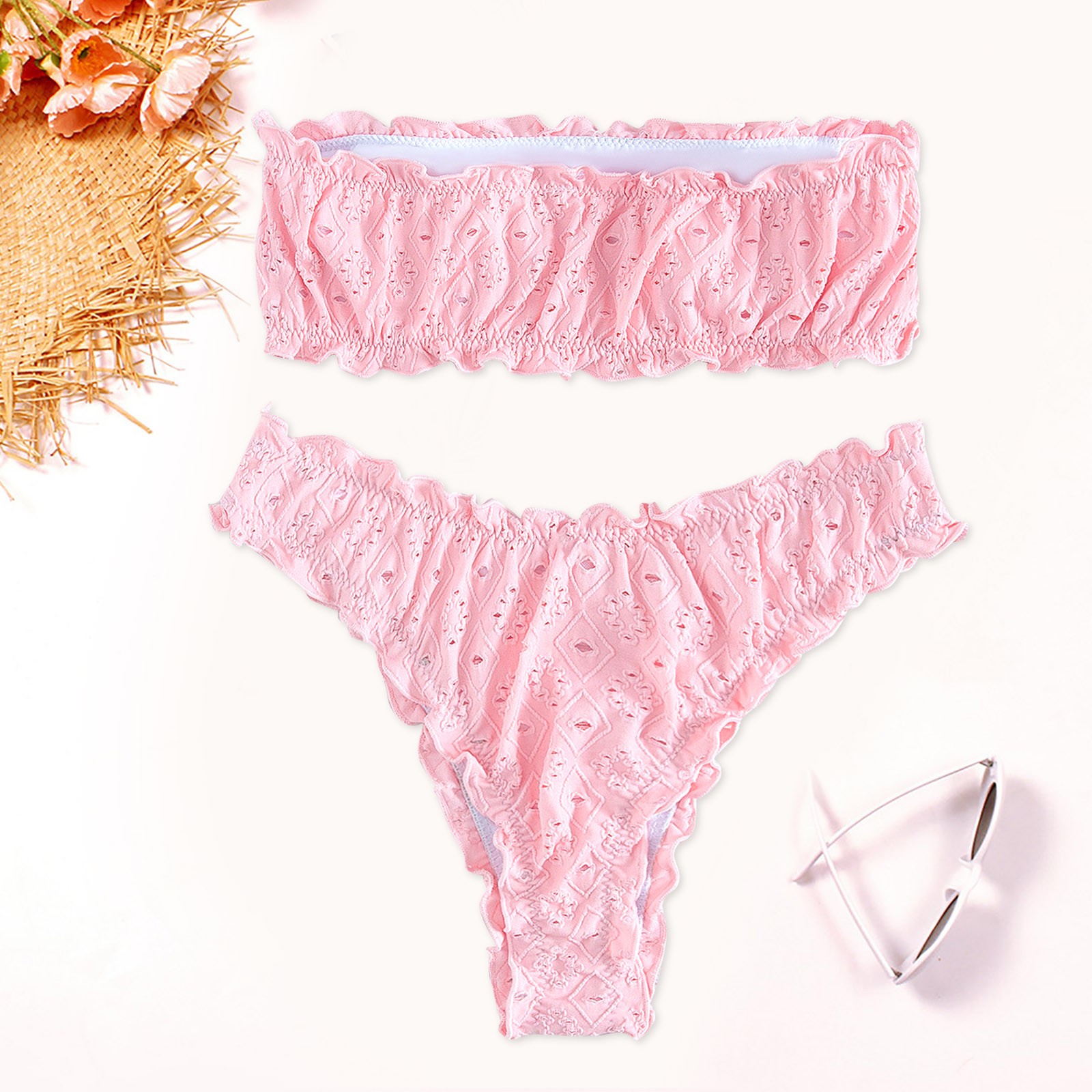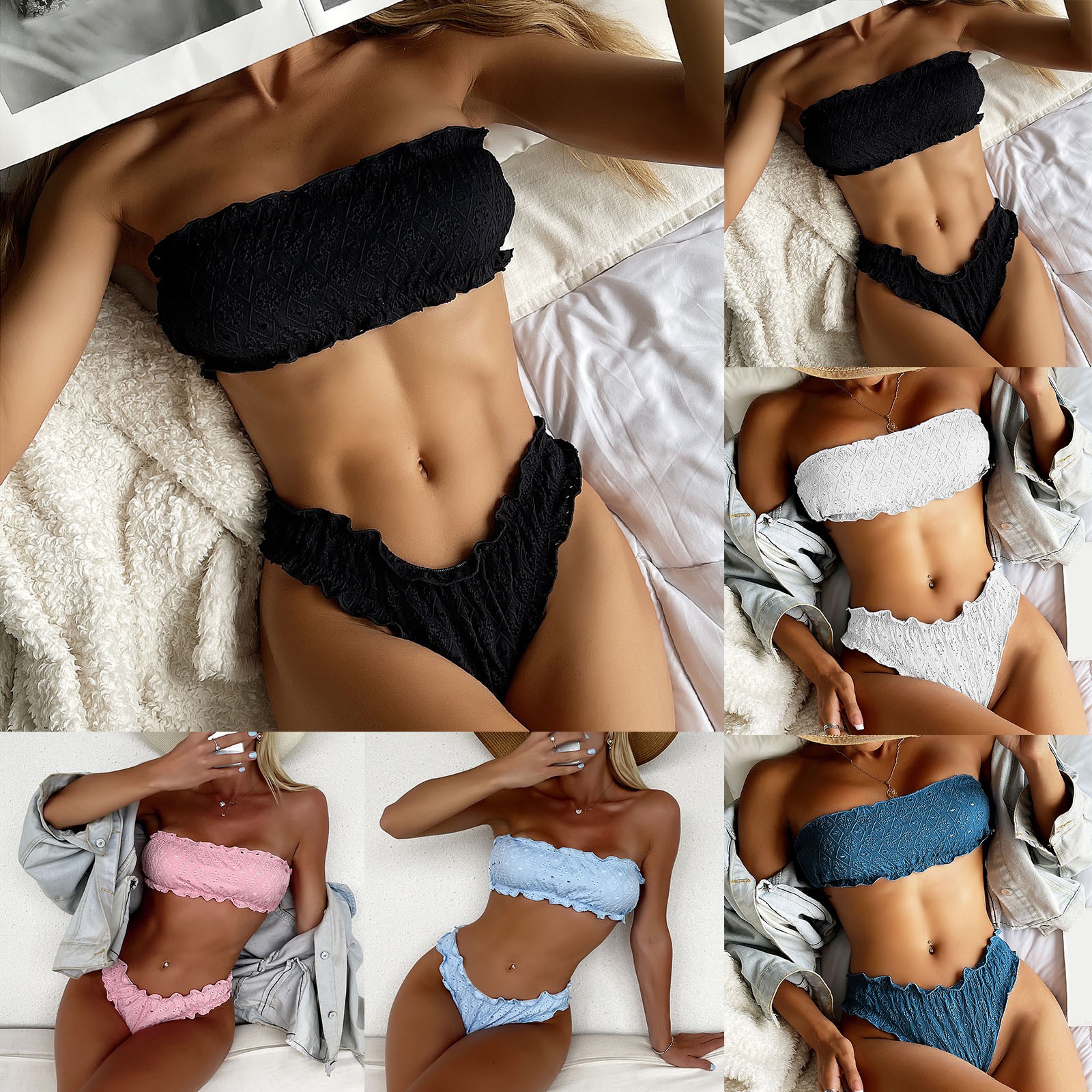 NOTE: Please compare the detail sizes with yours before you buy!!! Use similar clothing to compare with the size Features: 1.Sexy and elegant fashion integration, soft and comfortable good fabric 2.Fashion sexy fashion swimsuit, wearing a mysterious figure. 3.Every day a beautiful beach, I believe you will like it! 4.High quality internal fabric, Personal dismantling Item specifics Gender: Women Season: Summer Occasion: Daily,Swimming pool ,Sea Material: Polyester Clothing Length: Regular Pattern Type:Solid color Style: Sexy,Causal Package include: 1Set Swimwear (Containing Chest Pad) Note:Sexy Bandeau Solid Swimsuit Female Ruffles Beachwear Two-pieces Bather Bathing Suit High Cut Swimwear Biquini
