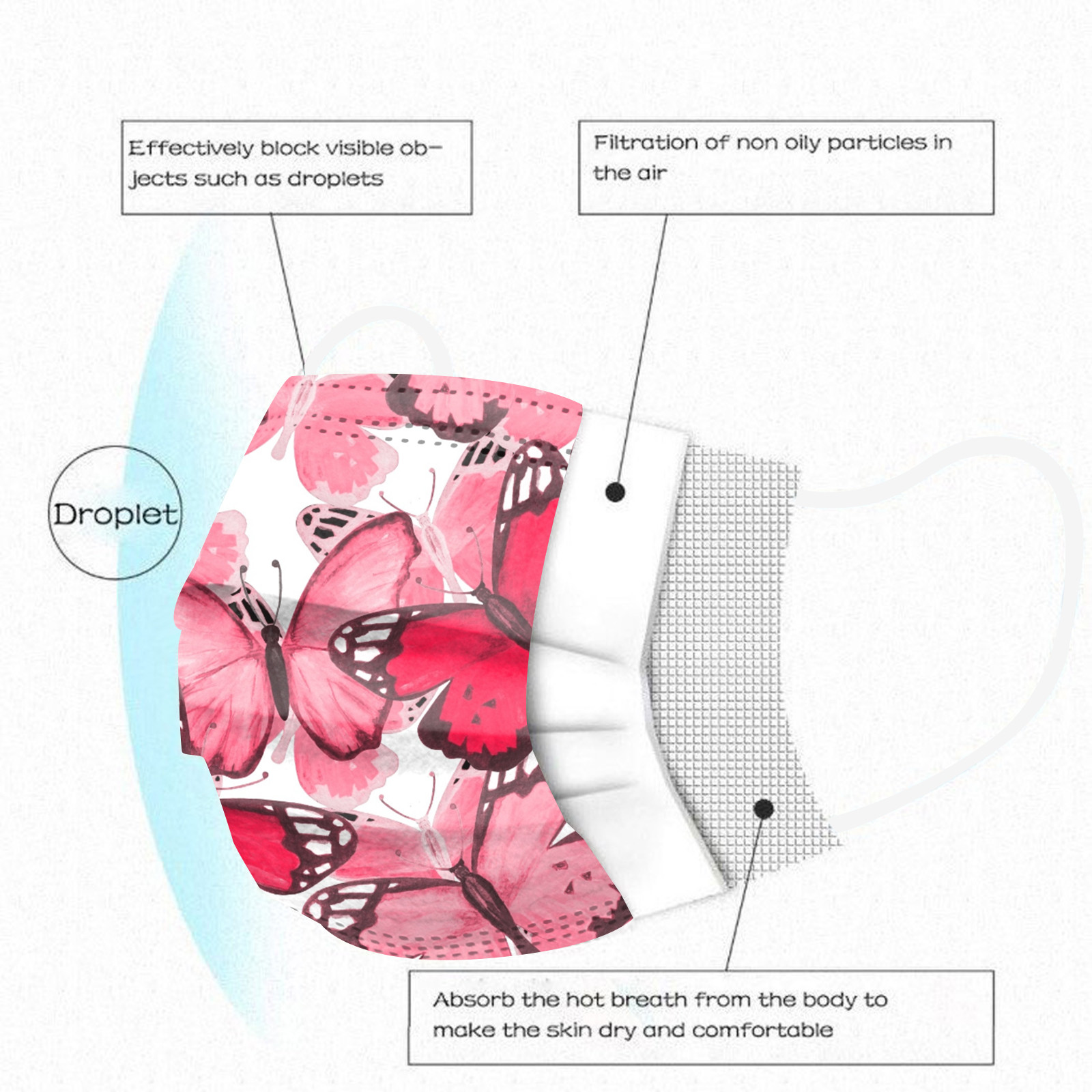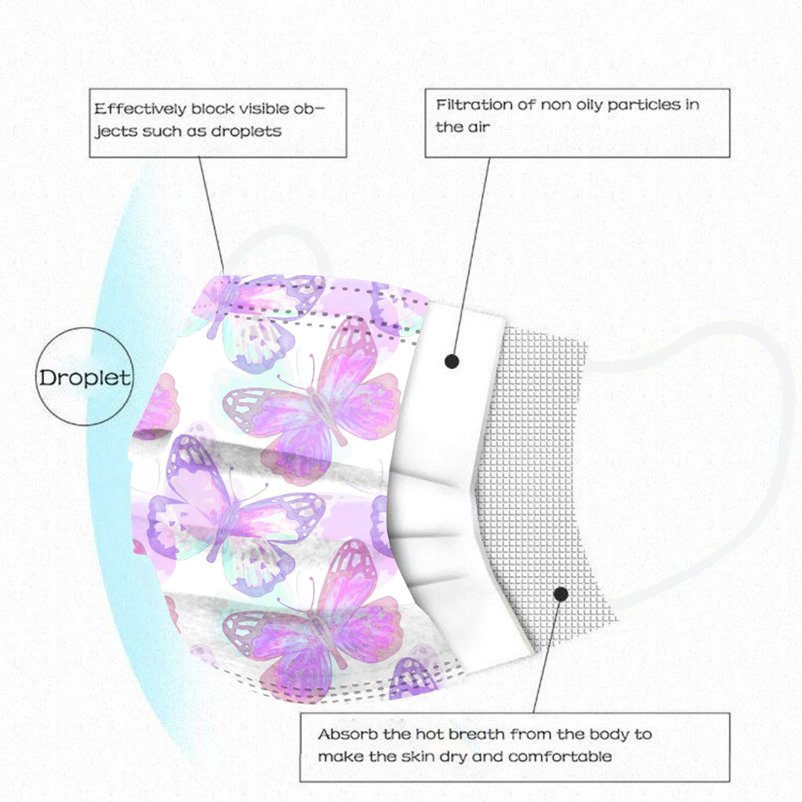 3 слоя Нетканая одноразовая маска изготовлена из 3 слоев из нетканого материала с кружевного материала, он безопасен для здоровья и безопасный для вас, чтобы использовать. Дышащий материал и милые узоры, что делает его полезным и модным. Специальный 3 слоя из нетканого материала, дизайн, обеспечивает некоторые защита от автомобильный отходящий газ, пыльцу и т. Д. Эластичная петля уха позволяет легко снимать и надевать цепочку и не давит на уши. Маникюрный салон или любые другие области, где может потребоваться защита, кружево маски не позиционируется, и узор будет немного отличаться