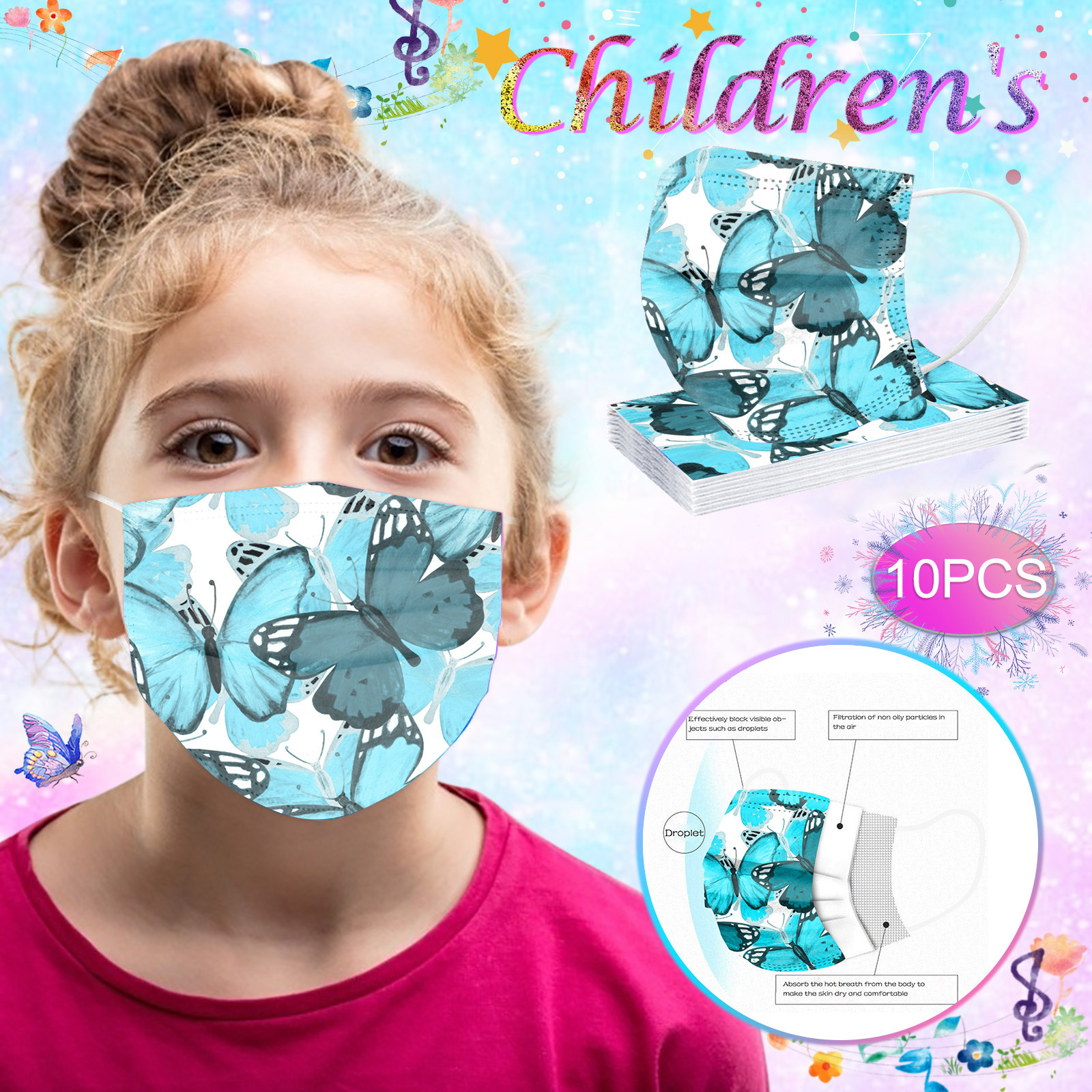 10 шт Детский галстук-крашеный одноразовый защитный промышленный три слойная маска для лица