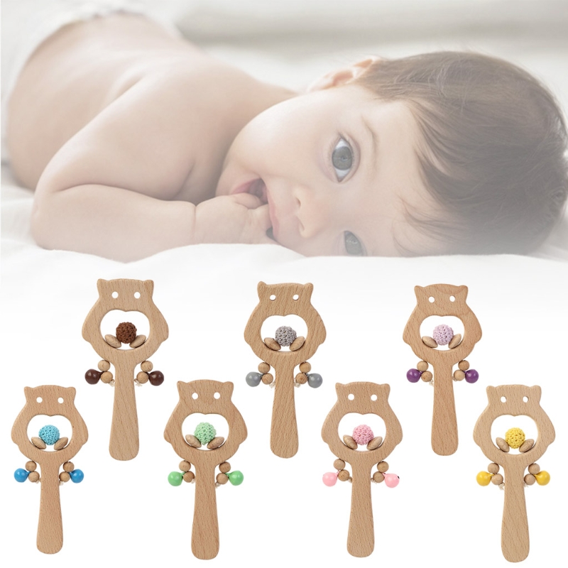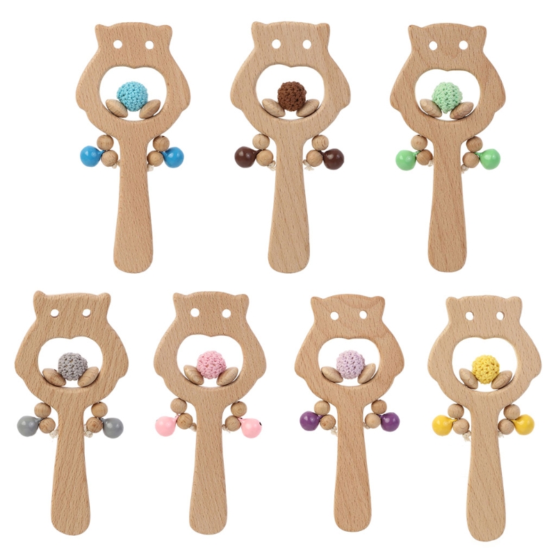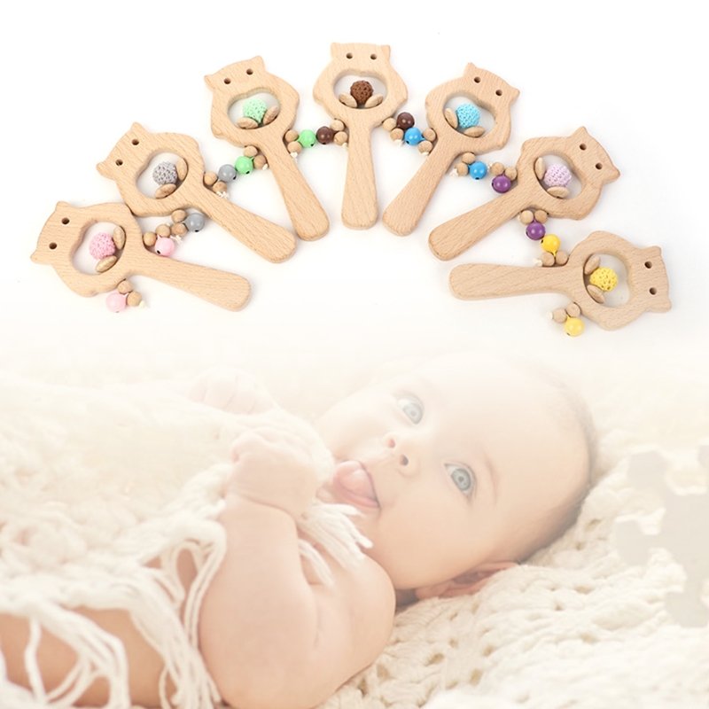 Детская буковая Сова погремушка ручной Прорезыватель деревянное кольцо Младенцы уход Прорезыватель пустышка Монтессори обучающая игрушка для новорожденных