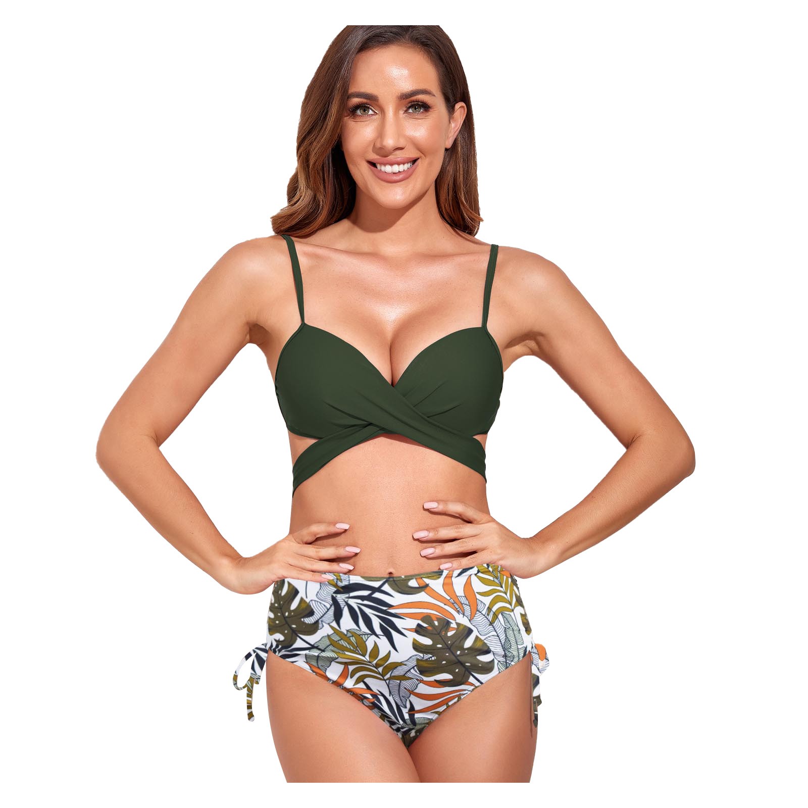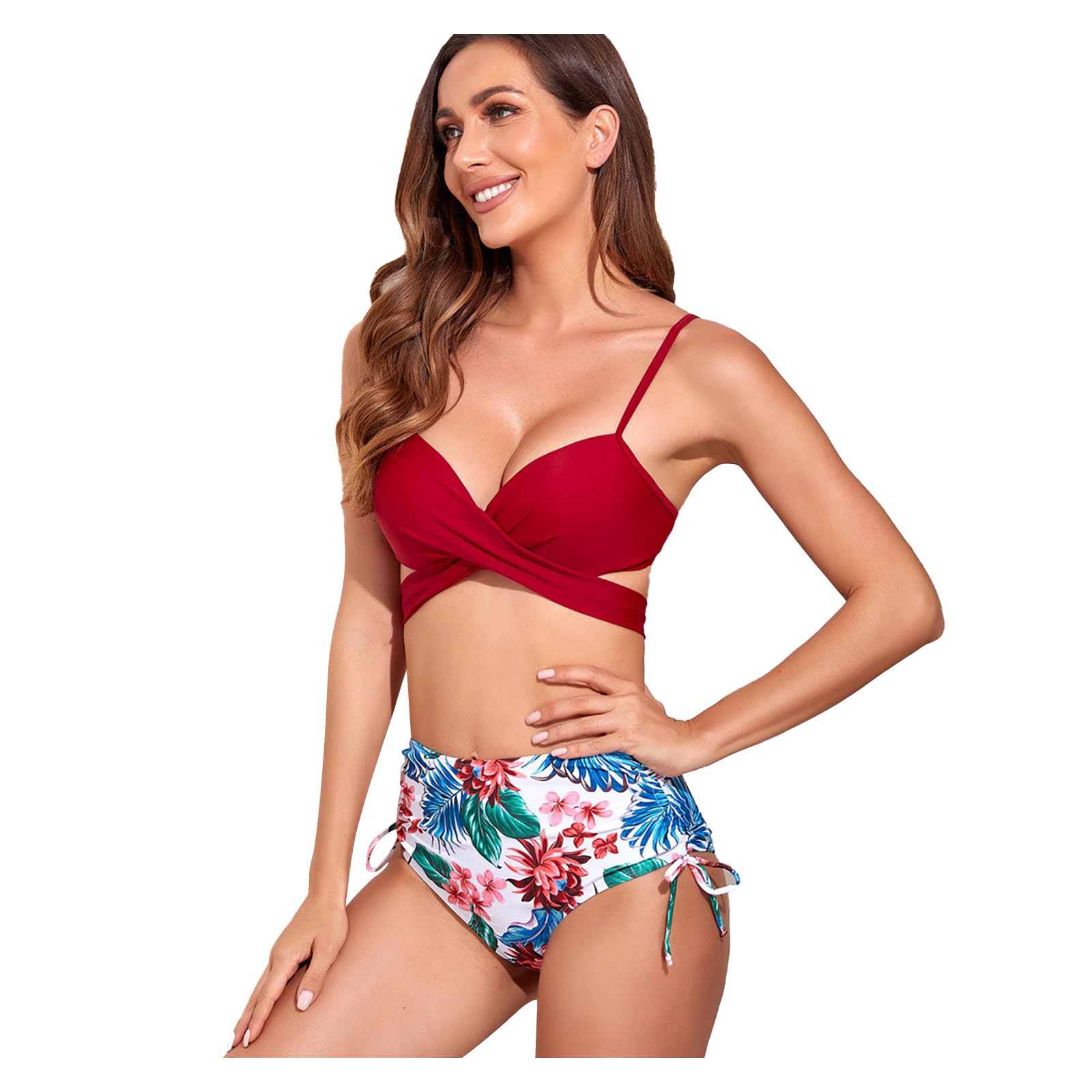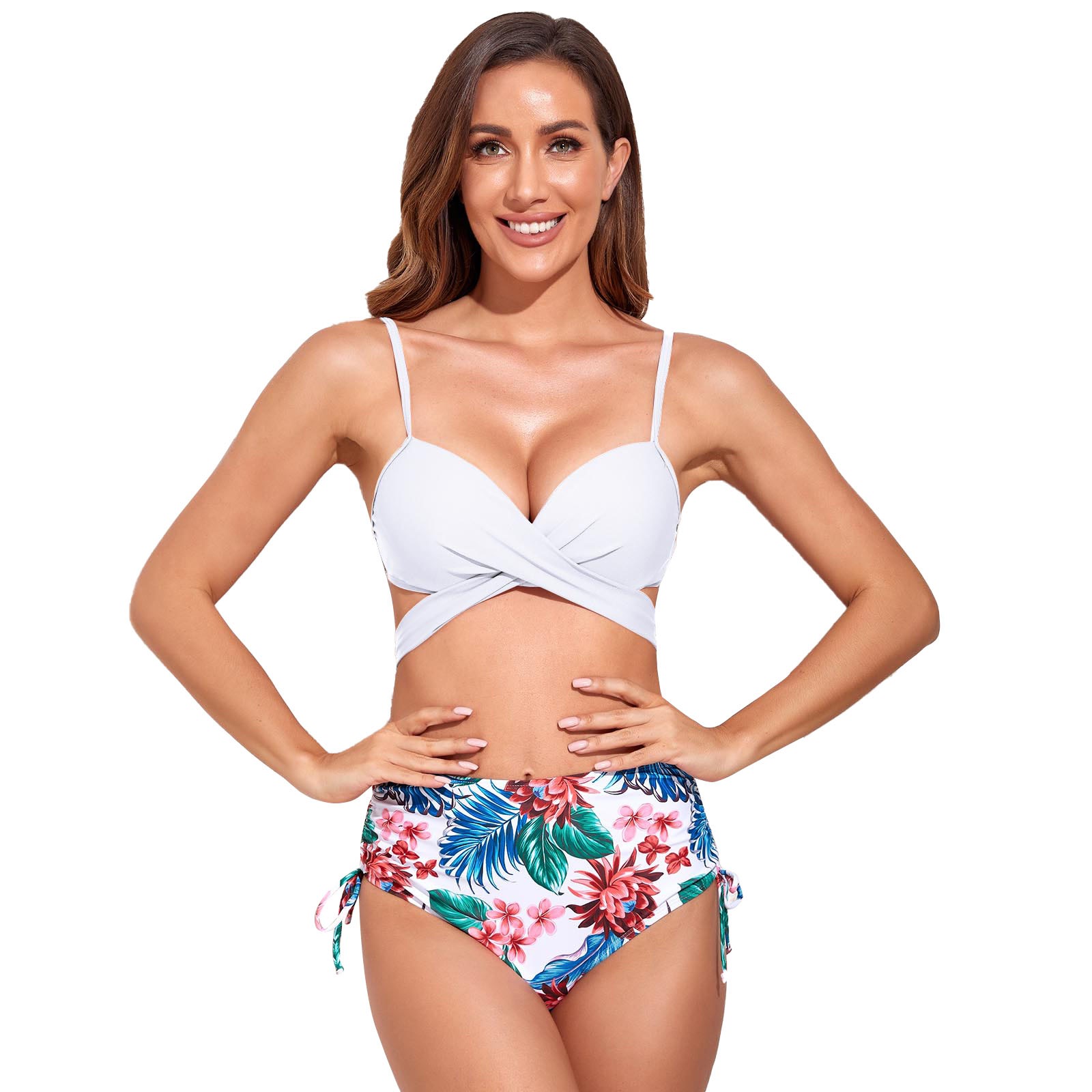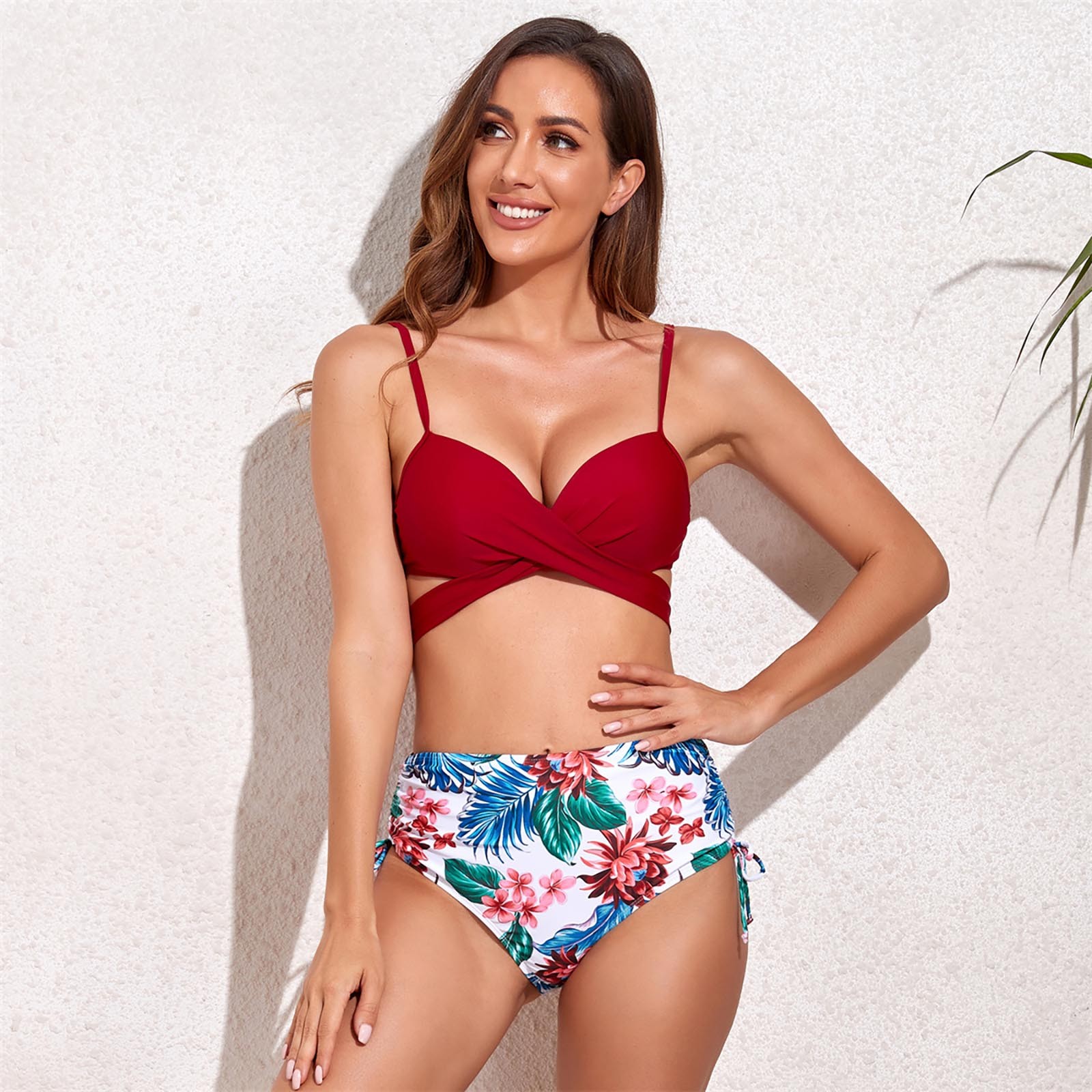Women's Split Swimsuit Print Sexy High Waist Beach Bikini Swimwear