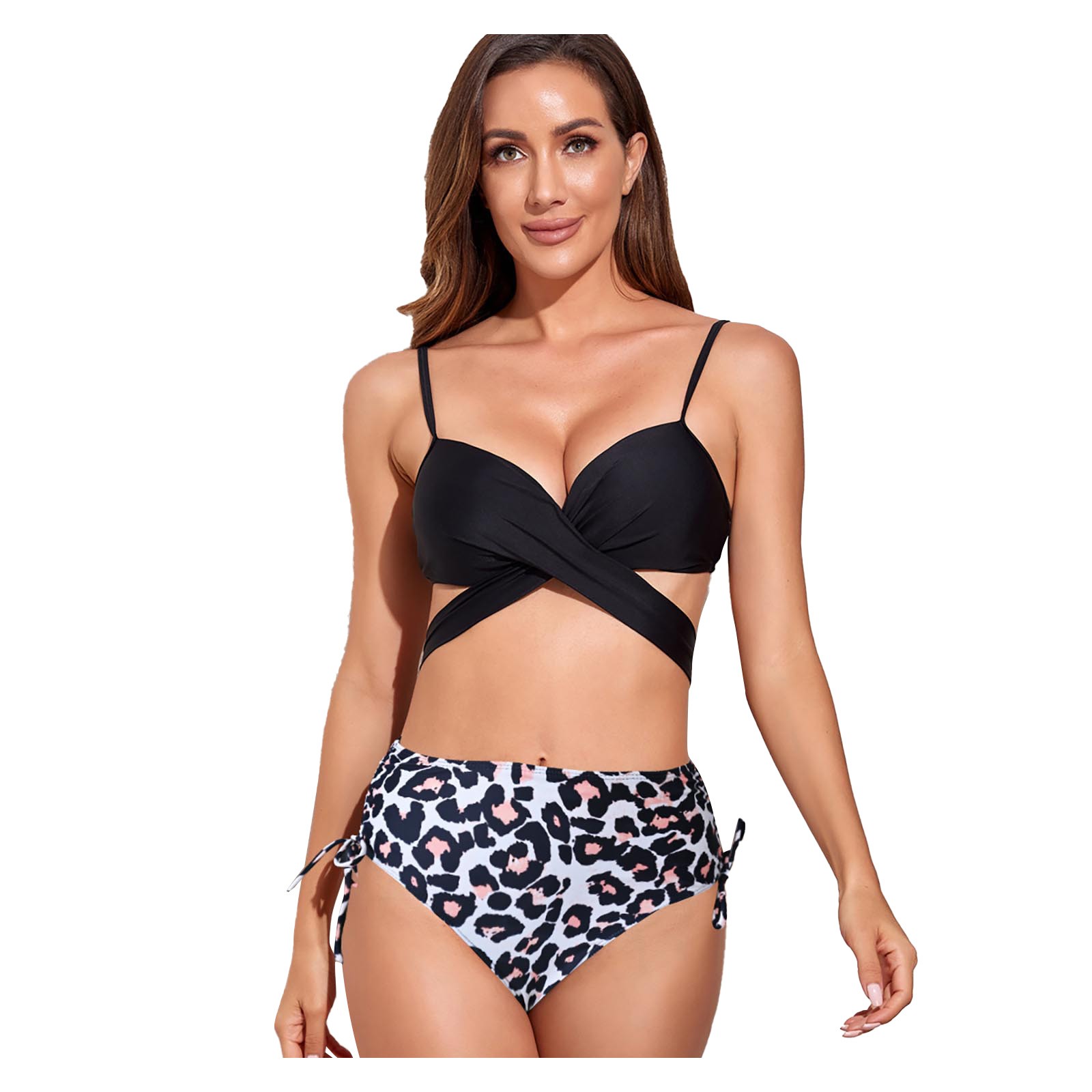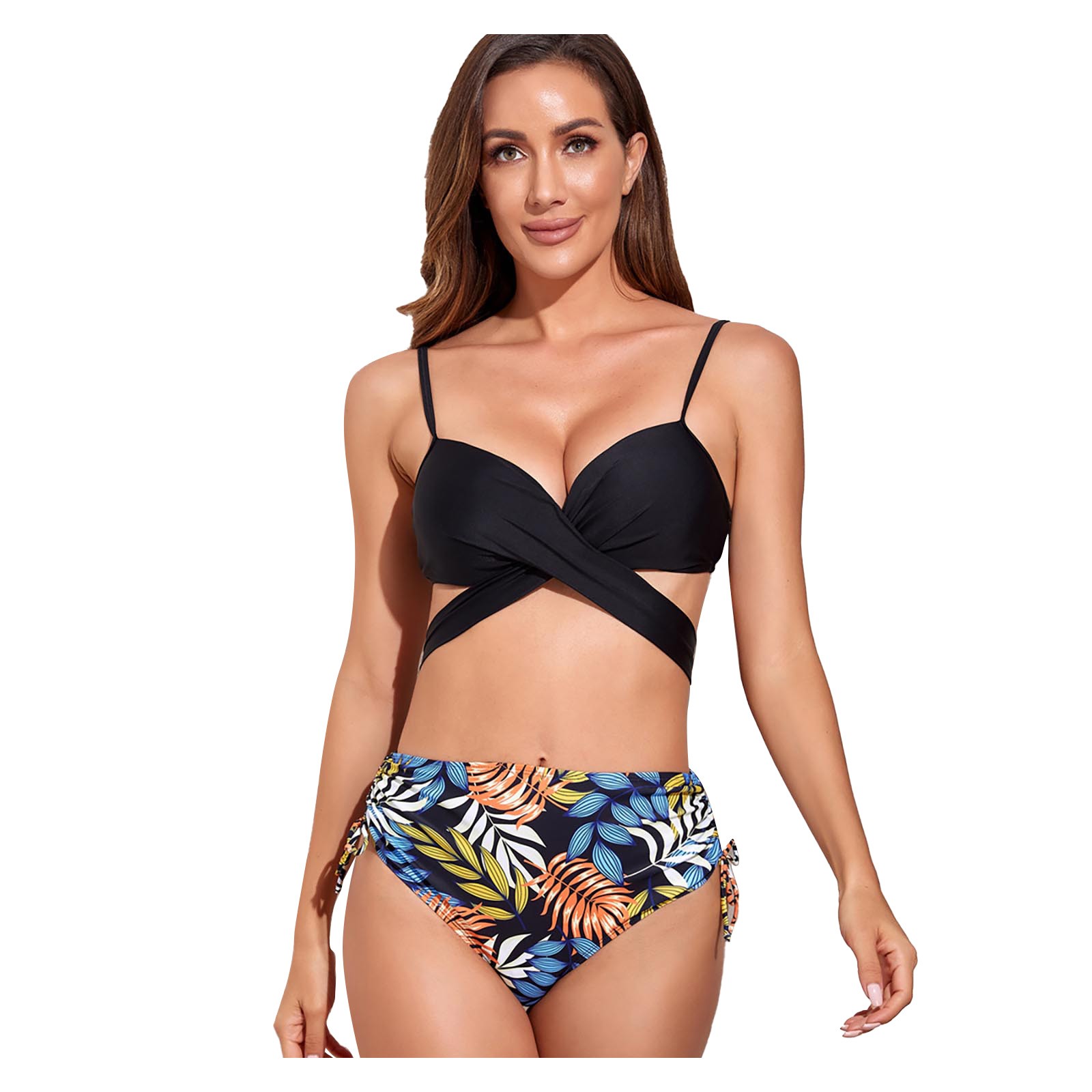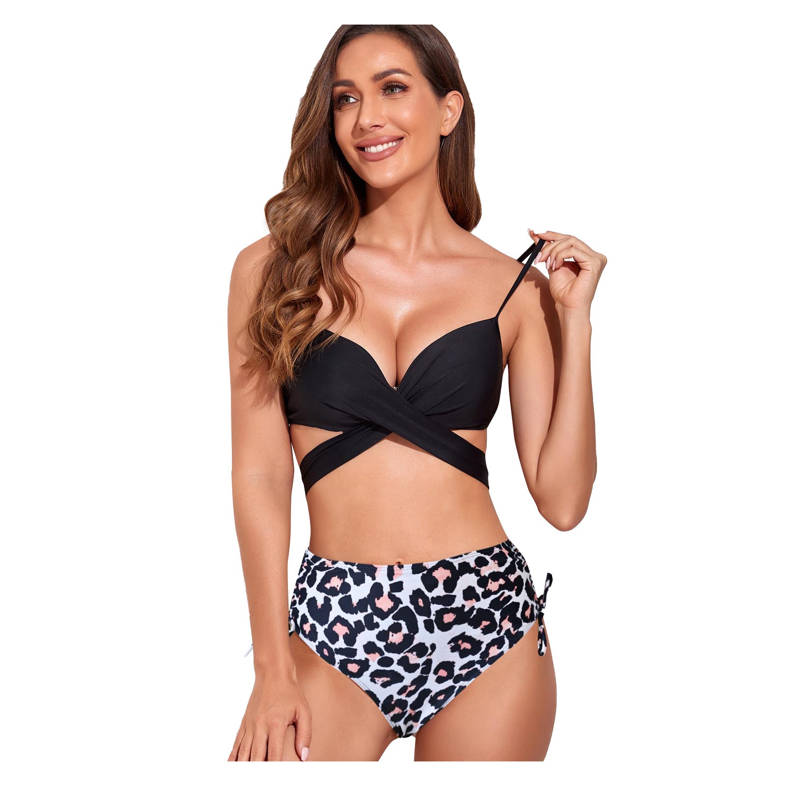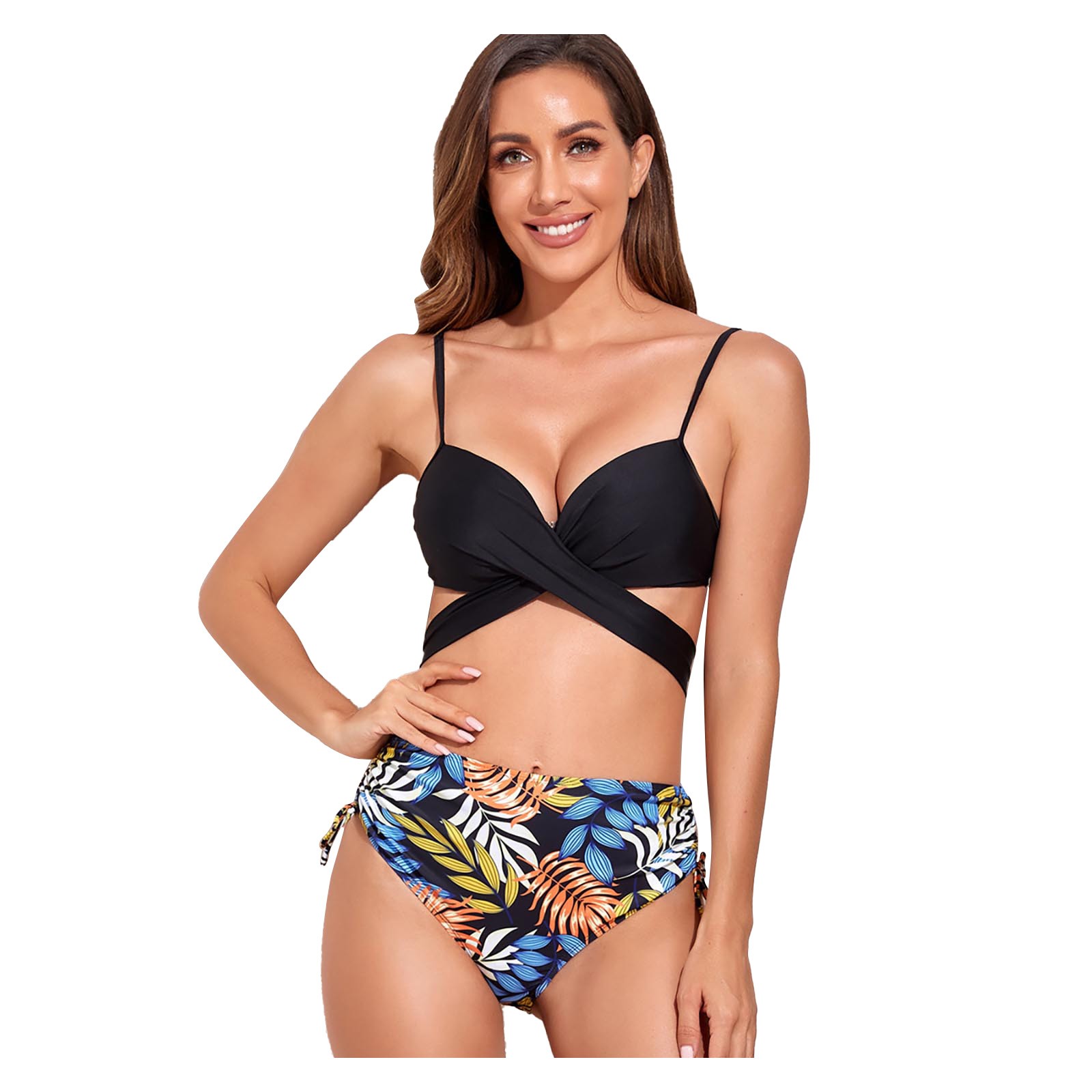 Women's Split Swimsuit Print Sexy High Waist Beach Bikini Swimwear