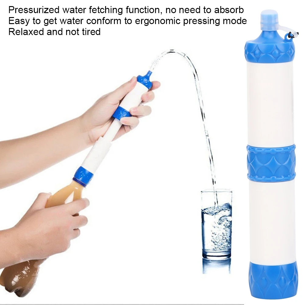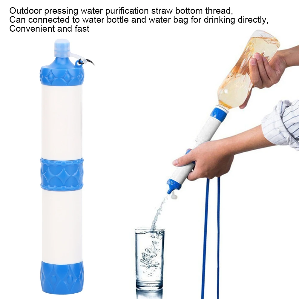 1. Outdoor pressing water purification straw bottom thread, can connected to water bottle and water bag for drinking directly, convenient and fast.