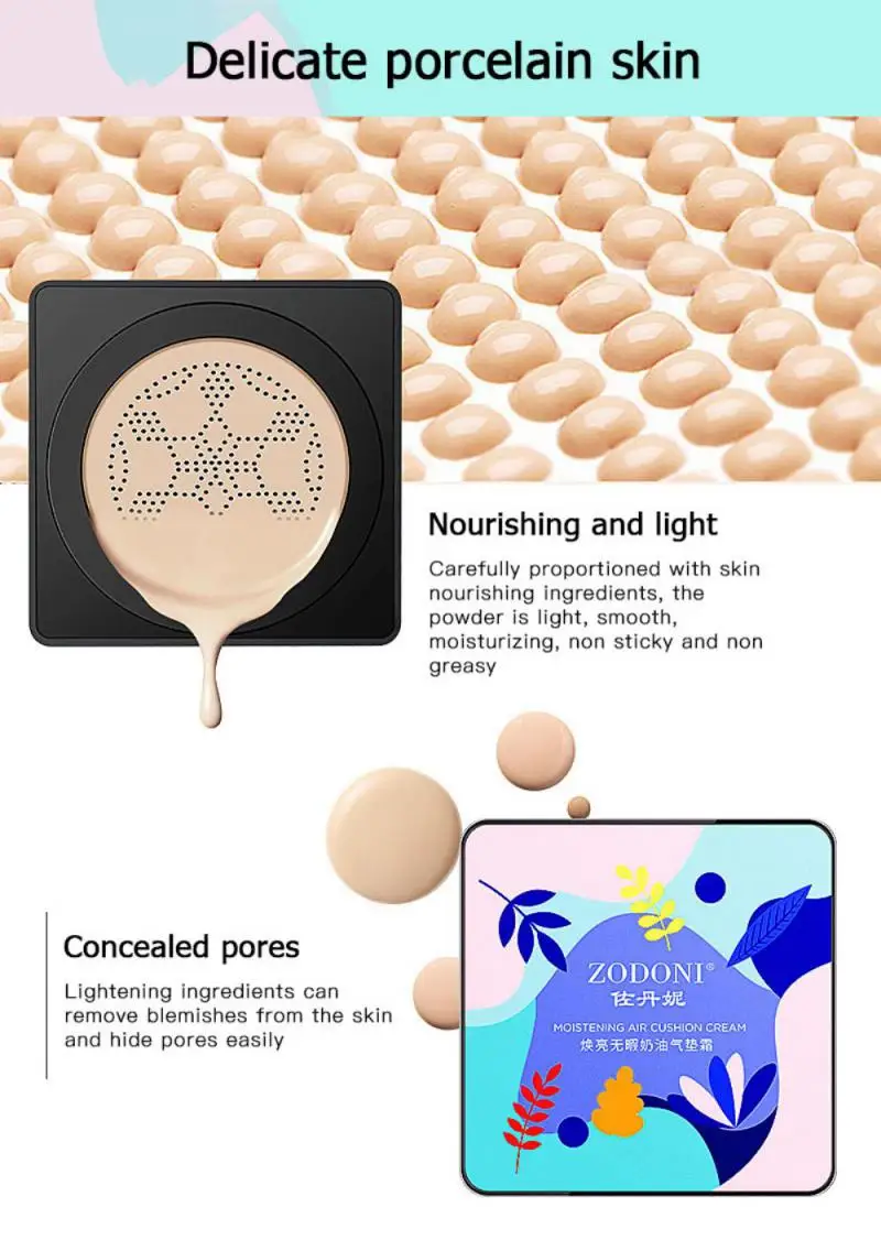 1. Крем BB с воздушной подушкой-это комбинация тонального крема, крема BB и консилера, который обеспечивает гладкий внешний вид с полным покрытием, но легкий.