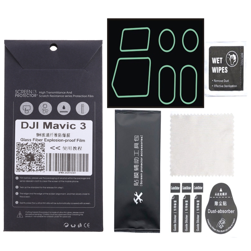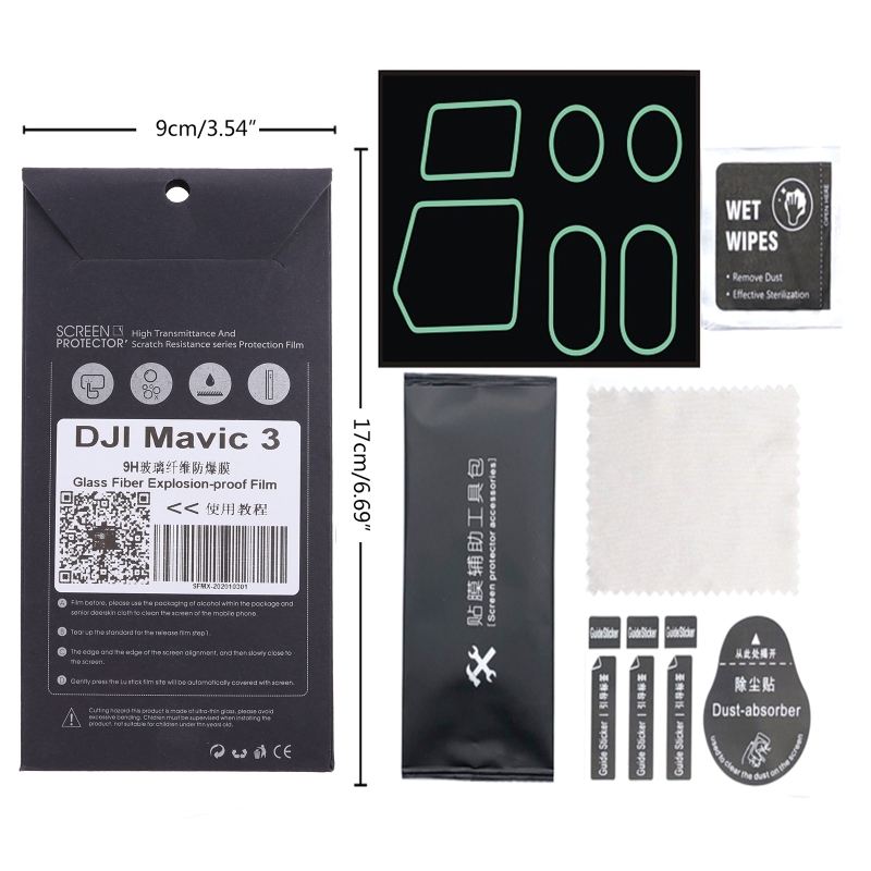 1 комплект Защитная пленка для объектива Защитная пленка для экрана из закаленного стекла с влажной салфеткой и пылепоглотителем и направляющей наклейкой для dji Mavic 3
