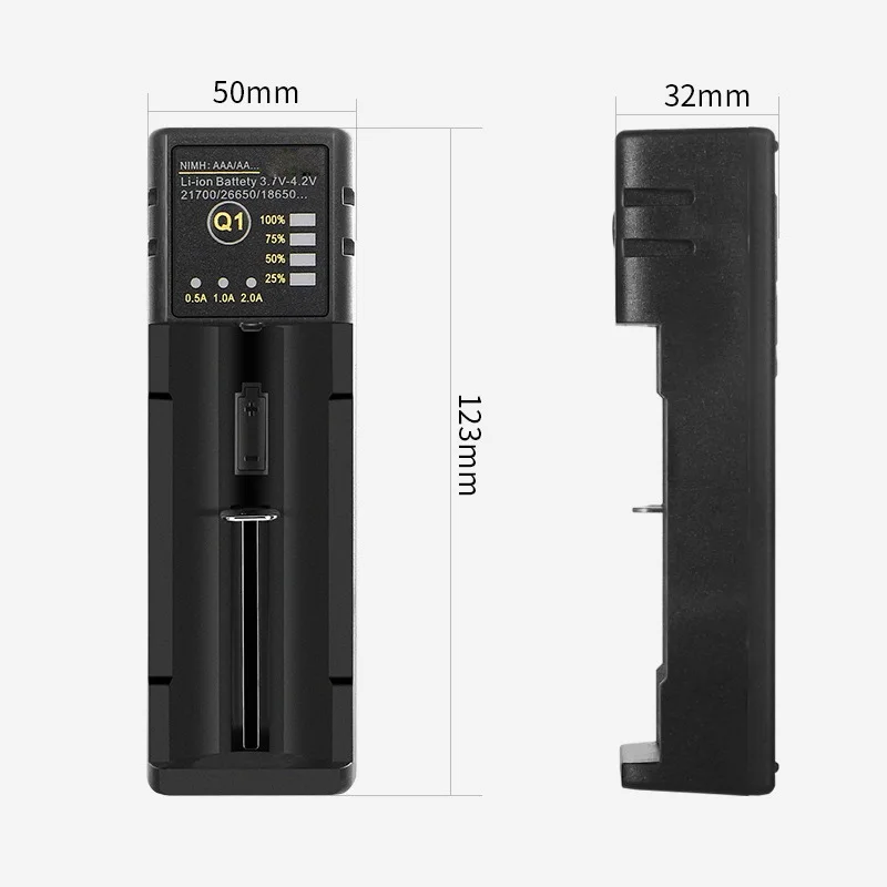 USB Smart Charger 18650 Battery Charger for 18350 18490 18650 21700 22650 26650 AAA AA A SC Li-ion Ni-MH Ni-CD Smart Charger<;;br/>Specification:<;;br/>Input: 5V 2A<;;br/>Suitable for Ni-MH/Ni-Cd/lithium batteries<;;br/>Apply to:<;;br/>3.6V/3.7V Li-ion:<;;br/>10400/14500/14650/16340(RCR123)/18350/18500/18490/18650/20700/21700/22650/26650/26700<;;br/>1.2V Ni-MH/Ni-CD:<;;br/>AAAA/AAA/AA/A/SC/C/F6<;;br/>Note:<;;br/>Please allow 1-3mm differs due to manual measurement.<;;br/>Battery is not included.<;;br/>Package include:<;;br/>1 X Battery Charger<;;br/>1 X USB Cable<;;br/>1 X User Manual