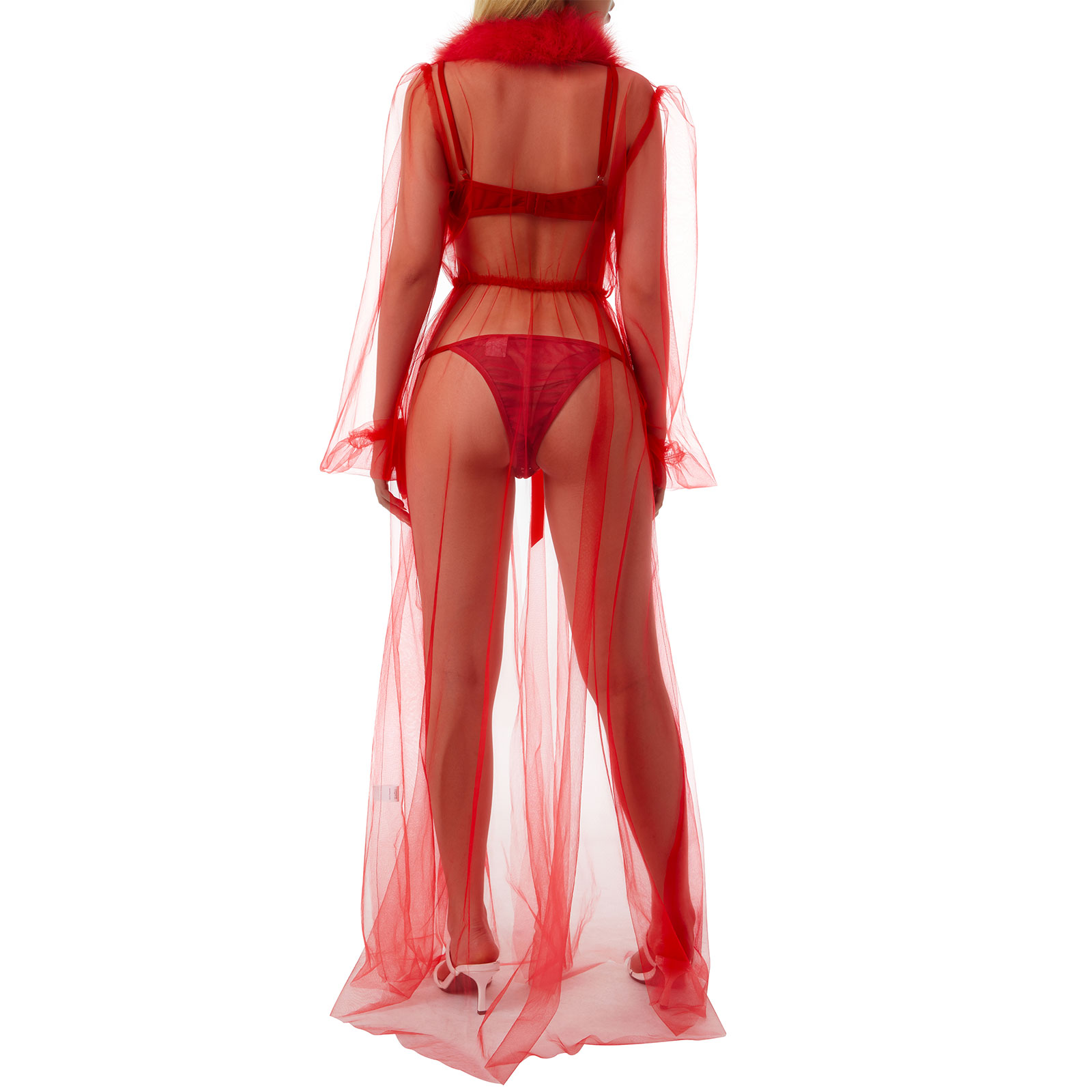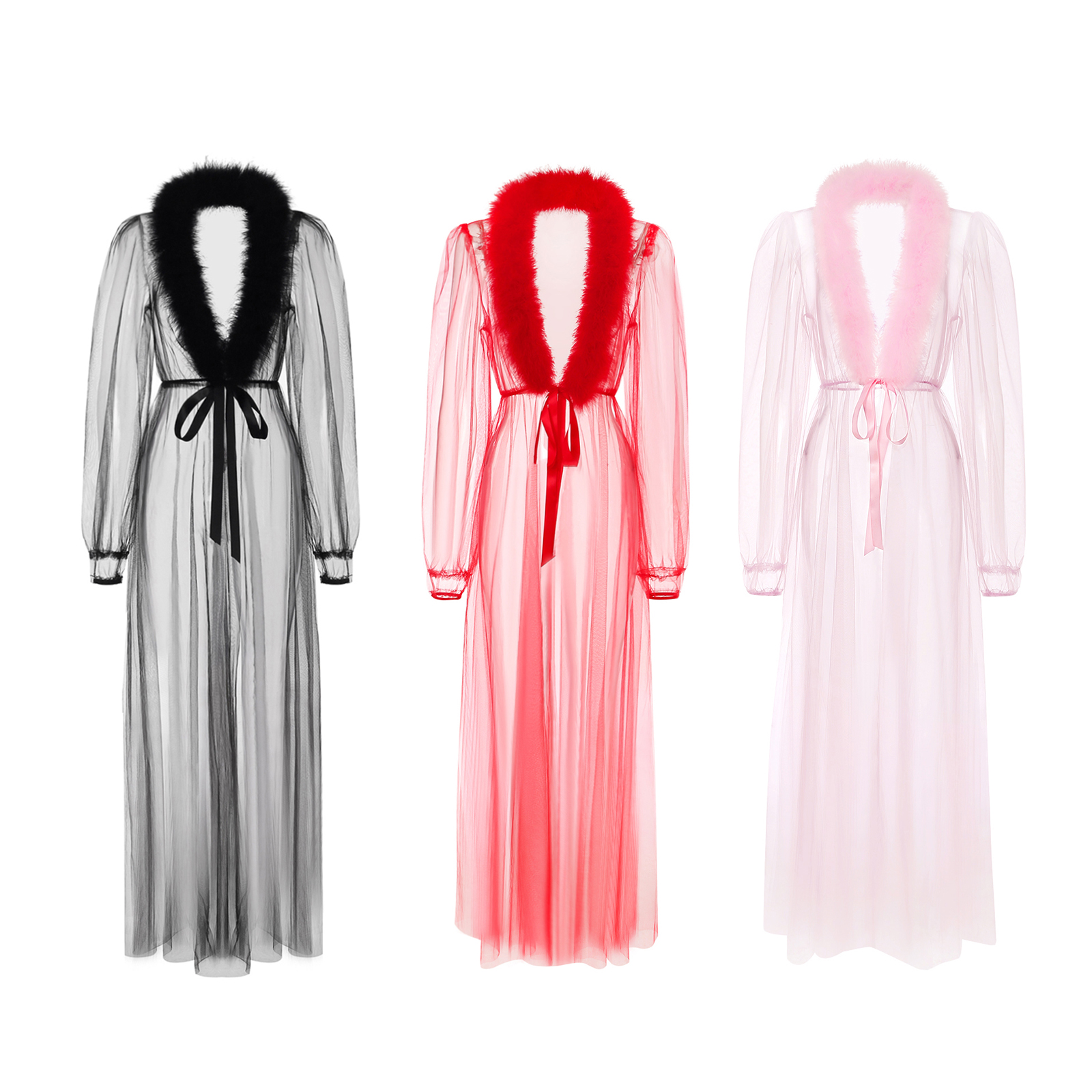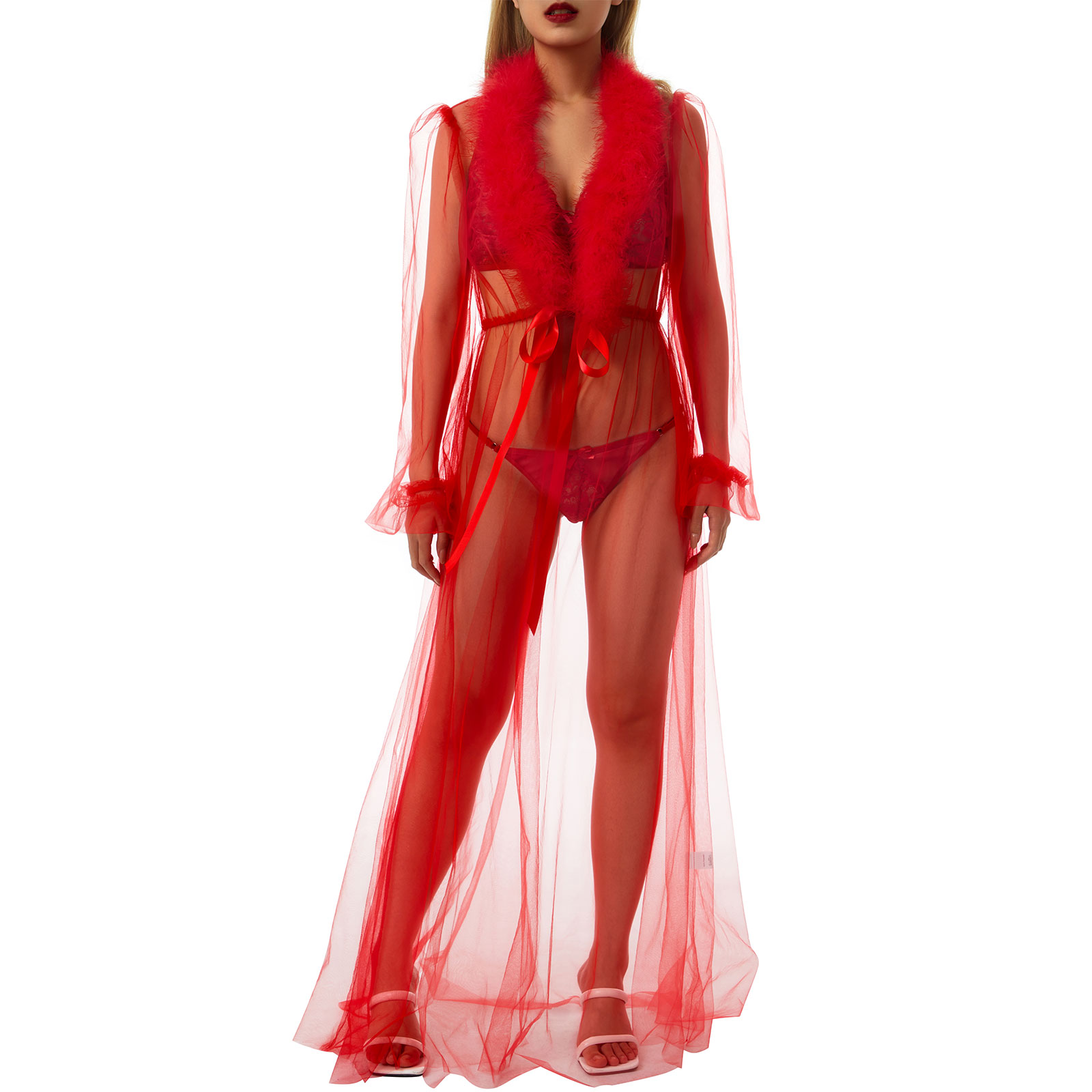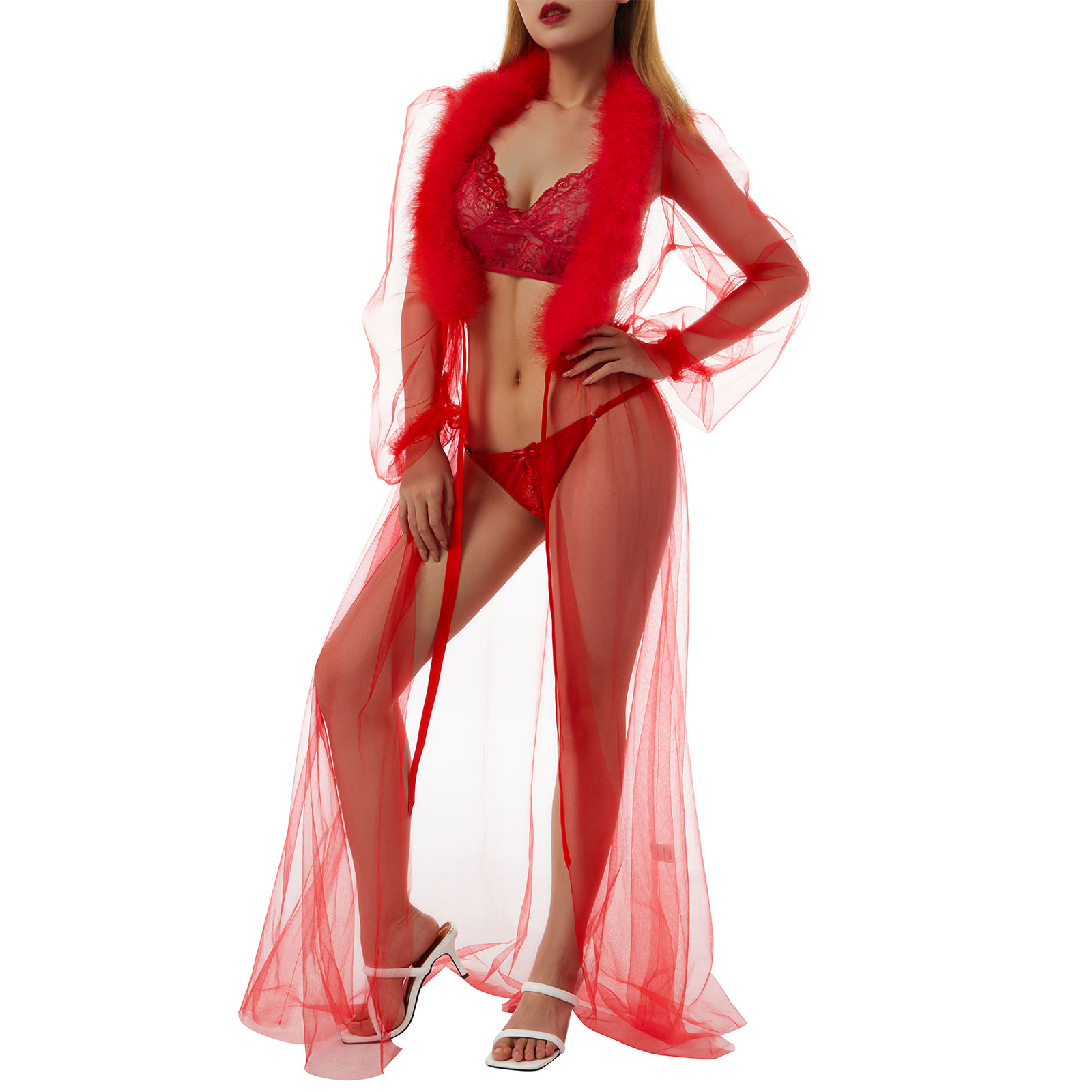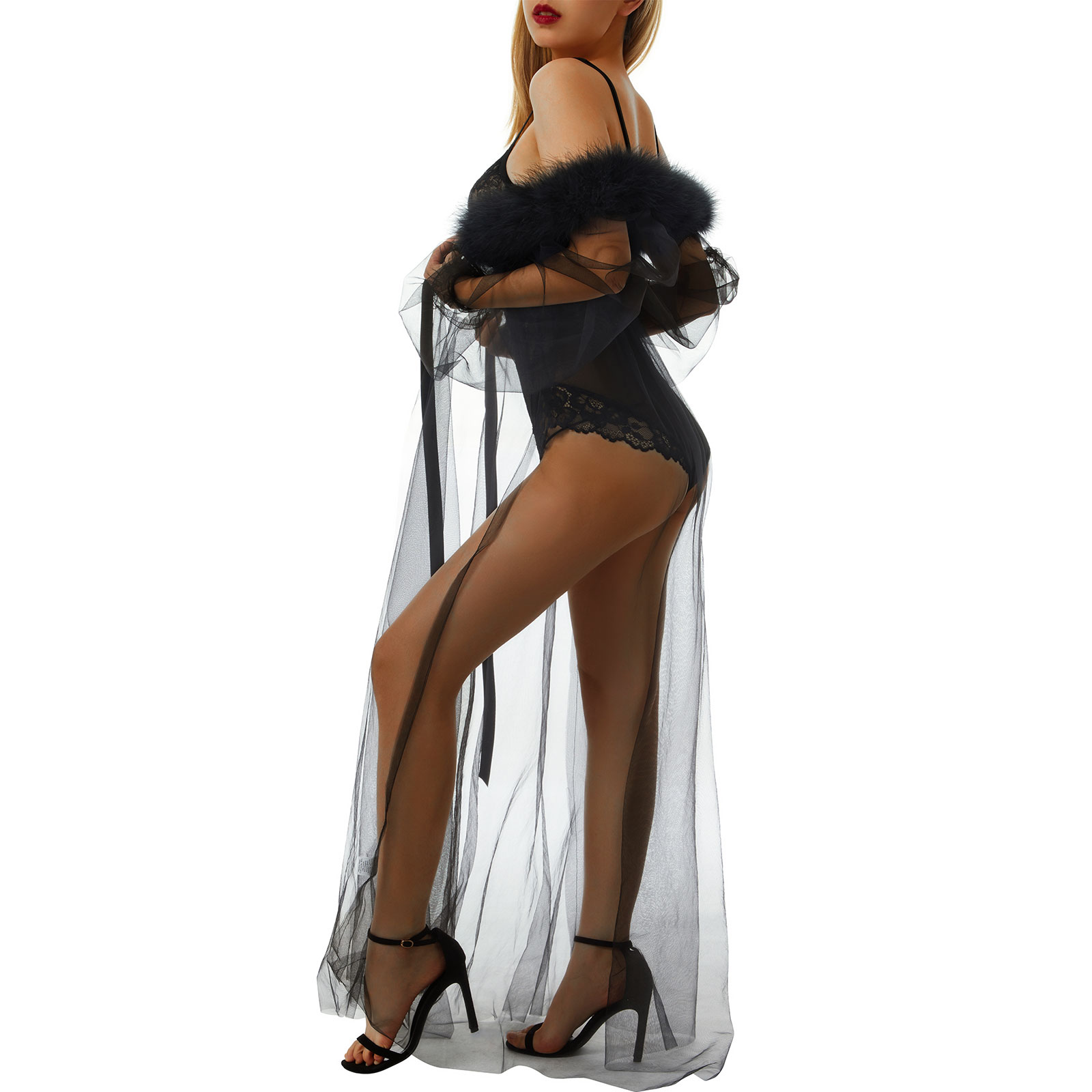 Женские сексуальные халаты, пушистое лоскутное Сетчатое прозрачное длинное платье с длинным рукавом и завязками на талии, подарок для жены, подруги