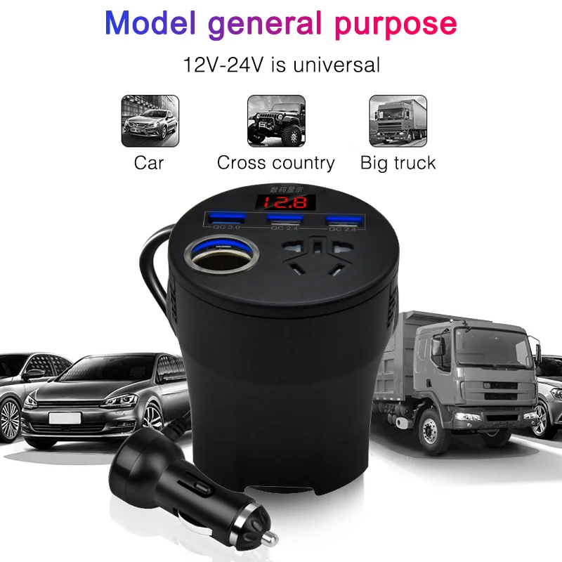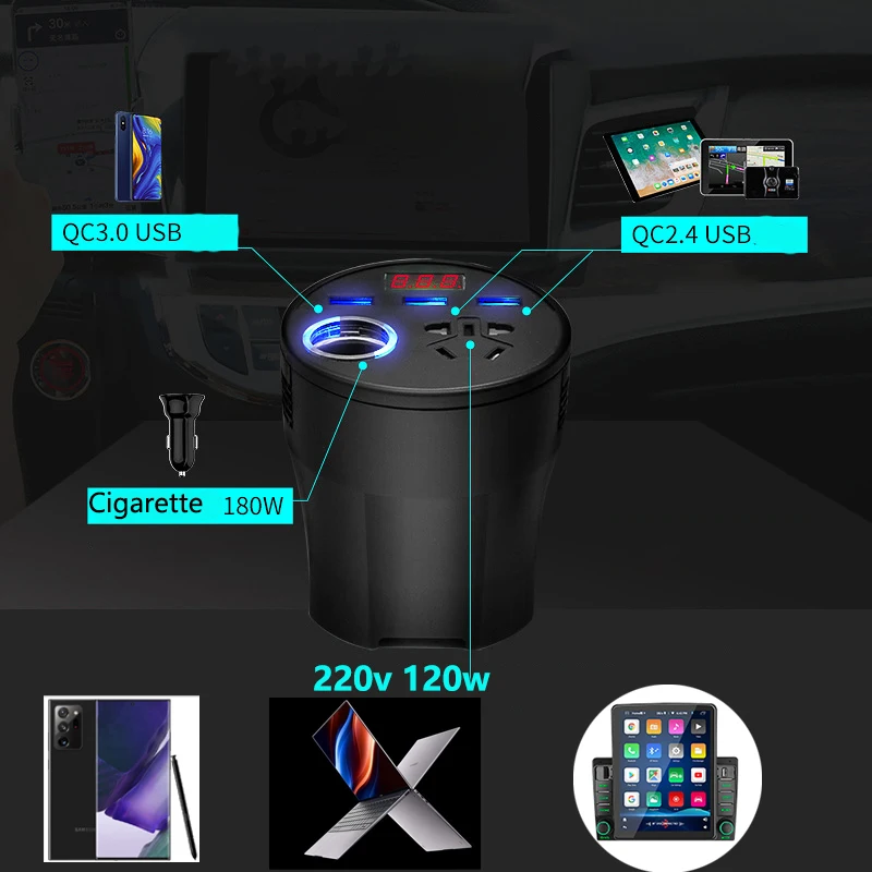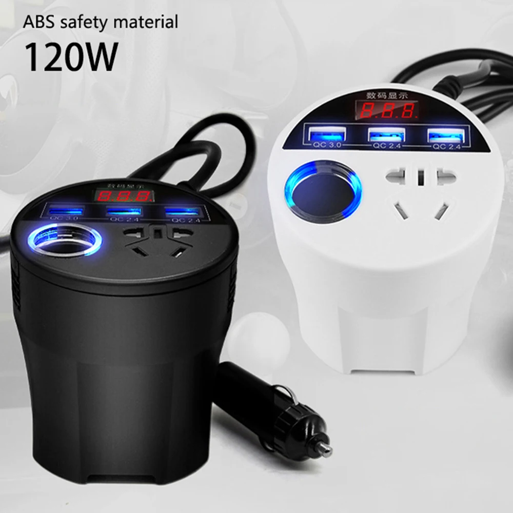 Car Power Inverter 24V 12v 220v 120W Led Display 3 USB Cigarette Lighter QC3.0 Fast Charging Inversor New Smart Voltage Monitor