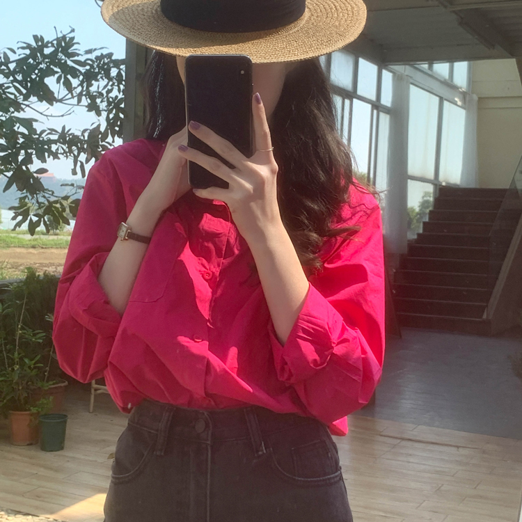 6Candy цвета рубашка корейский стиль с длинным рукавом блузки 2022 Весна Осень Женские Карманы топы и блузки Верхняя одежда Топы
