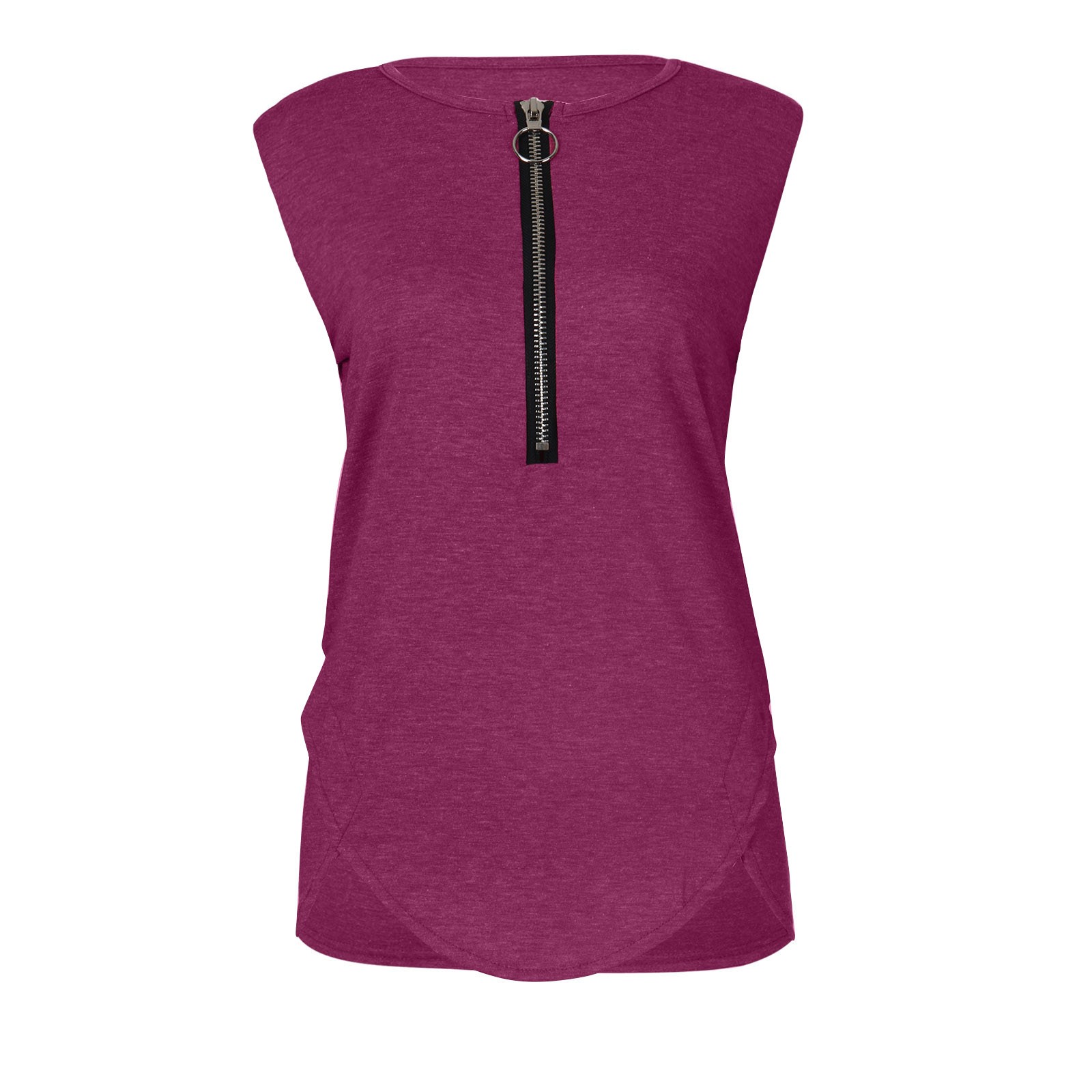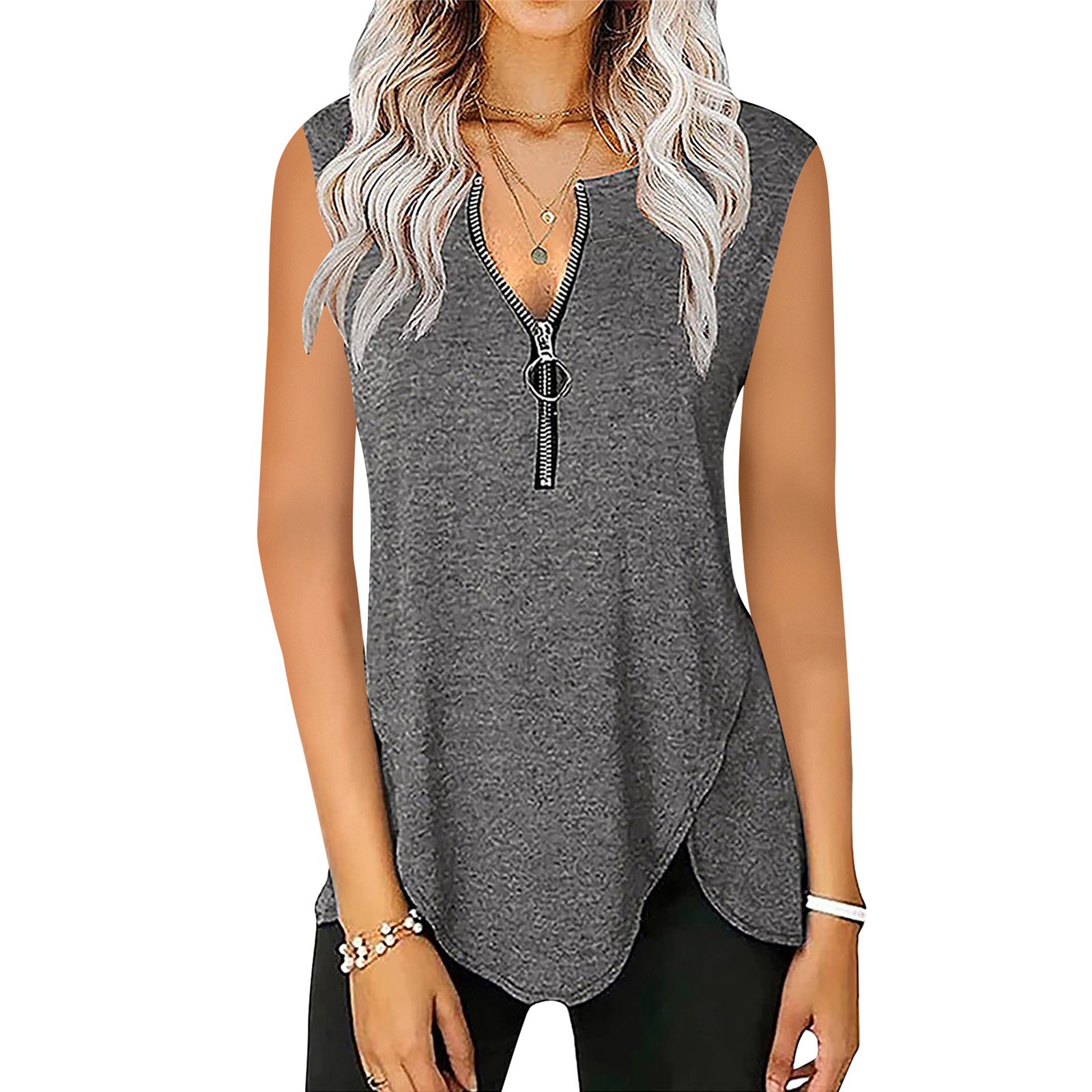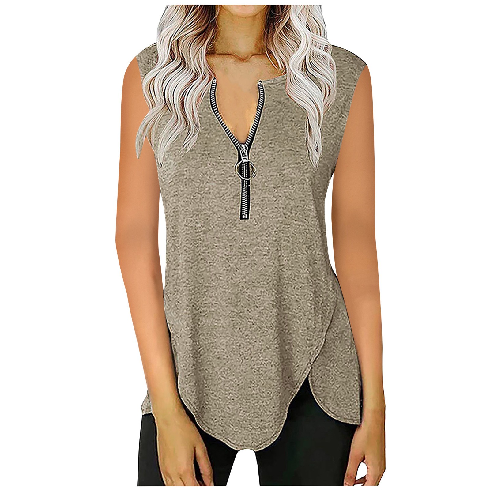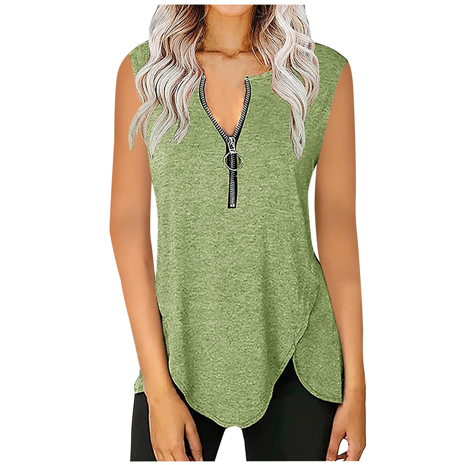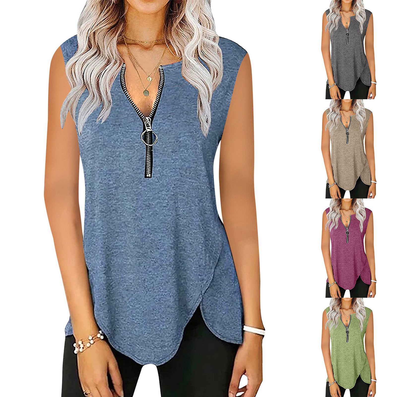 Женская летняя рубашка на молнии, повседневный Однотонный свитер без рукавов, свободная рубашка, Топ