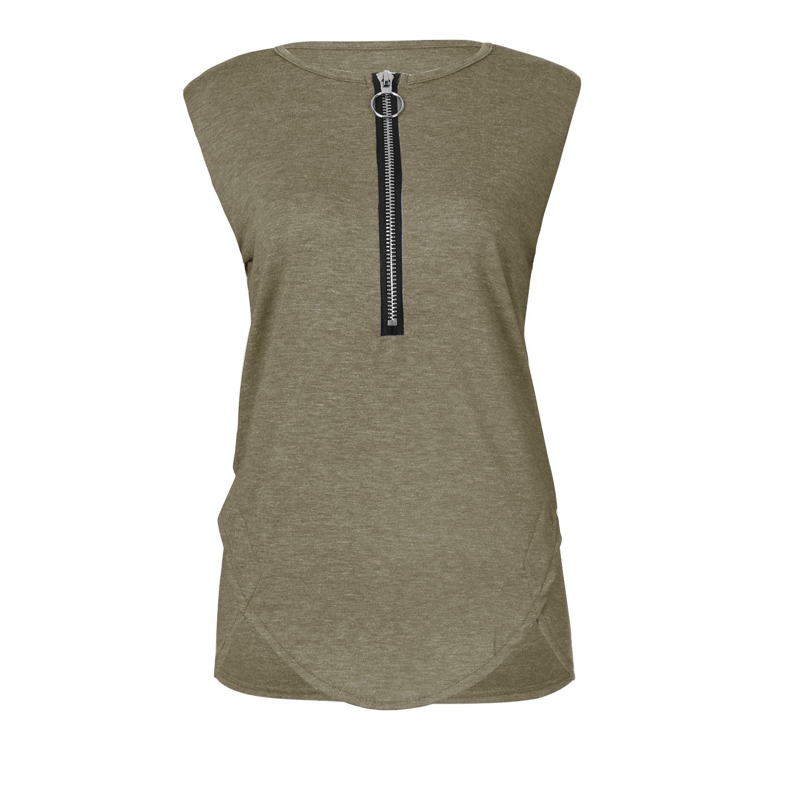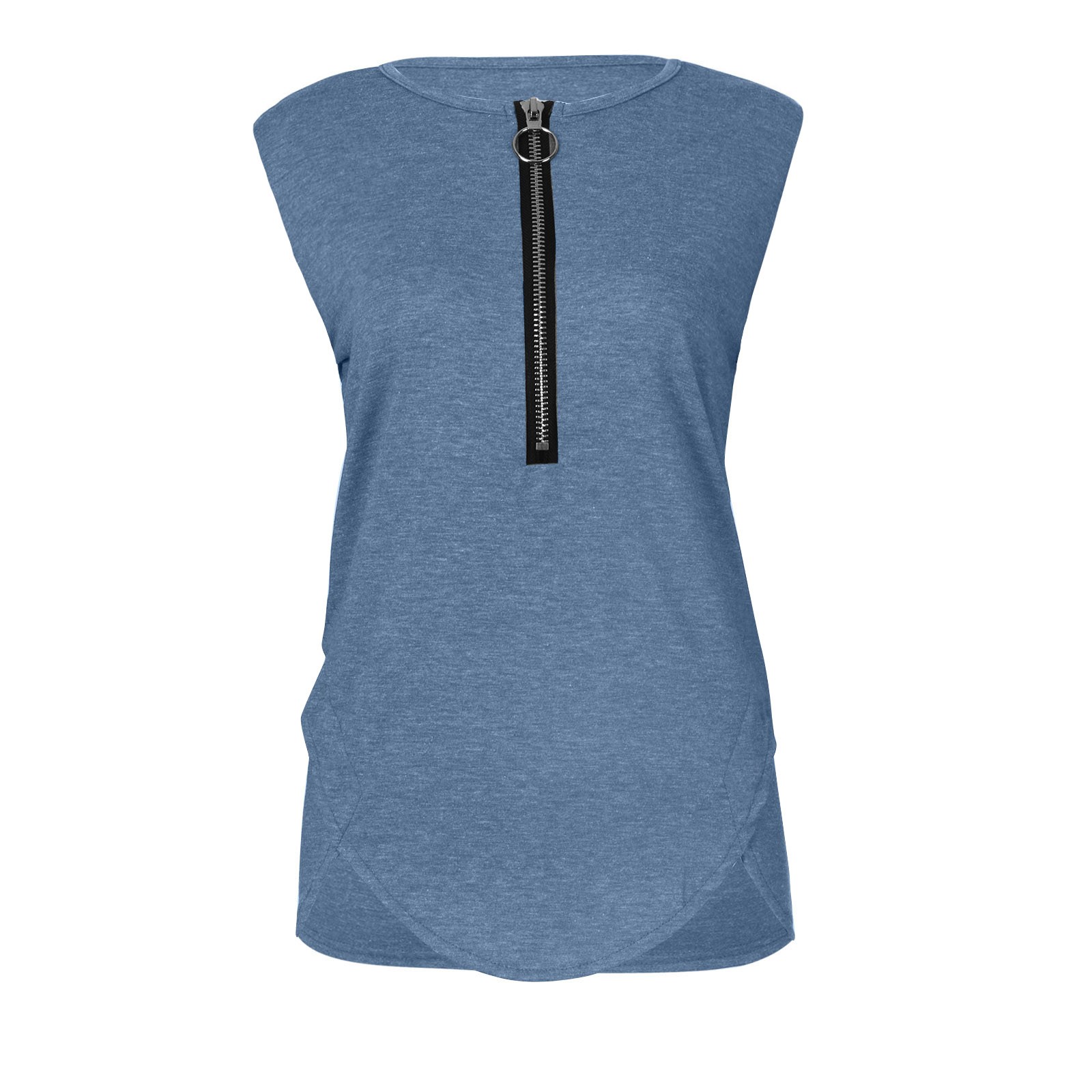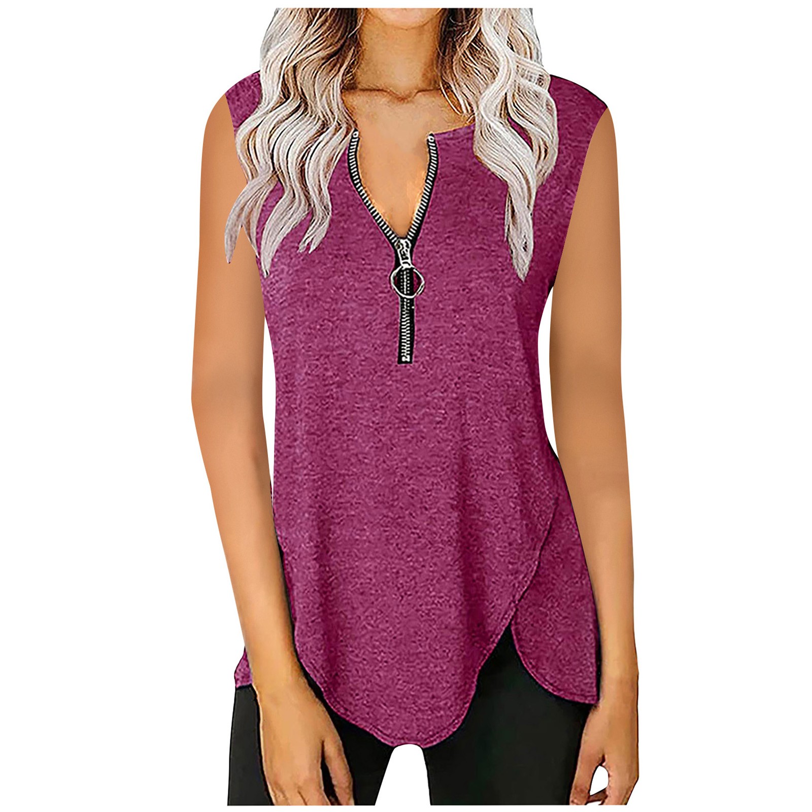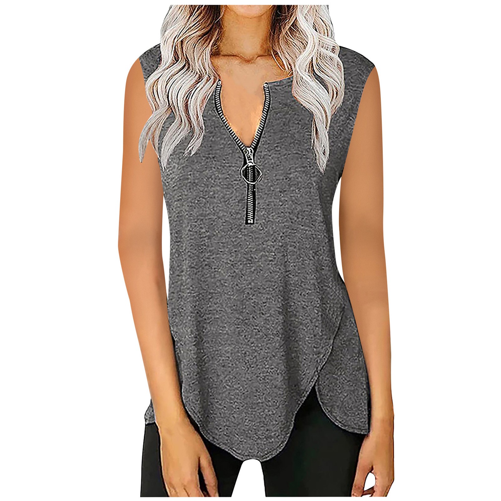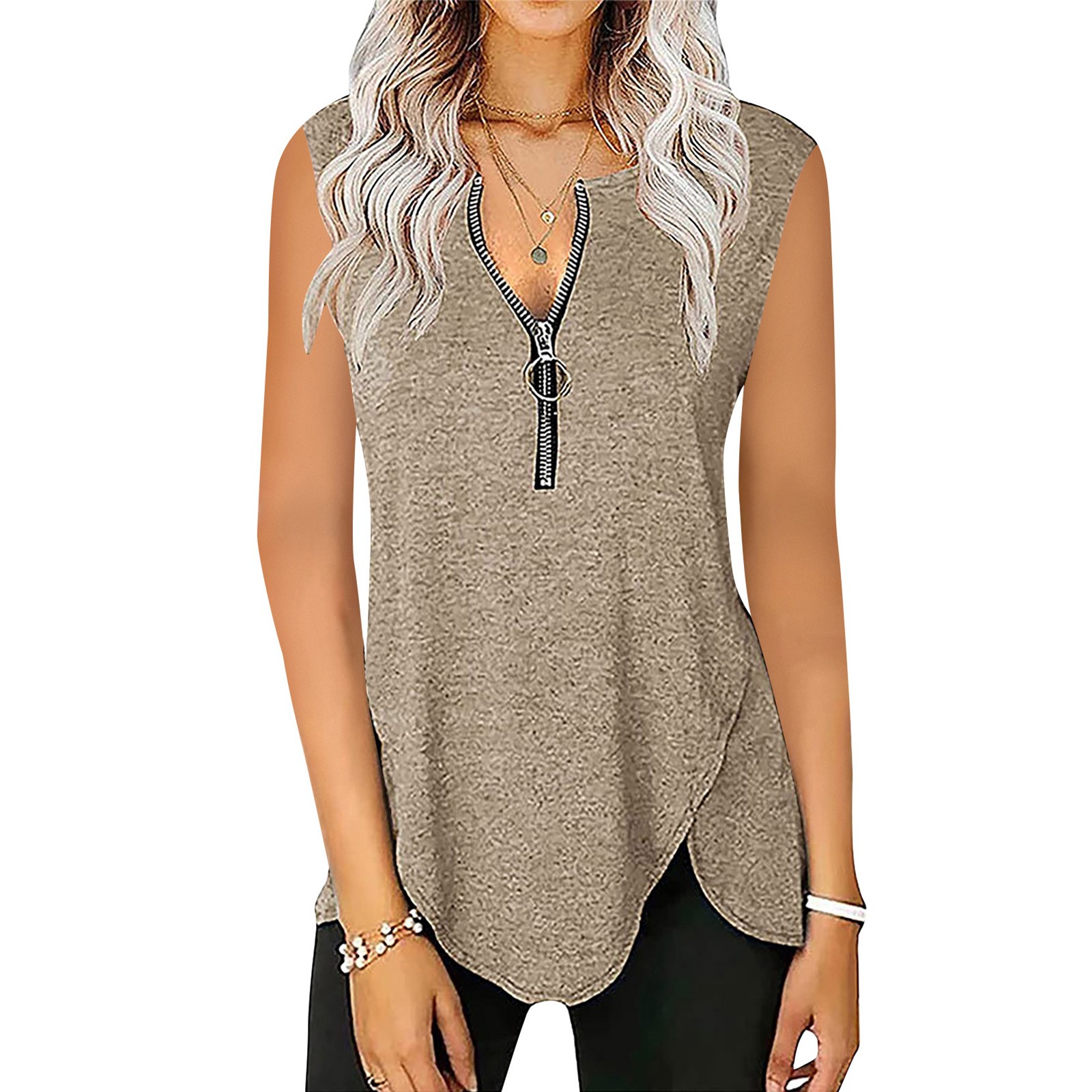 Женская летняя рубашка на молнии, повседневный Однотонный свитер без рукавов, свободная рубашка, Топ