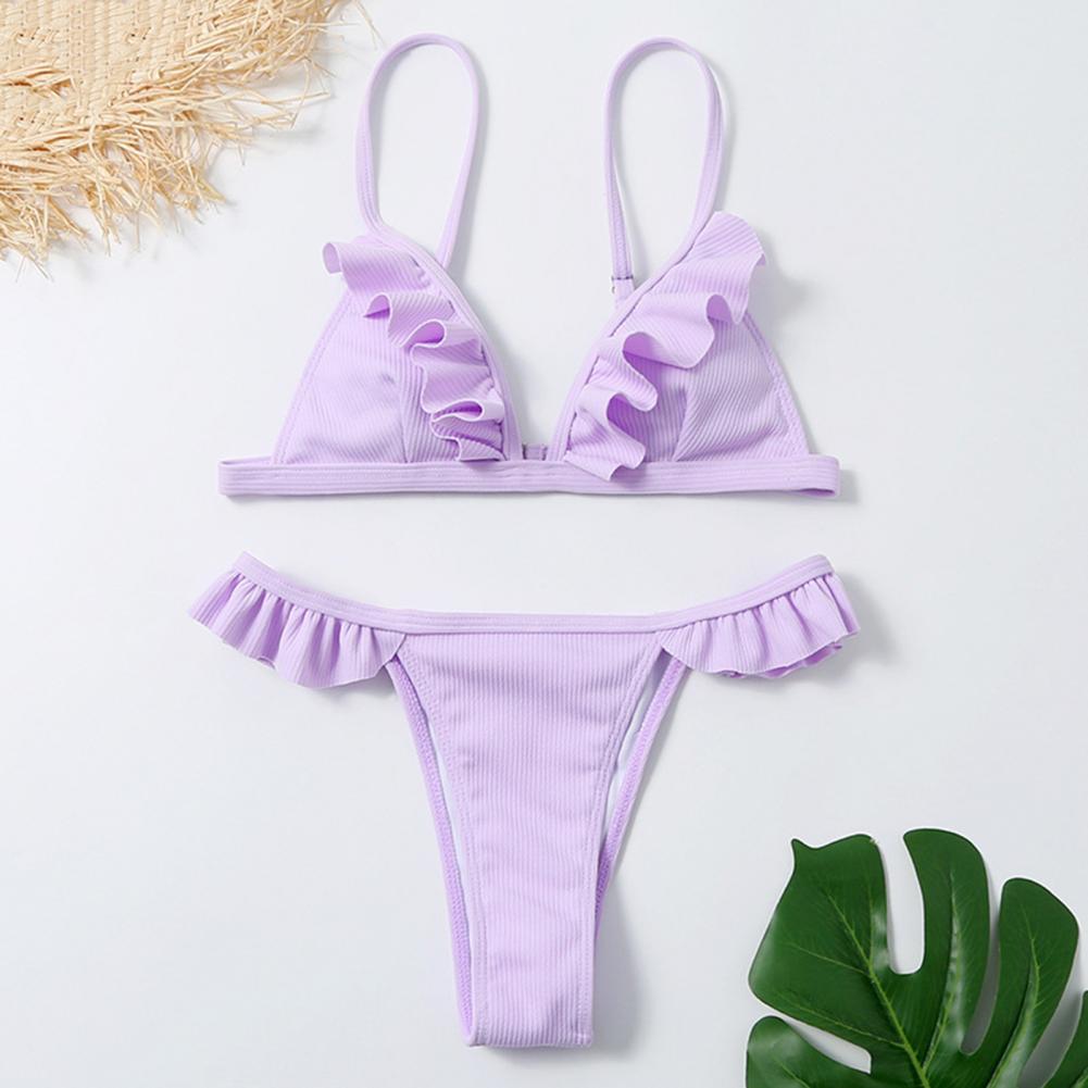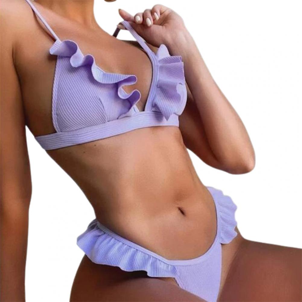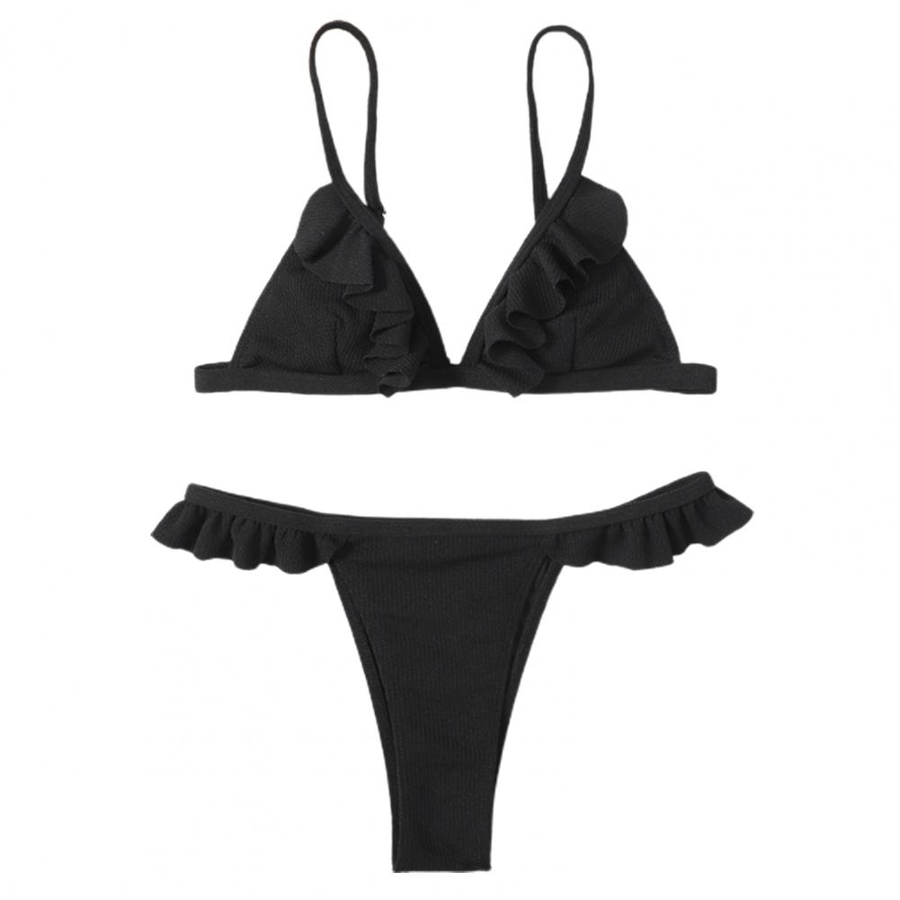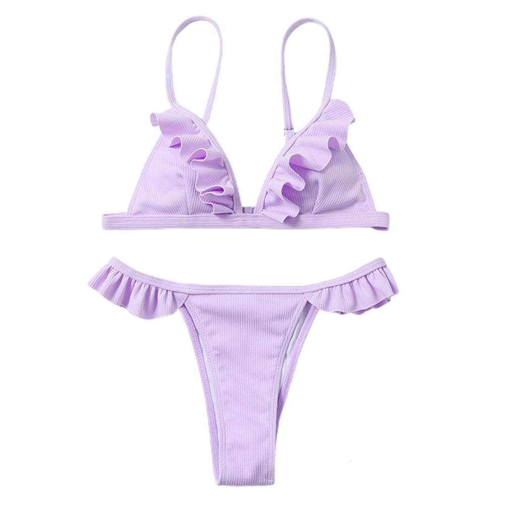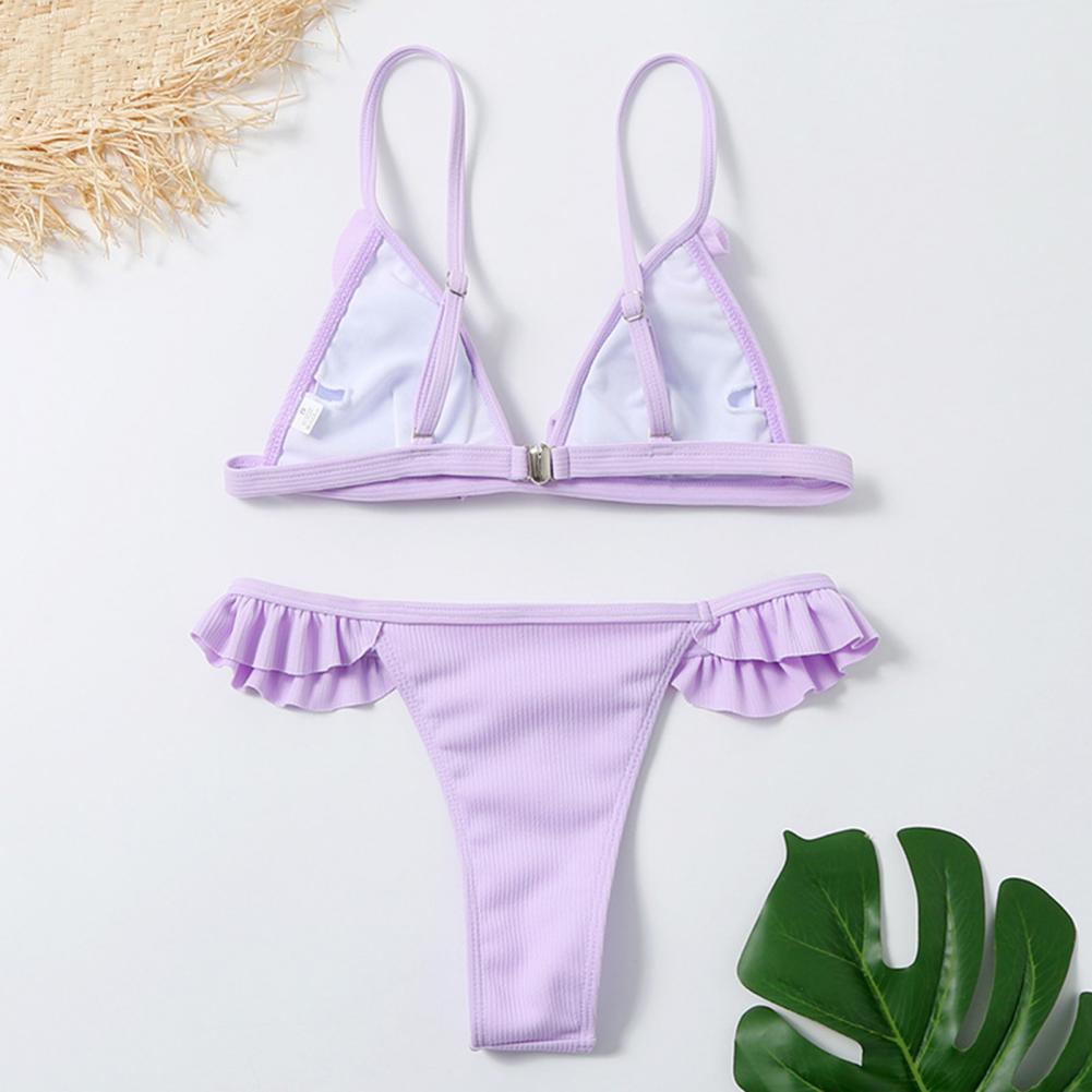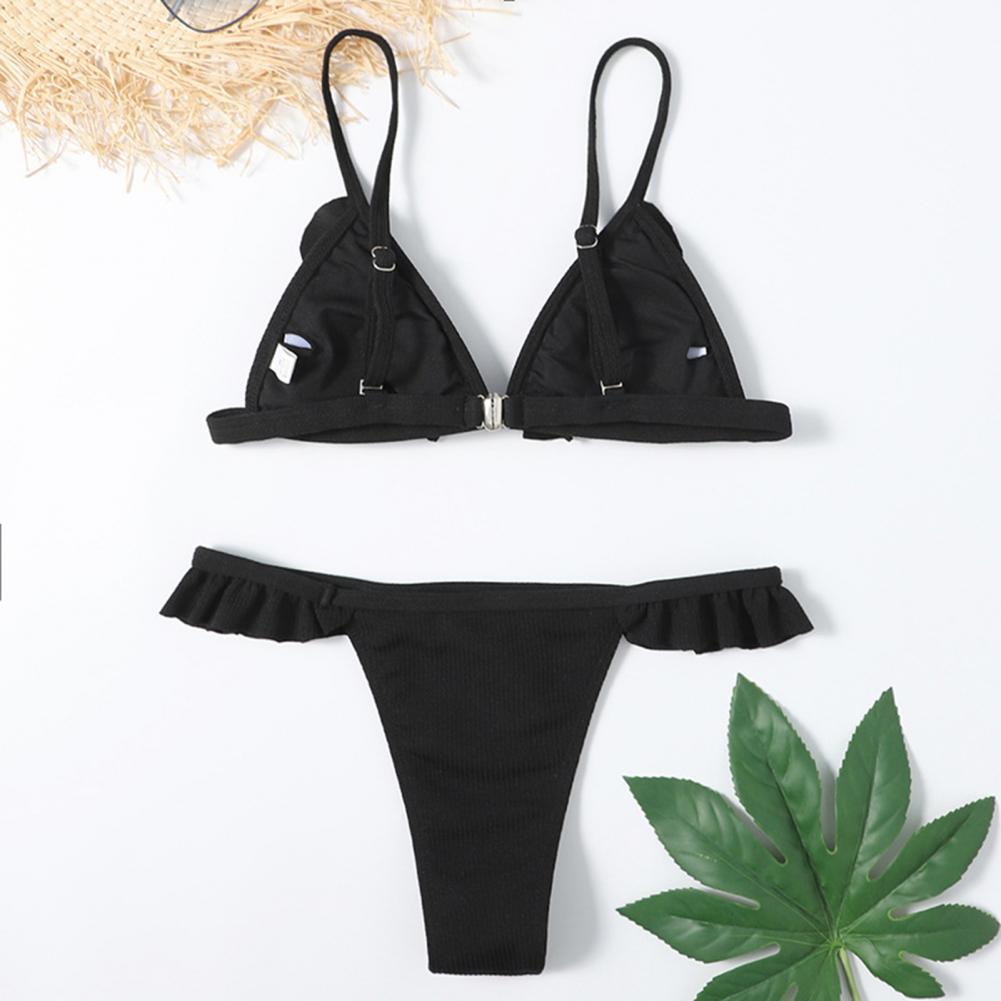 Стринги и открытая спина делают вас более сексуальными. Дизайн с оборками придает ощущение украшения простому однотонному цвету.