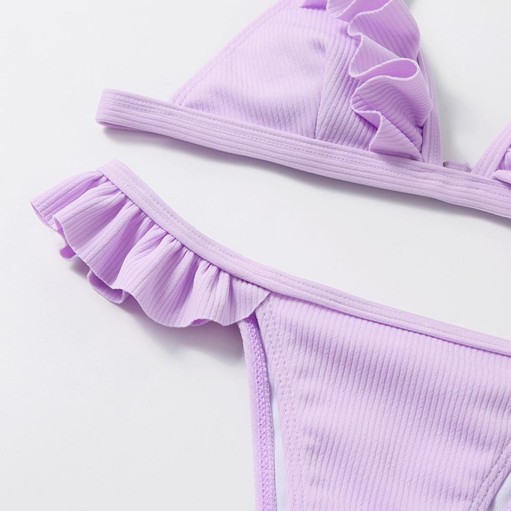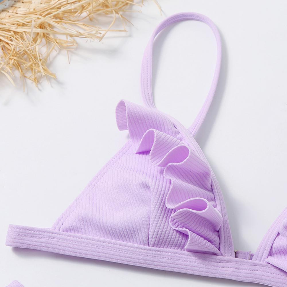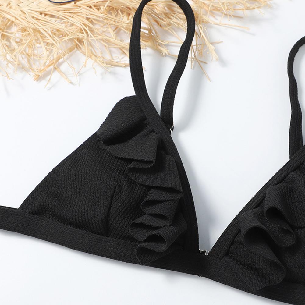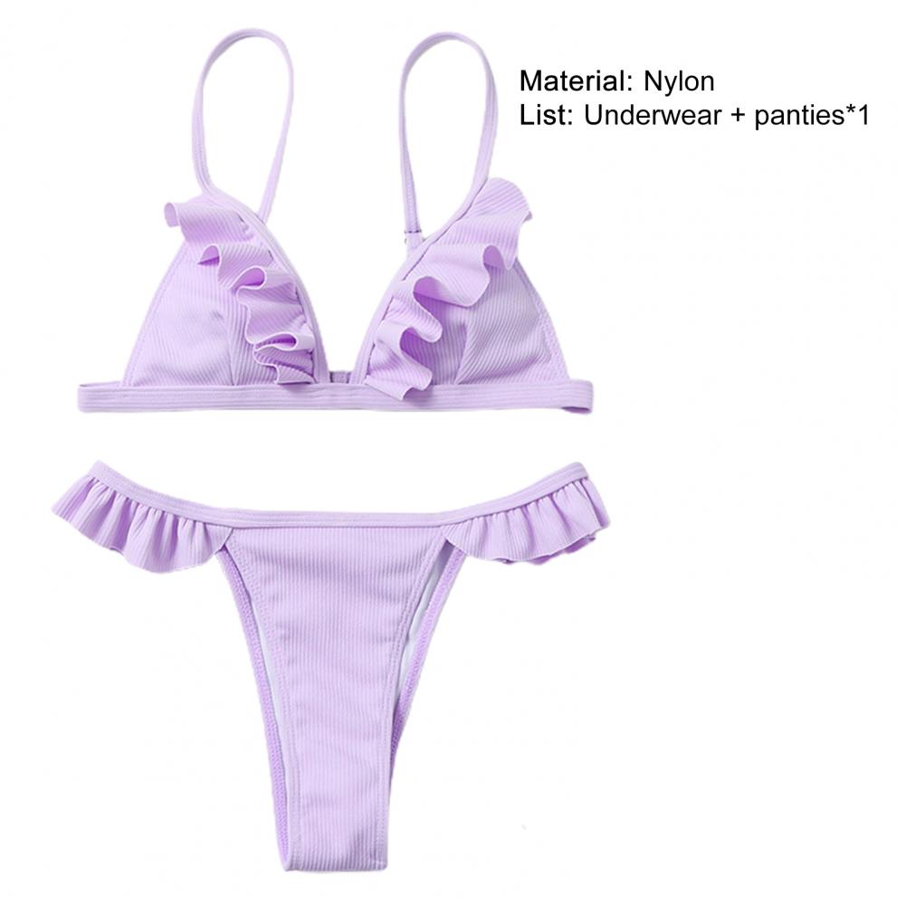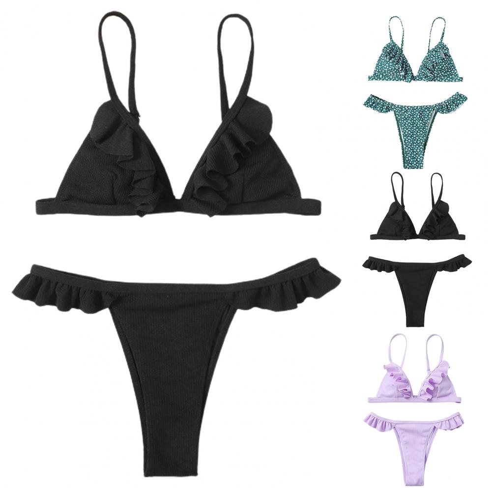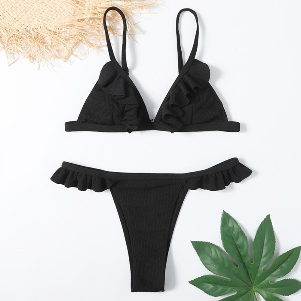 Стринги и открытая спина делают вас более сексуальными. Дизайн с оборками придает ощущение украшения простому однотонному цвету.