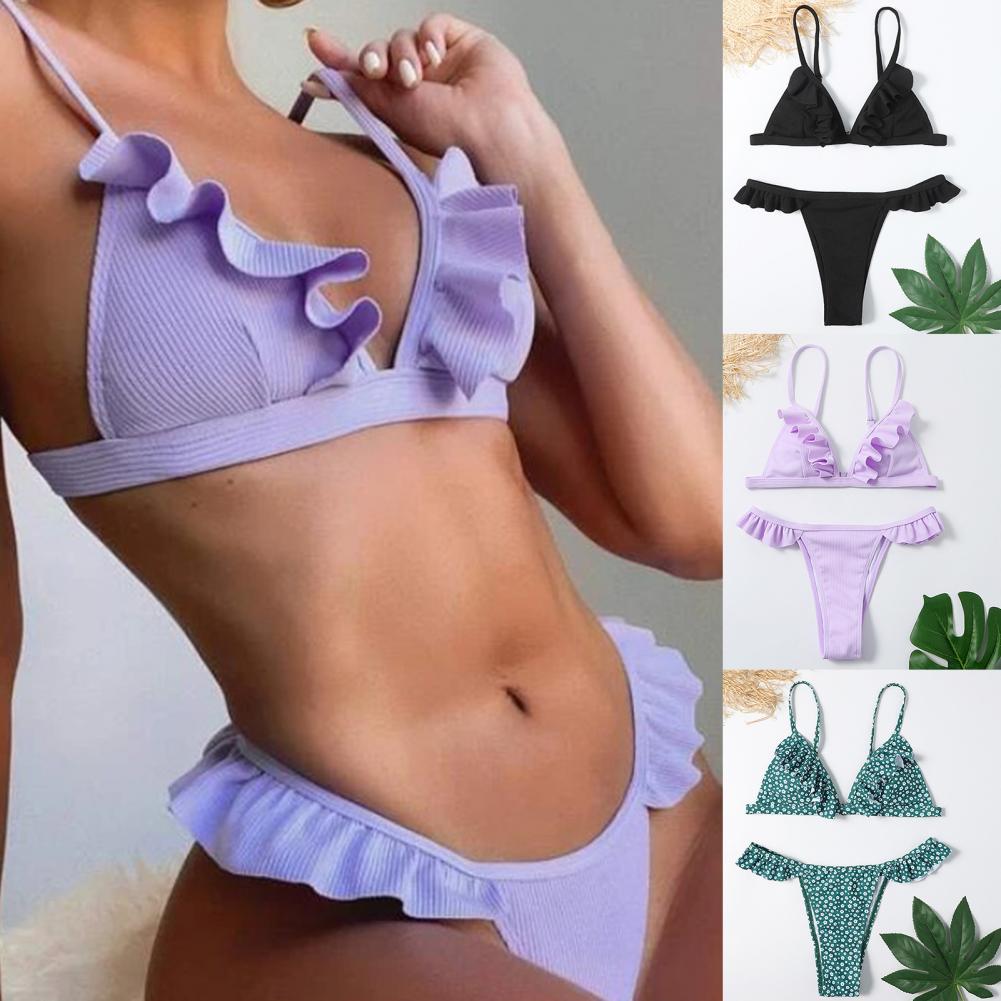 Комплект из 2 предметов; Раздельный купальник без косточек с рюшами; Дизайнерский комплект бикини для Гавайев