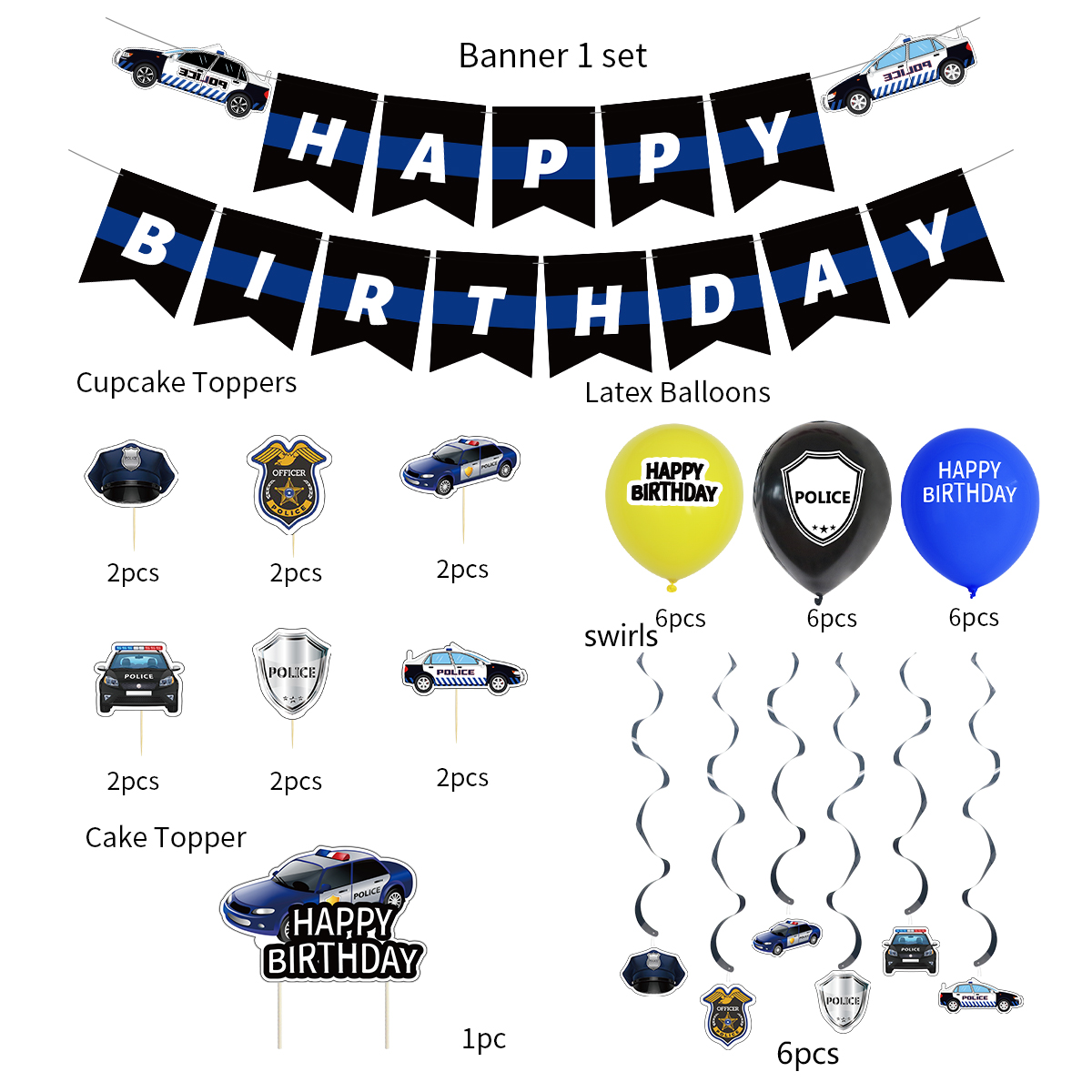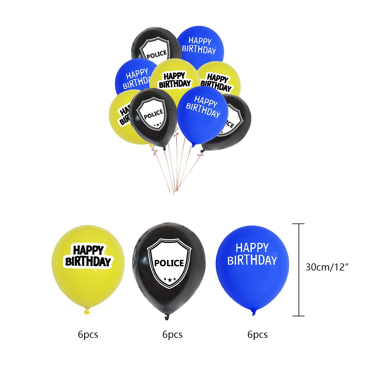 Тема полиции: наш набор воздушных шаров основан на тематике полиции. Мальчики мечтают о полиции в своих сердцах. Полиция является воплощением справедливости и поддерживает нашу нормальную жизнь. Для детей полиция-герои. Такая специальная тематическая вечеринка на день рождения заставит детей чувствовать себя счастливыми и свежими, а также поможет им установить правильные ценности и испытать трудности со стороны полиции.