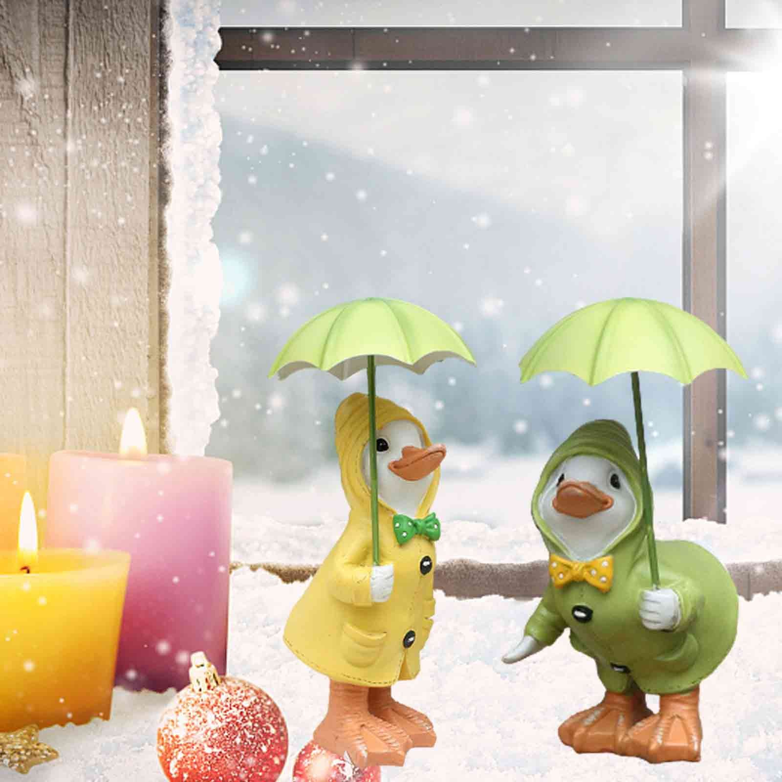 Украшение для сада, Пара уток, высота 12 см, со съемным зонтом