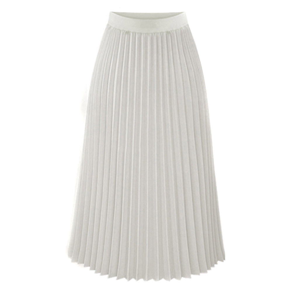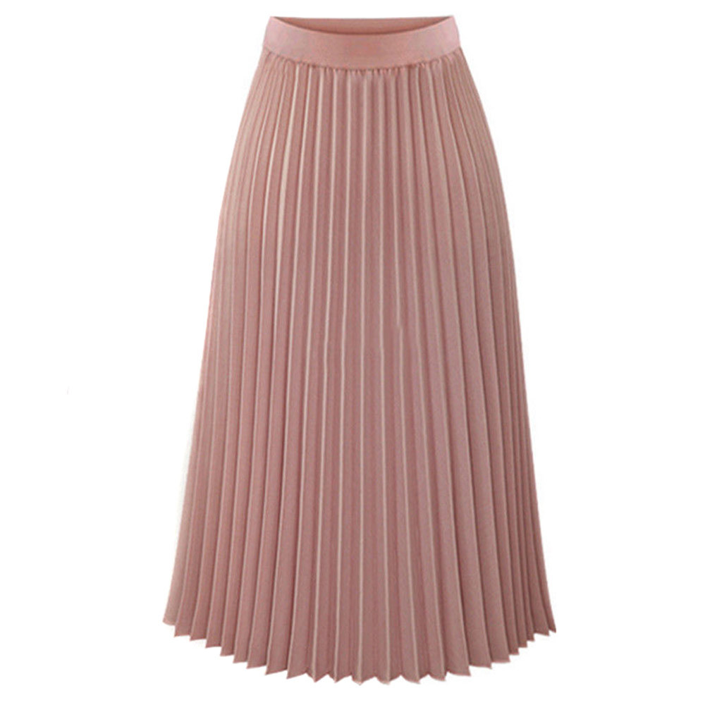 Womens Solid Pleated Elegant Midi Elastic Waist Maxi Skirt