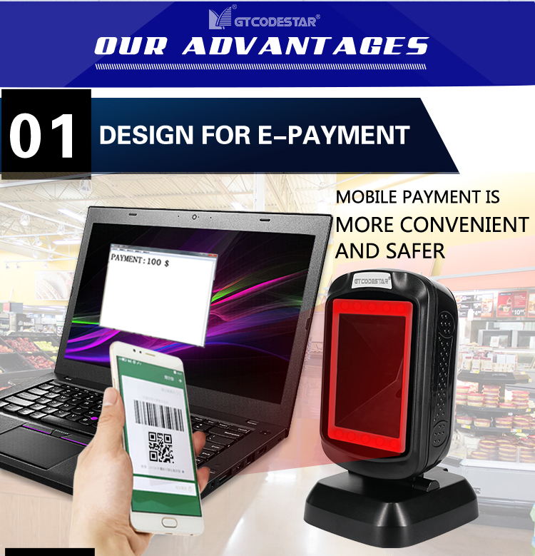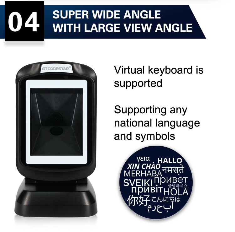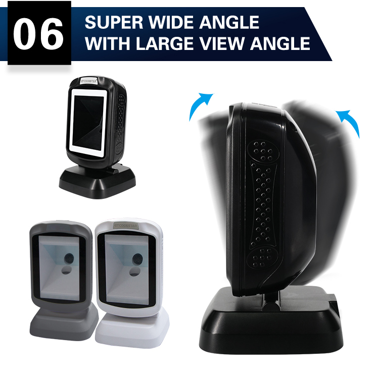 GT-9208 is a new type desktop barcode scanner to replace the traditional omnidirectional laser barcode scanner. It adopts the CMOS technology which can read 1D&2D barcodes on electronic screen and paper, for example, mobile phone screen. It has a more stable performance than omnidirectional laser barcode scanner.