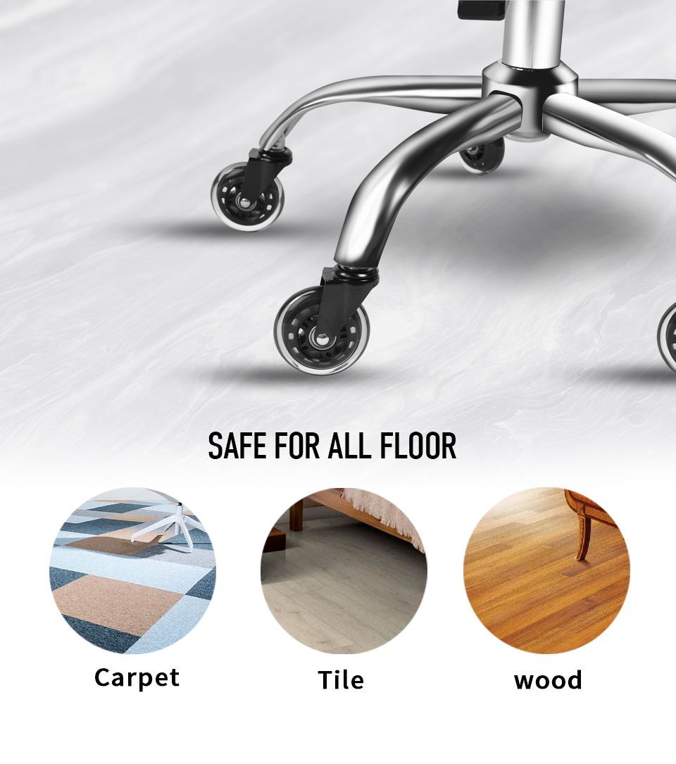 Мягкая рулонная резиновая поверхность колеса гарантированно не оставляет следов на коврах или любом виде натурального и инженерного деревянного пола, плиточного пола, специального пола и гладкого бетона/асфальтовый пол.