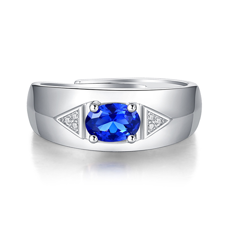 PANSYSEN Vintage Real 925 Sterling Silver Oval Sapphire Gemstone Adjustable Rings for Women Men Luxury Fine Jewelry Wholesale
